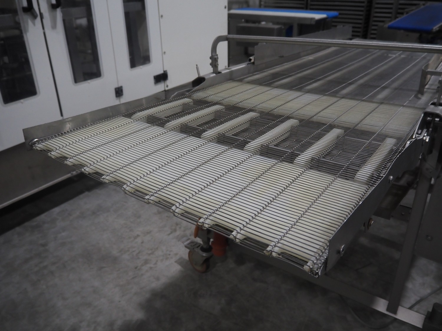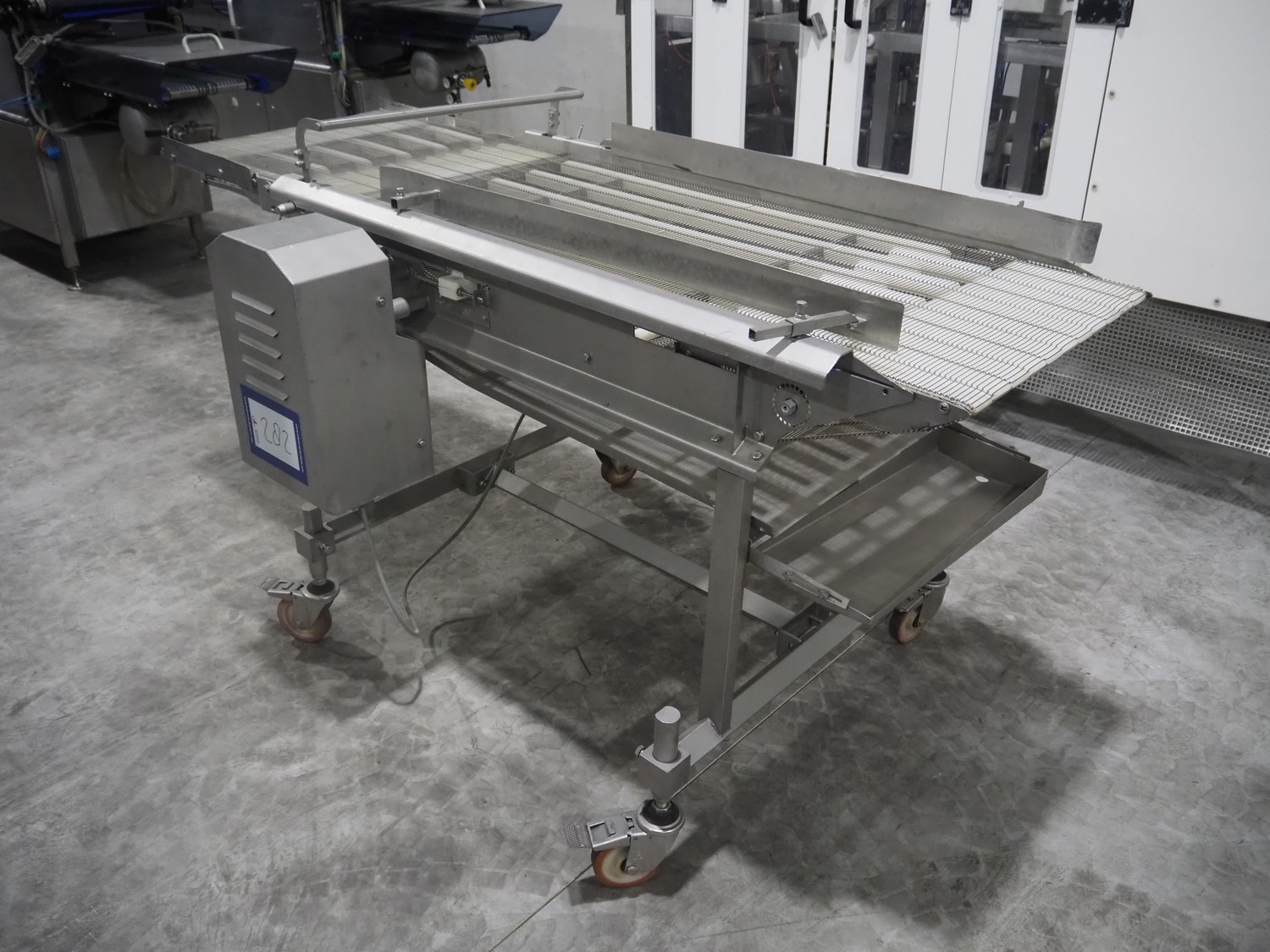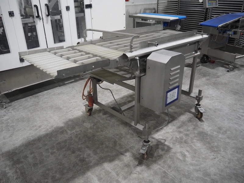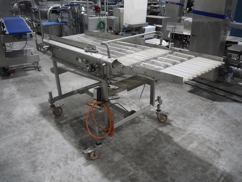 S/s mobile mesh belt, belt width: 630 mm, total dimensions: 2100 mm x 1100 mm x 1150 mm.