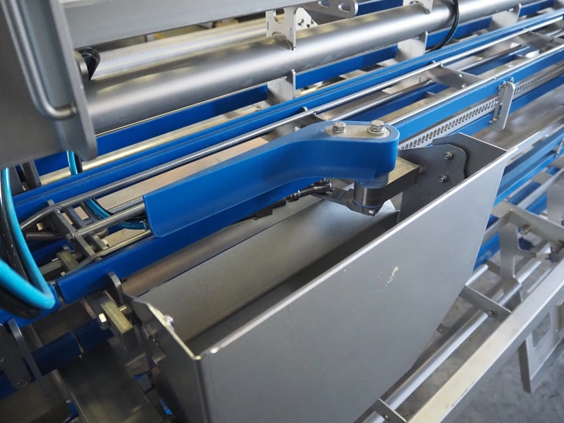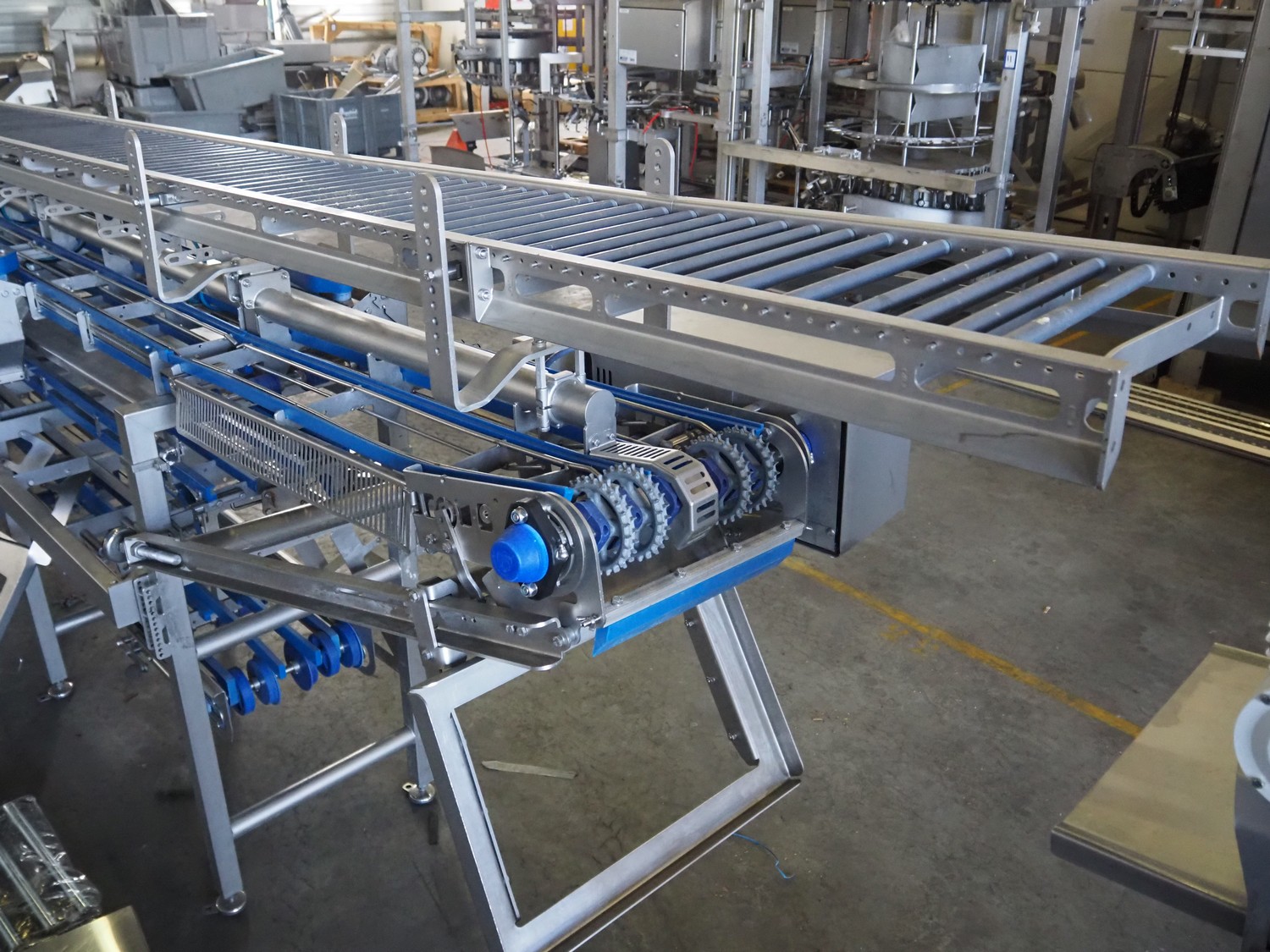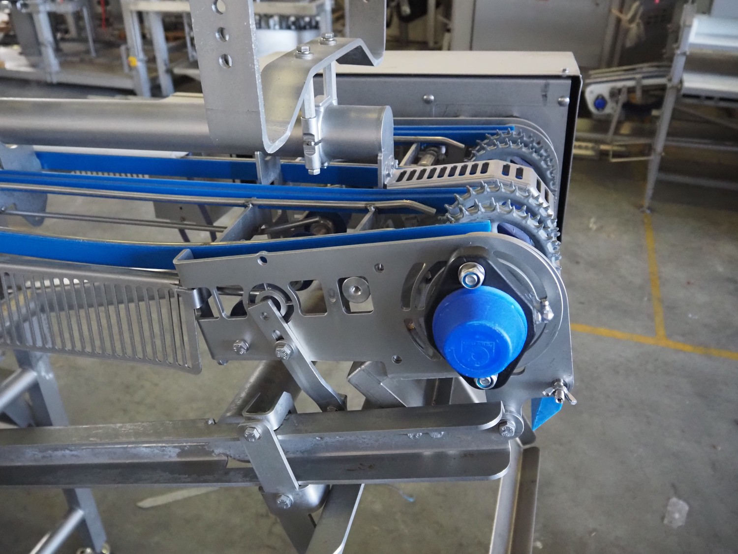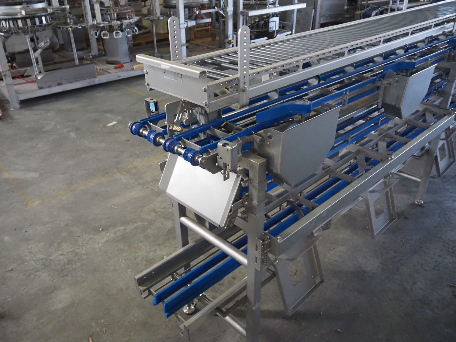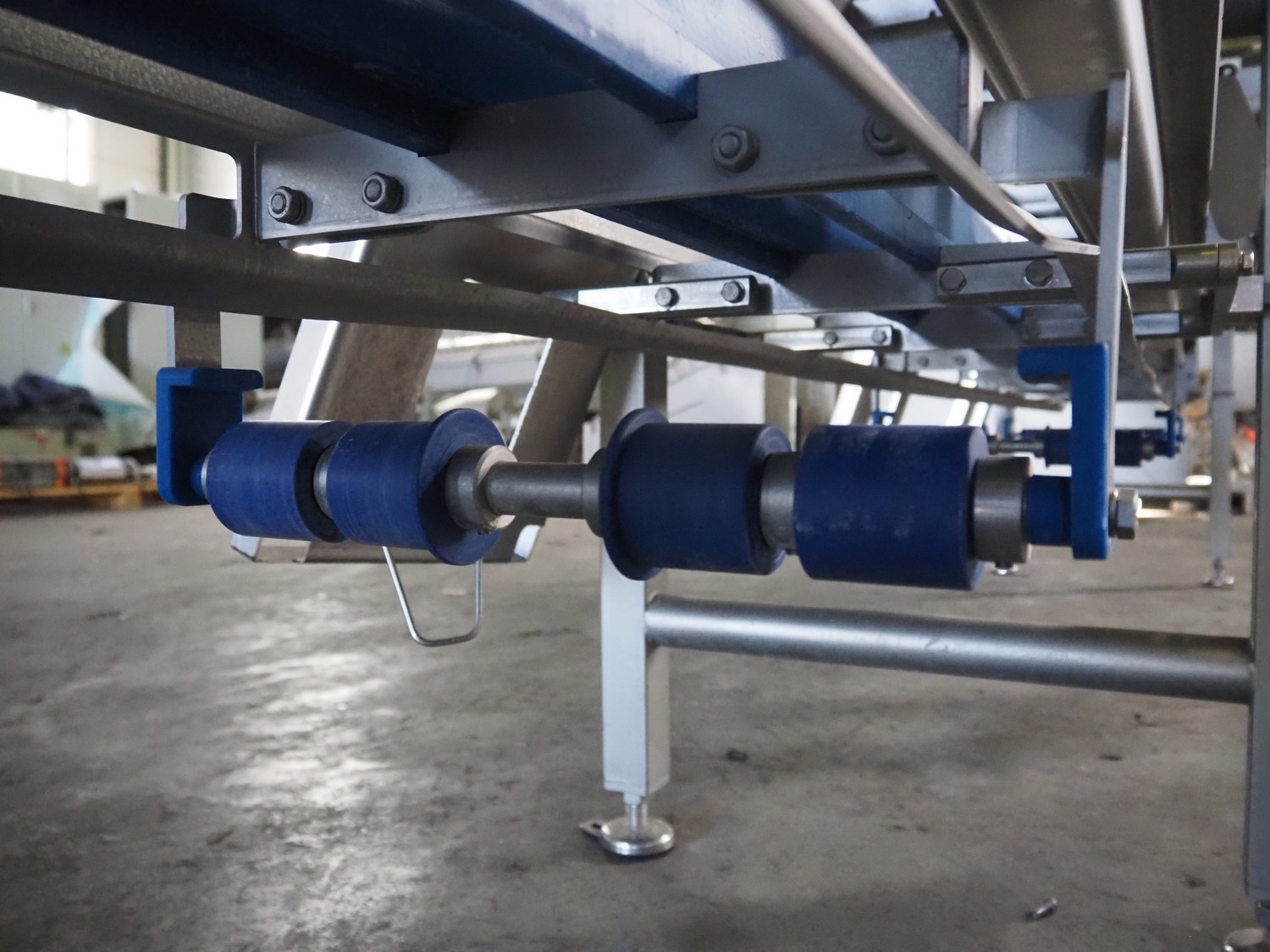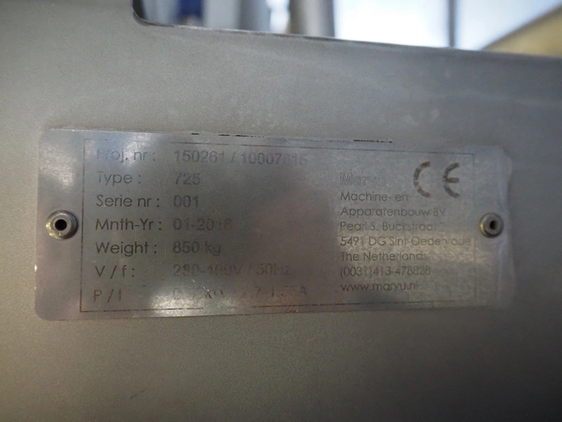 Marvu grader belt, type: 725, serial number: 001, year of construction 2016, 230-400 V, 50 Hz, weight: 850 kg, 14 outfeed stations, plastic rollers, roller width: 300 mm, total possible belt width: 375 mm, total dimensions: 10000 mm x 1100 mm x 2400 mm. Missing belt.
