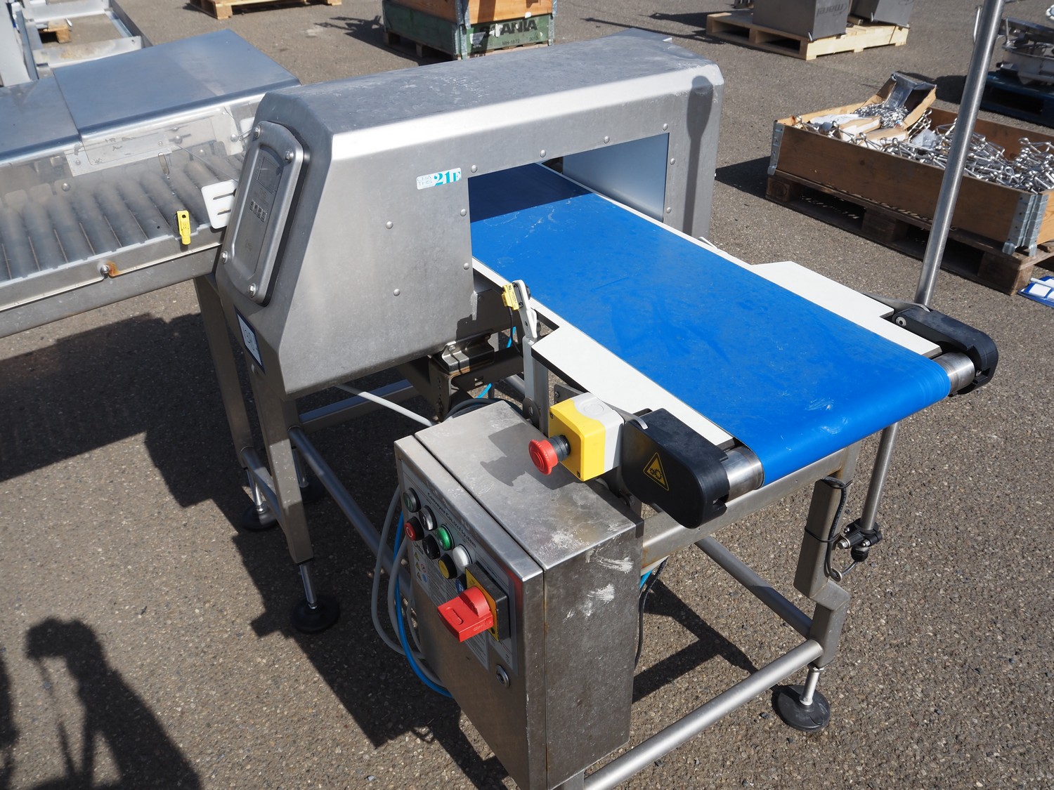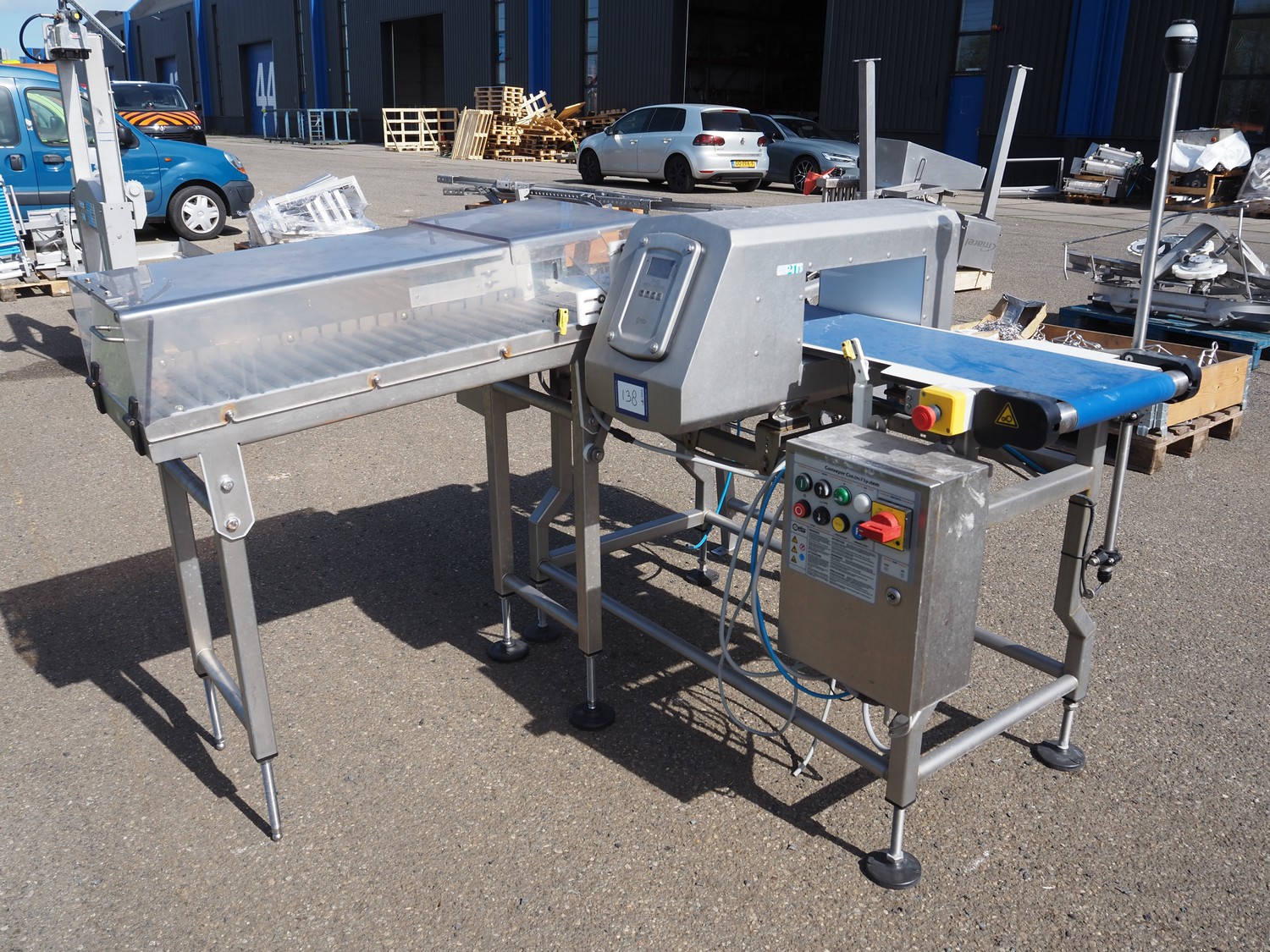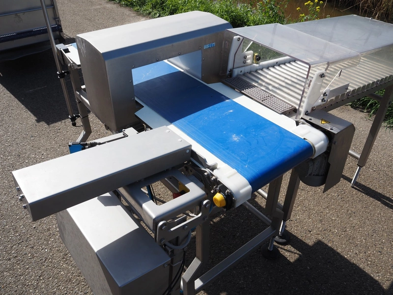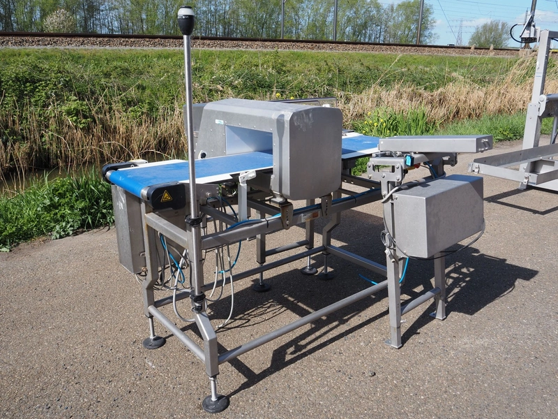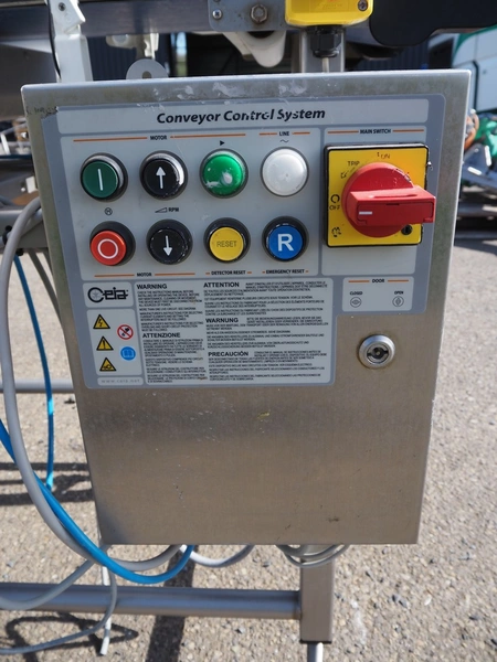 Ceia metal detector with rejector, plastic belt, belt width: 300 mm, clearance: 350 mm x 140 mm, s/s rollers, roller width: 400 mm, total dimensions: 1550 mm x 1950 mm x 1480 mm.