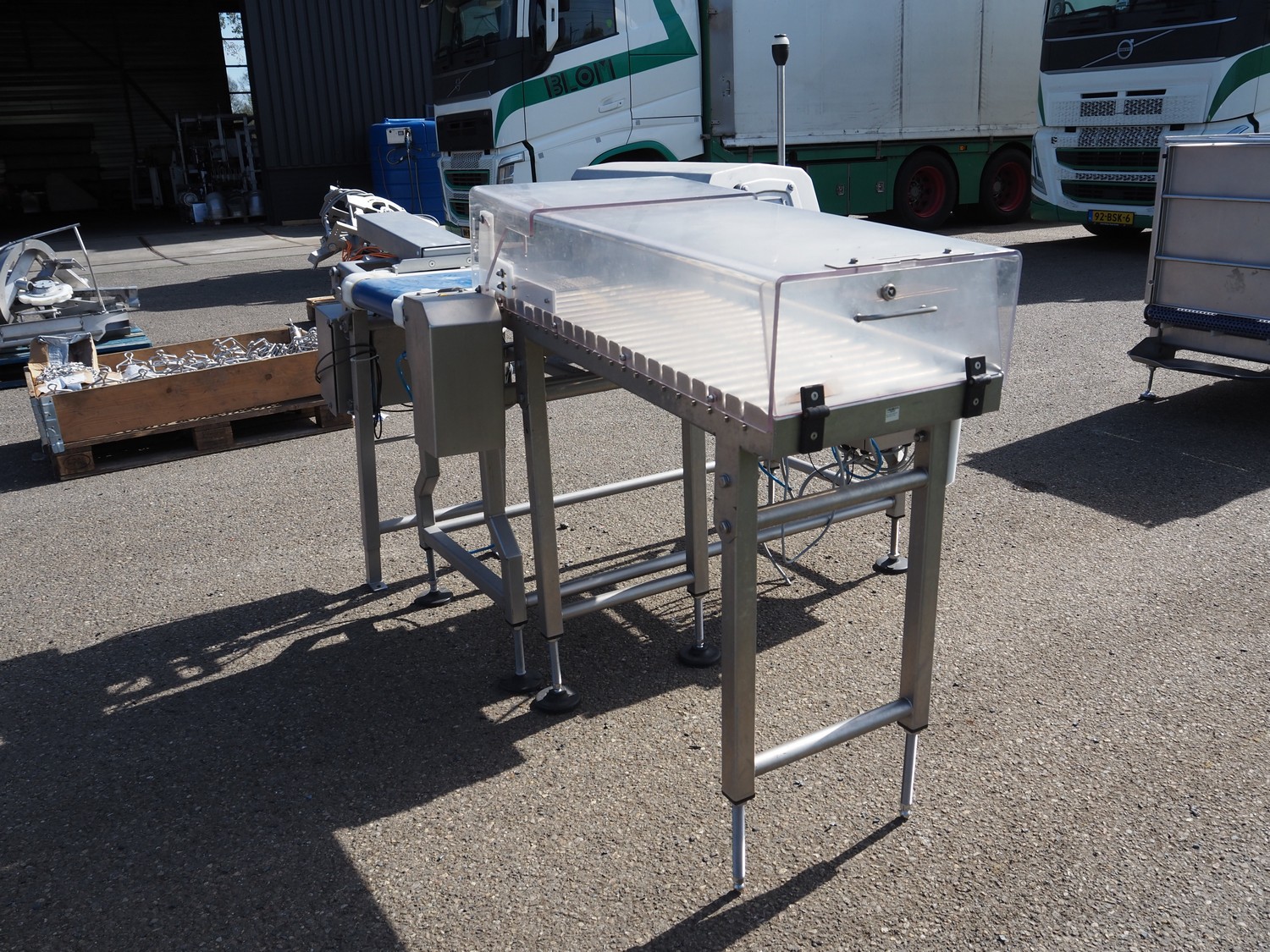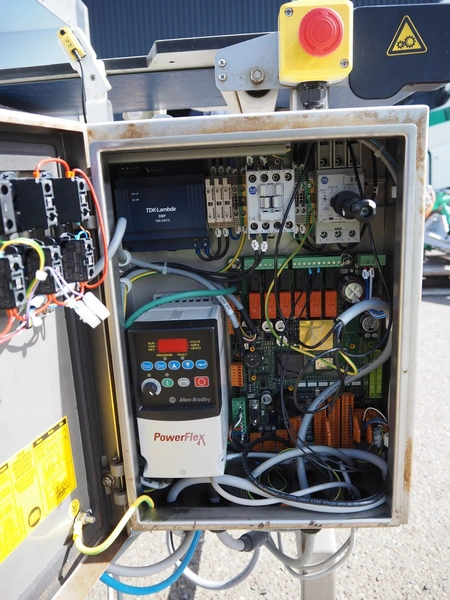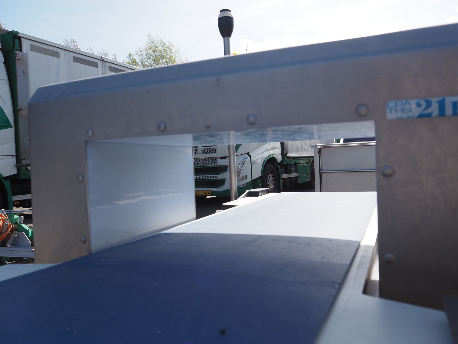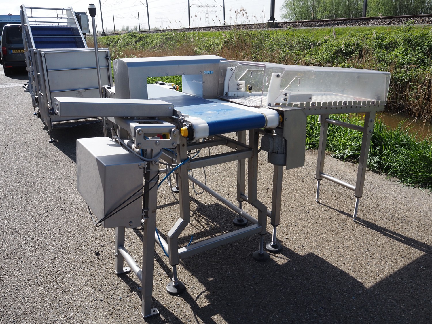 Ceia metal detector with rejector, plastic belt, belt width: 300 mm, clearance: 350 mm x 140 mm, s/s rollers, roller width: 400 mm, total dimensions: 1550 mm x 1950 mm x 1480 mm.