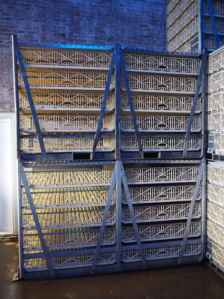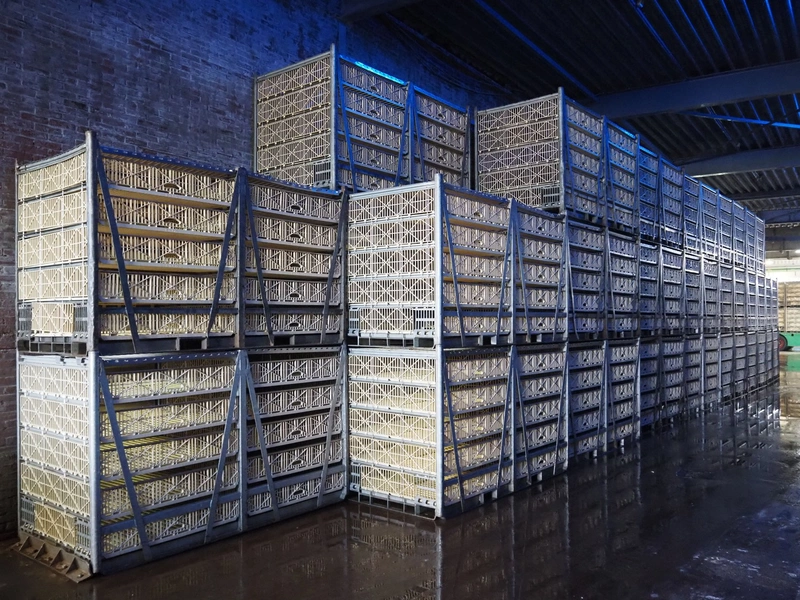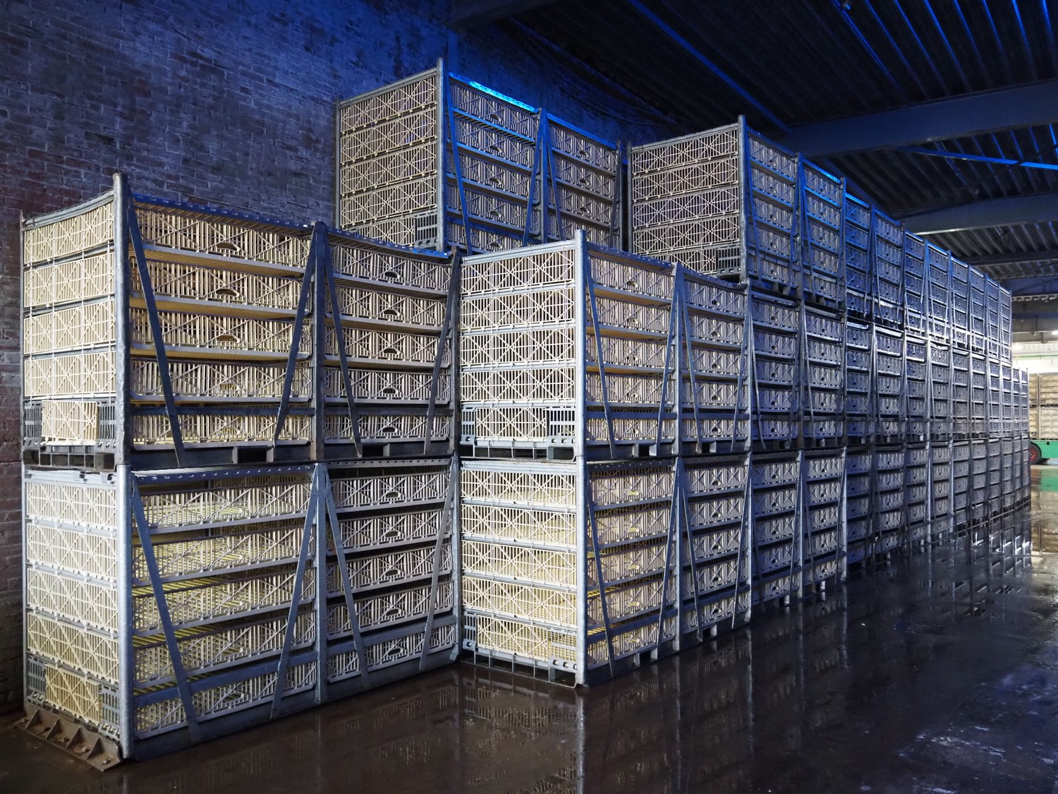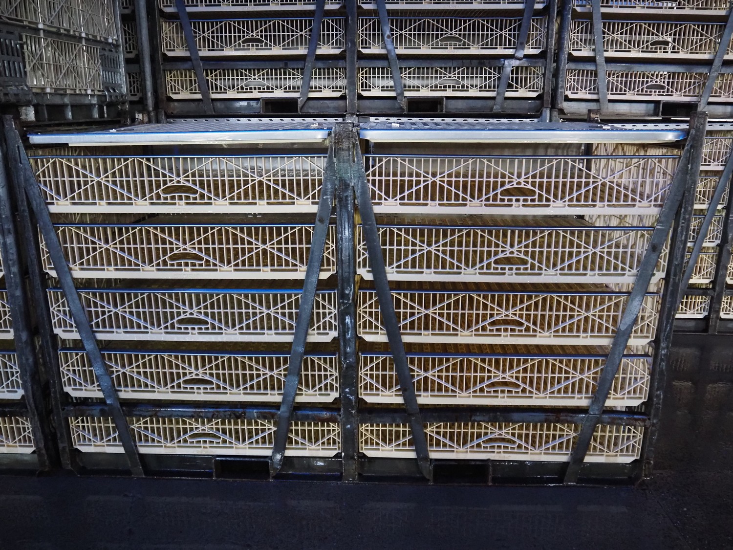 200 Stork live bird boxes, (2x) 5 floors, dimensions floors: (10x) 1100 mm x 1140 mm, total dimensions: (200x) 2450 mm x 1200 mm x 1460 mm. Vrijgave levering volgens afspraak.