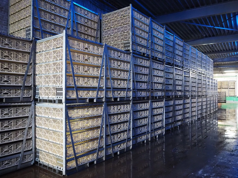 100 Stork live bird boxes, (2x) 5 floors, dimensions floors: (10x) 1100 mm x 1140 mm, total dimensions: (100x) 2450 mm x 1200 mm x 1460 mm. The boxes are expected to be available from August. Collection by appointment.