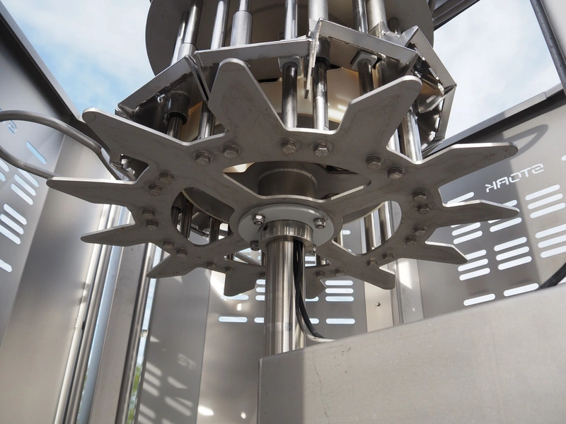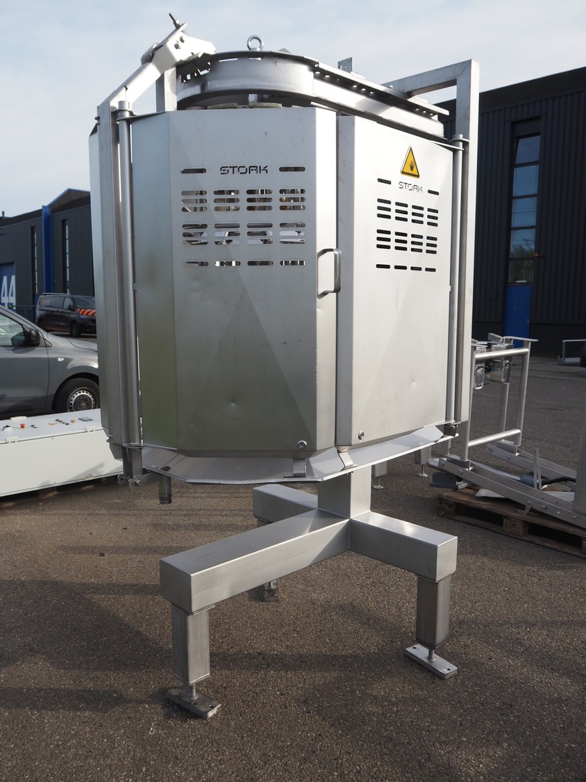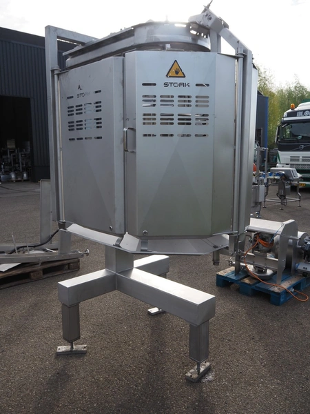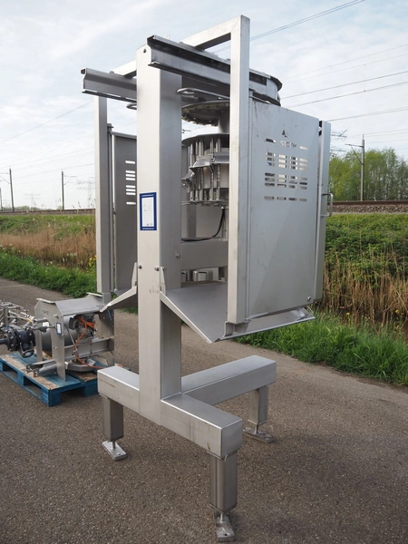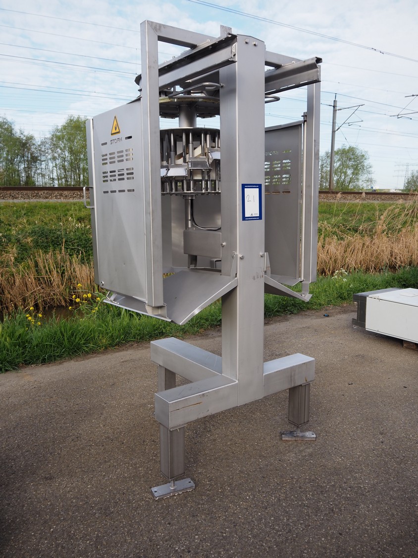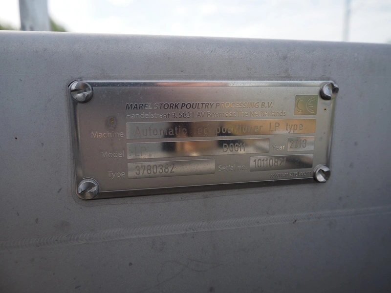 Marel Stork Poultry Processing B.V. automatic leg positioner LP type, model: LP B0611, type: 3780382, serial number: 10110821, year of construction: 2013, 12 stations, dimensions: 1400 mm x 1200 mm x 2500 mm.
