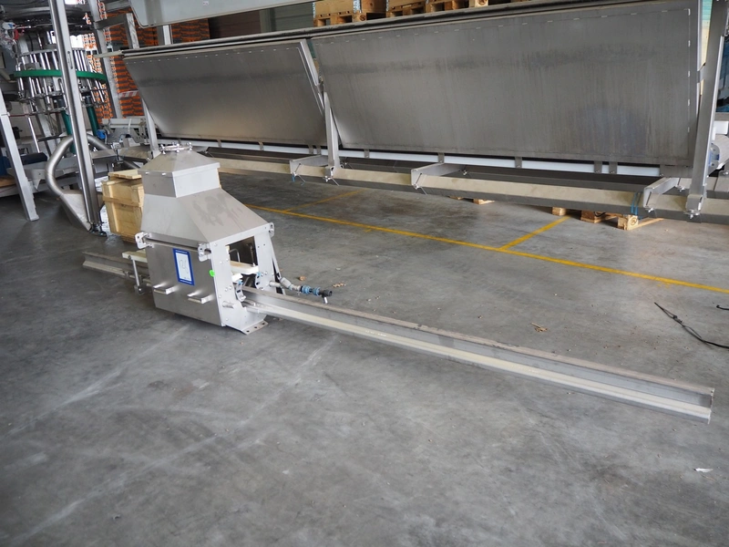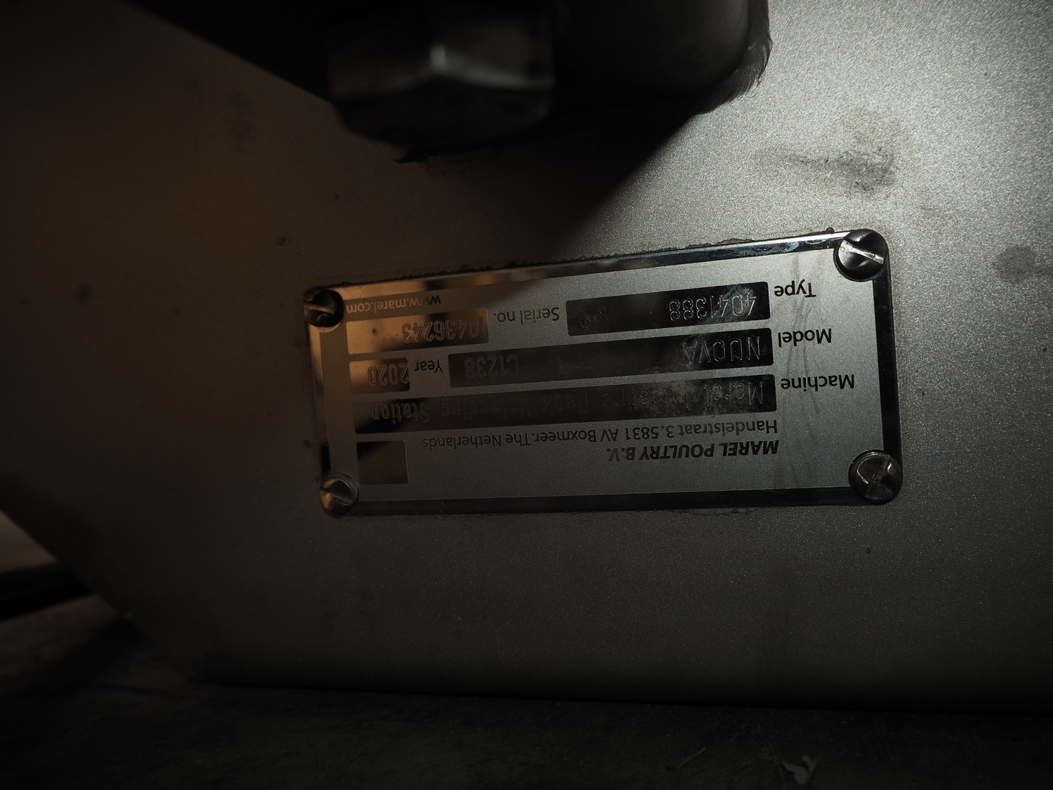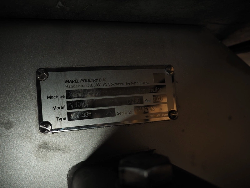 Marel Poultry B.V. intestine pack unloading station, model: NUOVA, type: 4041388, serial number: 10436243, year of construction: 2020, dimensions: 4100 mm x 600 mm x 1100 mm.