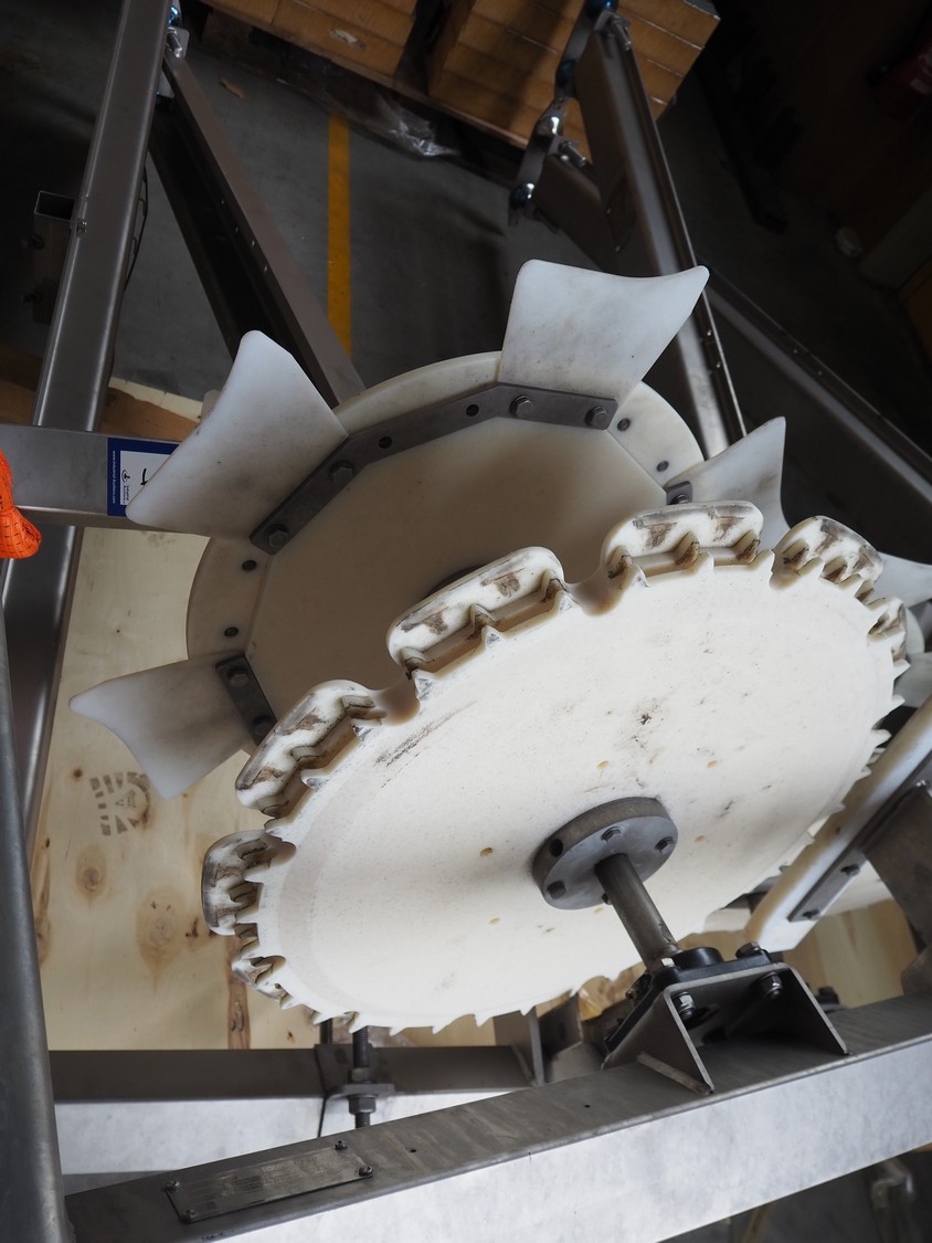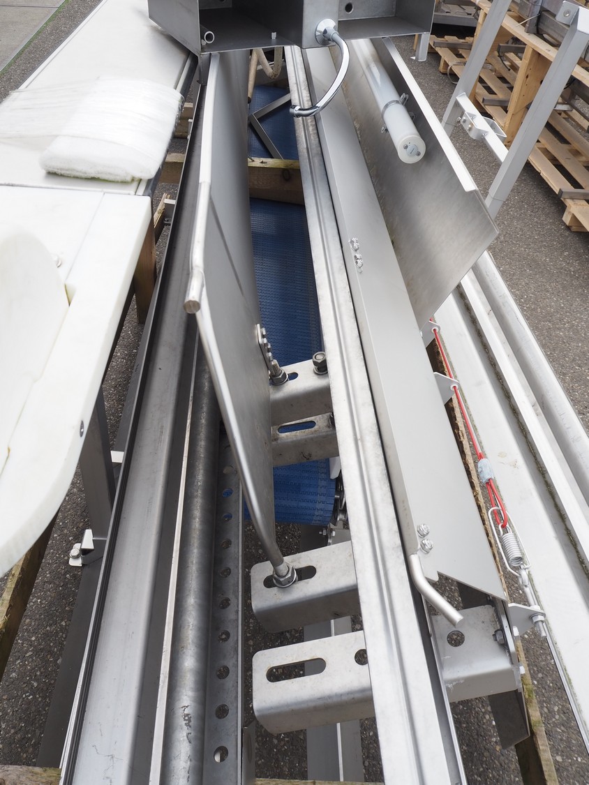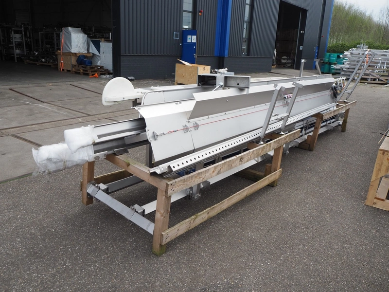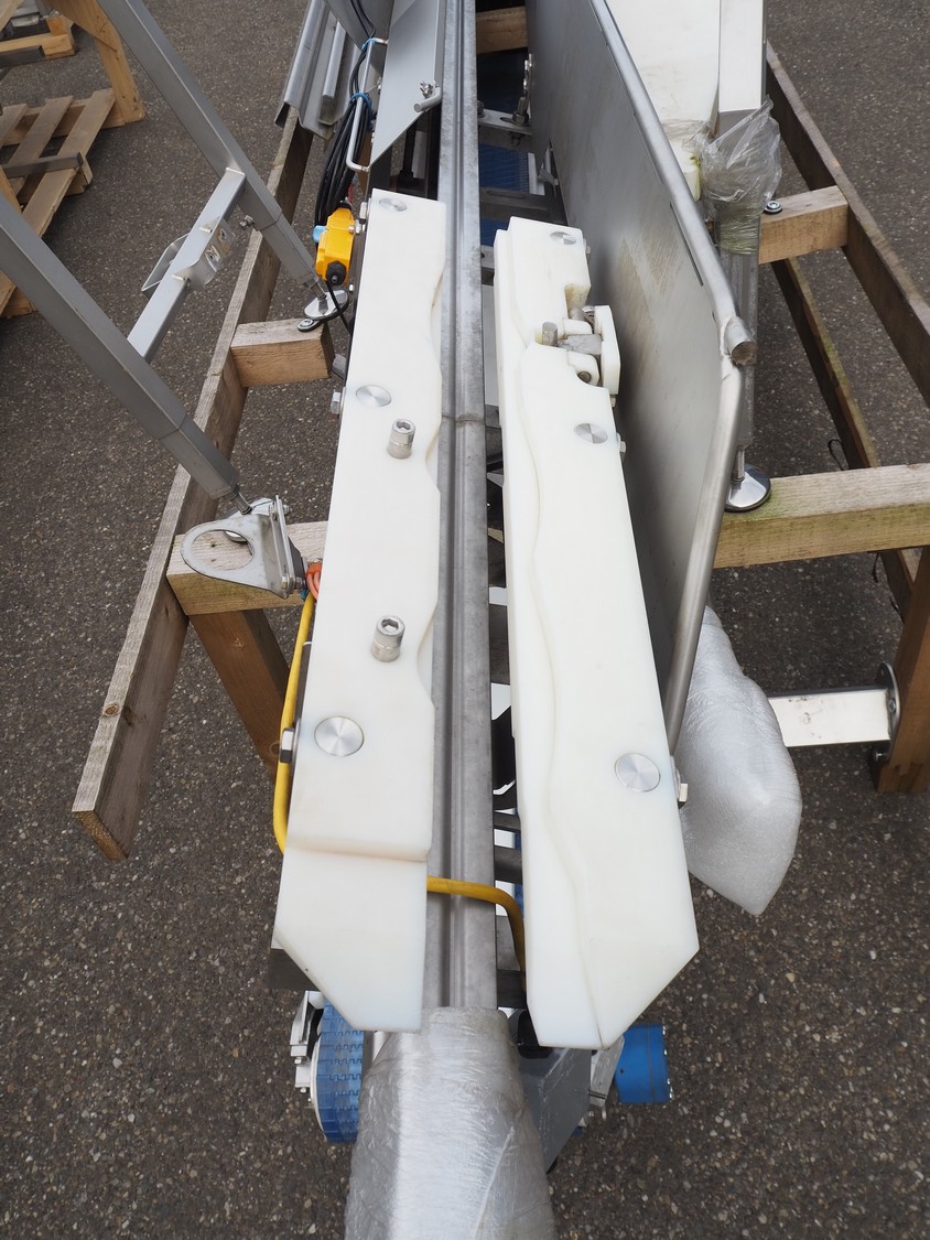 Marel Poultry B.V. product presenter, type: 4041373, serial number: 10436241, year of construction: 2020, plastic belt, belt width: 280 mm, total dimensions: 7200 mm x 1750 mm x 2500 mm. Dismantled.