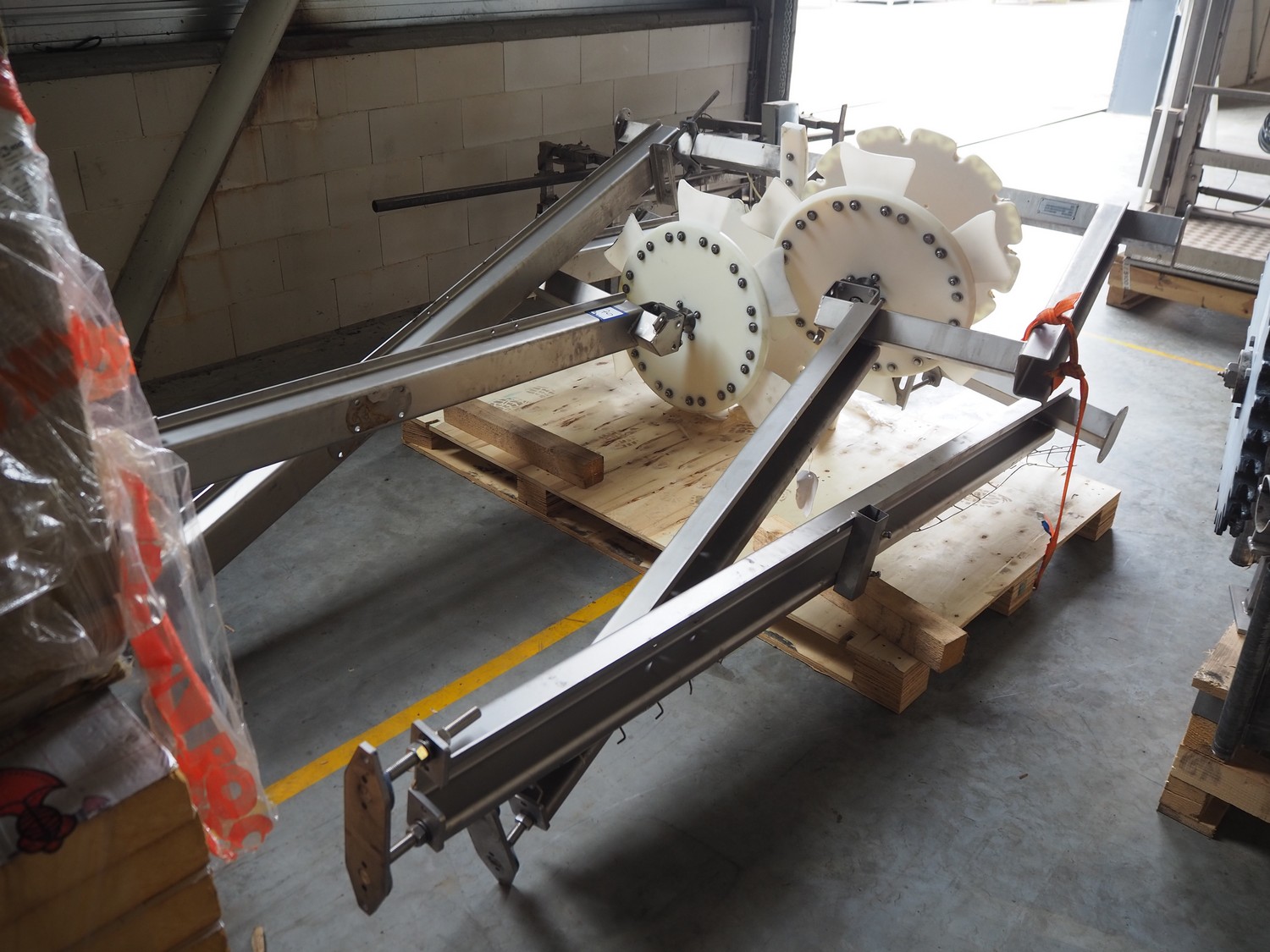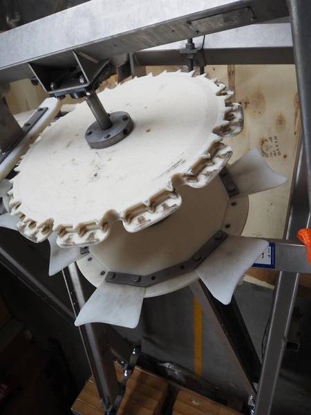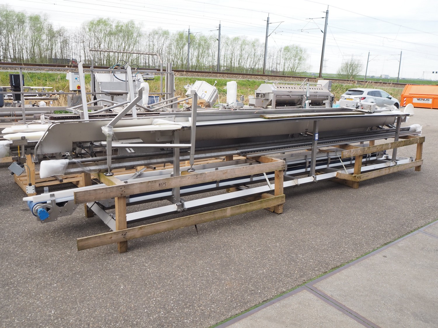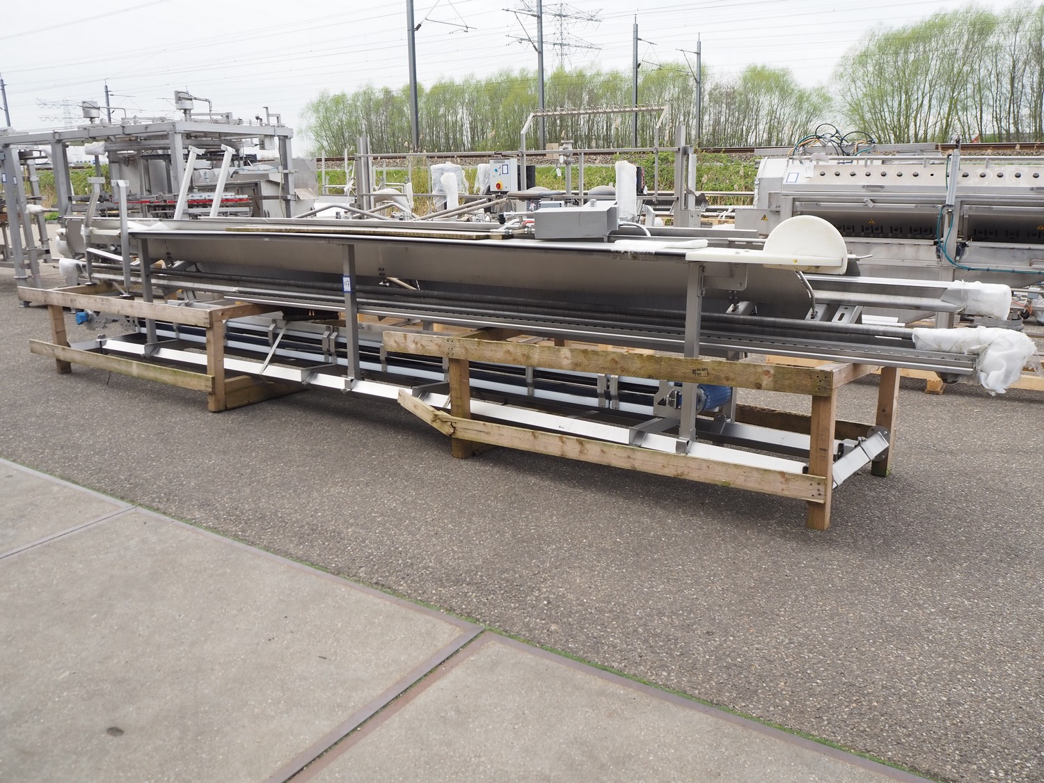 Marel Poultry B.V. product presenter, type: 4041373, serial number: 10436241, year of construction: 2020, plastic belt, belt width: 280 mm, total dimensions: 7200 mm x 1750 mm x 2500 mm. Dismantled.