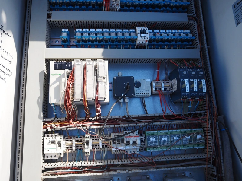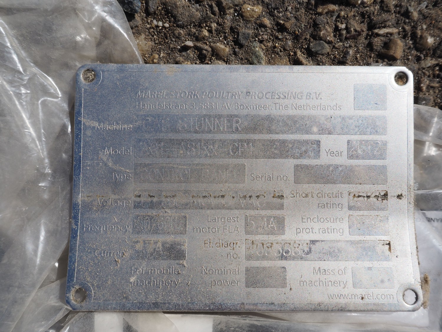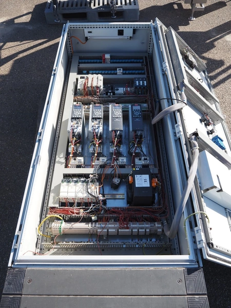 Marel Stork Poultry Processing B.V. steel switch cabinet for gas stunner with Cas 700 / 1000 mm control panel with new PLC 2024 , dimensions: 450 mm x 800 mm x 2250 mm.