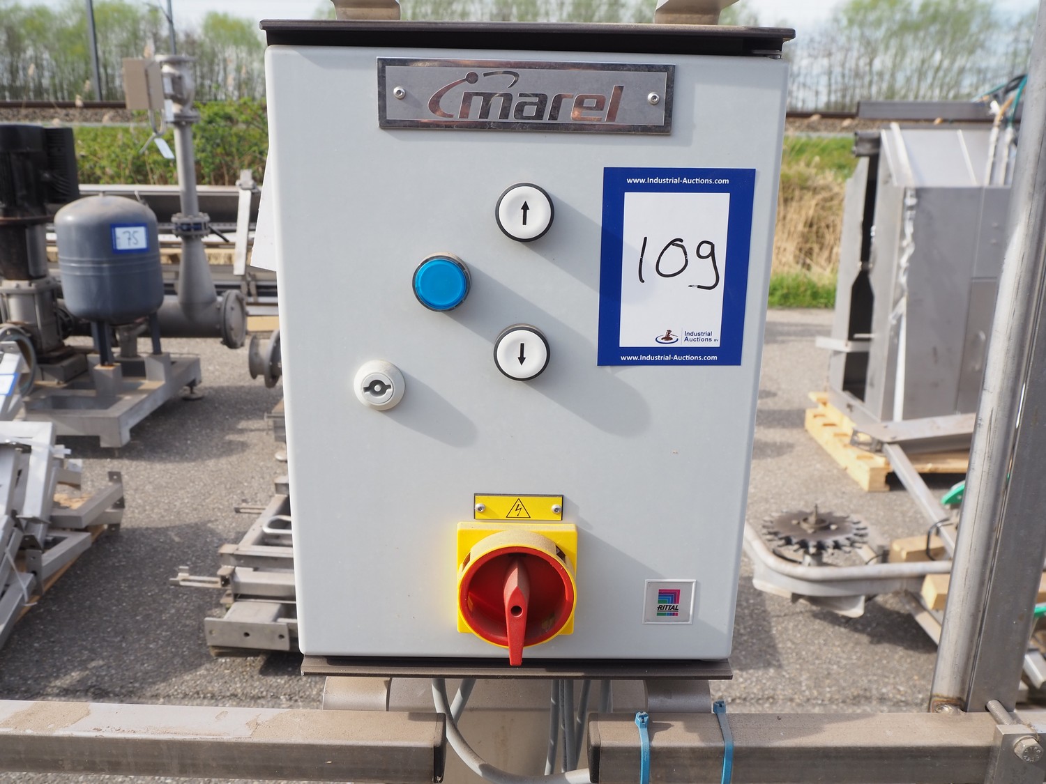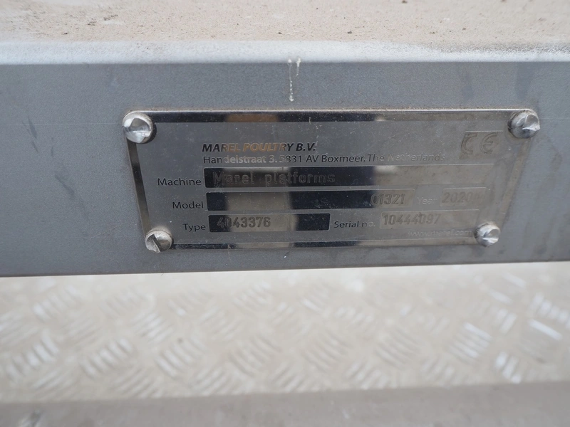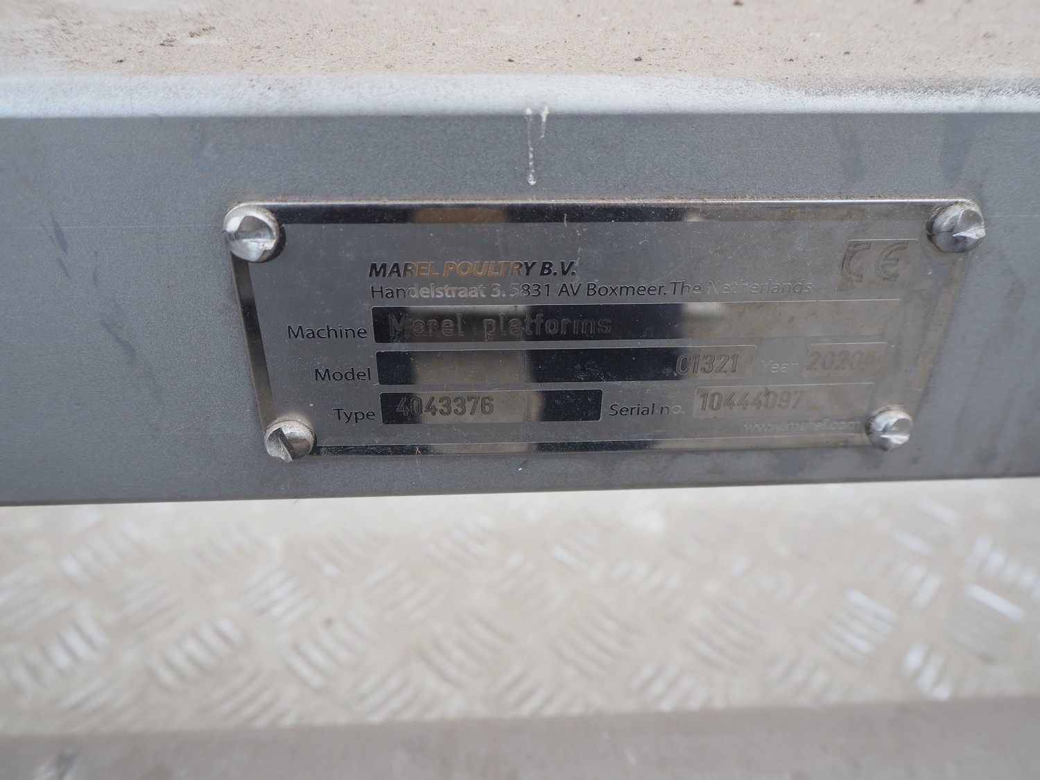 Marel Poultry B.V. height adjustable working platform, type: 4043376, serial number: 10444097, year of construction: 2020, dimensions: 4200 mm x 1000 mm x 1800 mm.