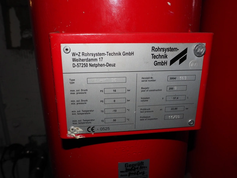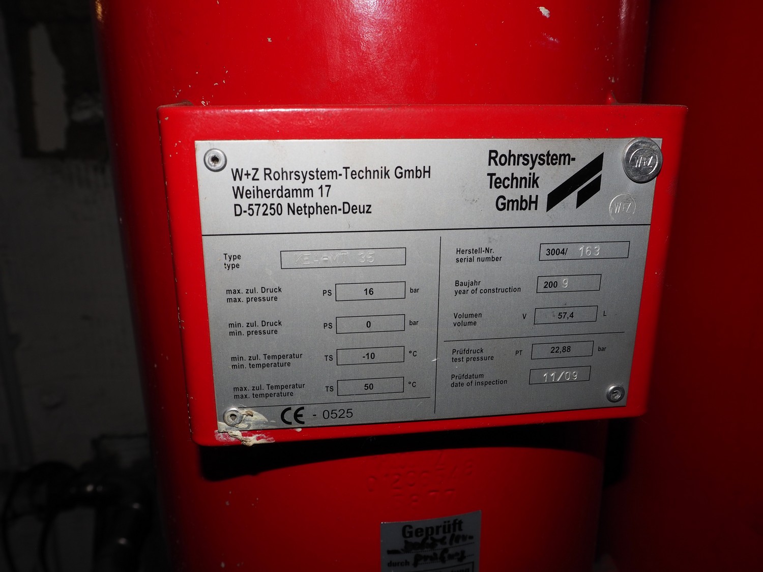W+Z Rohrsystem-Technik GmbH air dryer, type: KEA-MT 35, serial number: 164, year of construction: 2009, temperature range: -10/+50° C, volume: (2x) 57.4 liter, dimensions: 1100 mm x 500 mm x 1700 mm.