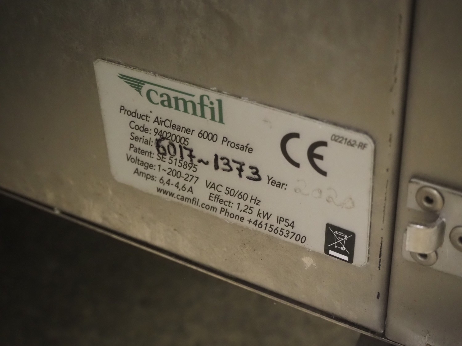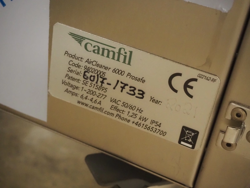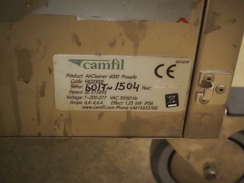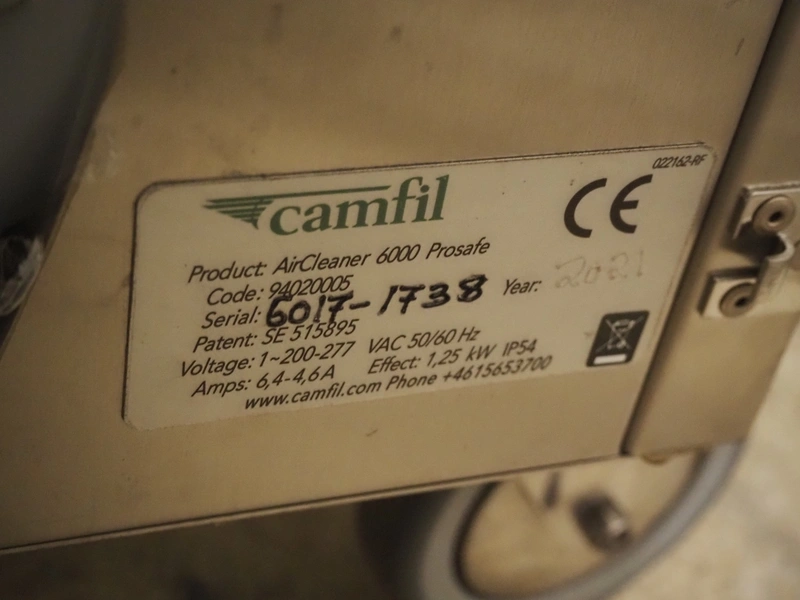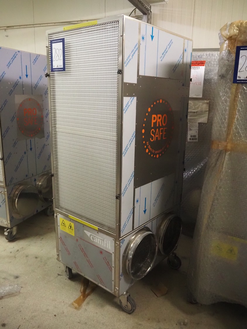 4 Camfil air filters, type: AirCleaner 6000 Prosafe, 200-277 V, 1 Ph, 50/60 Hz, 6.4-4.6 A, 1.25 kW, dimensions: 880 mm x 830 mm x 1700 mm. Never used.