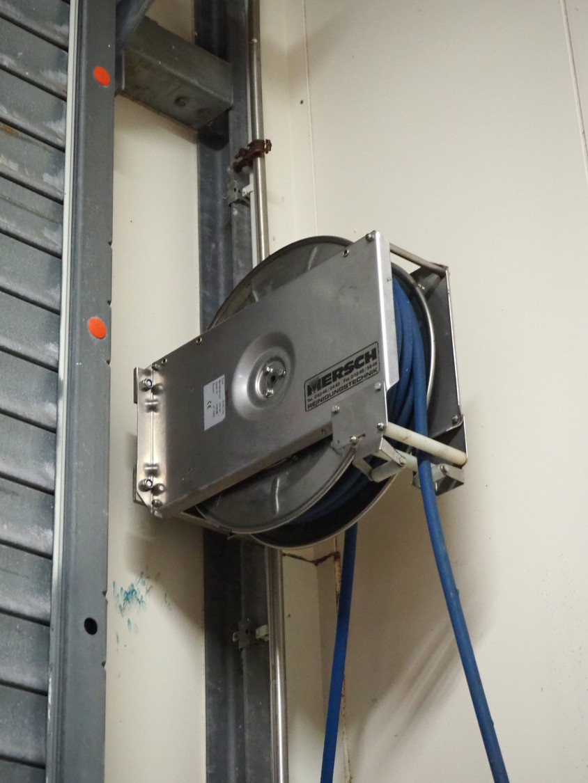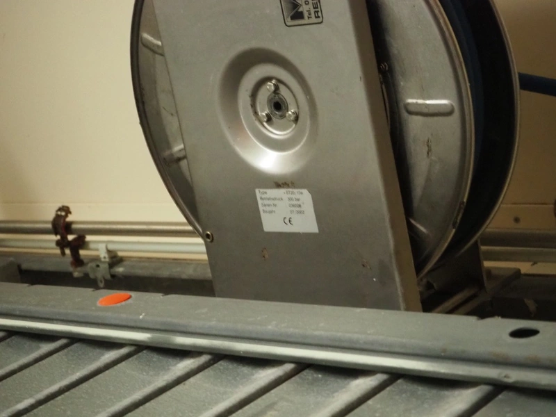 Theodor Henrichs GmbH hose reel with hose and pistol, type: ST20/10e, serial number: 036038, year of construction: 07/2008, dimensions: 460 mm x 250 mm x 400 mm.