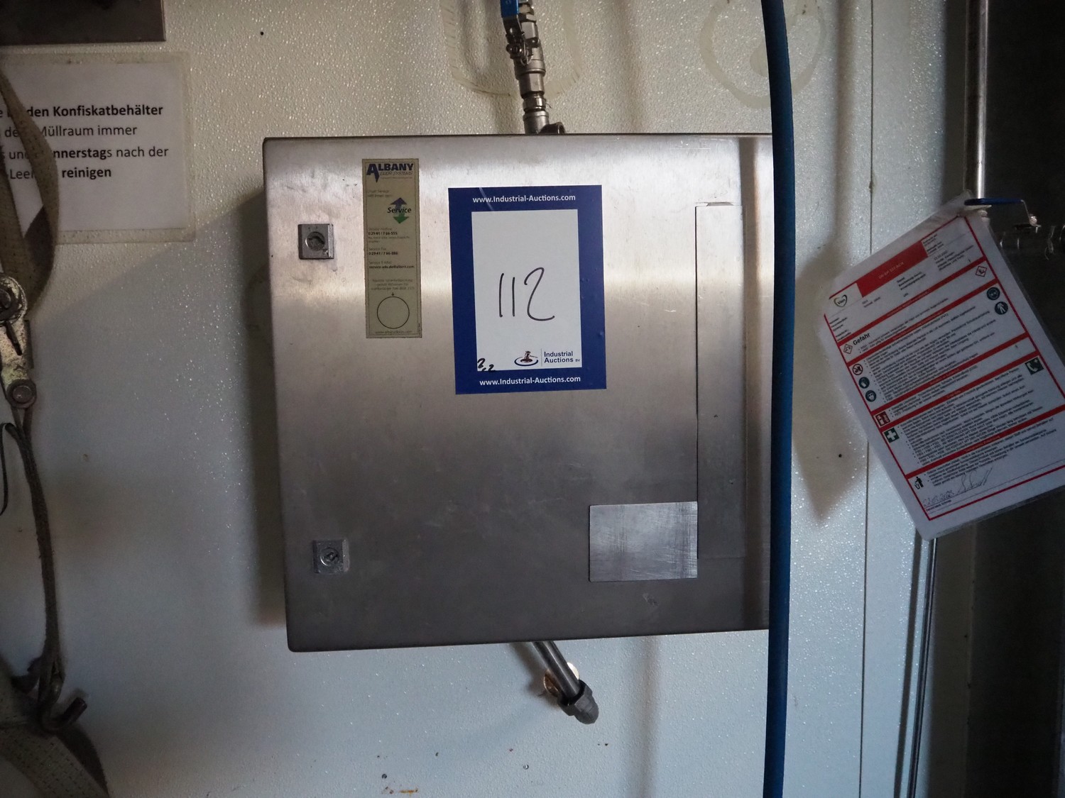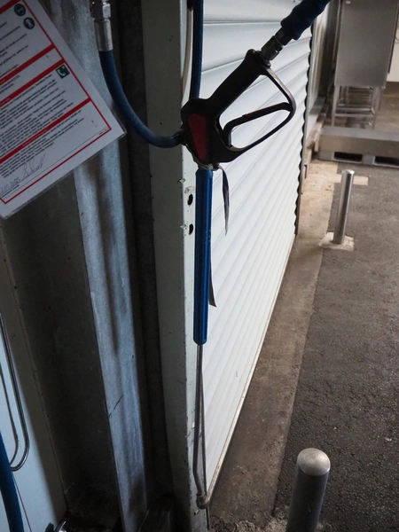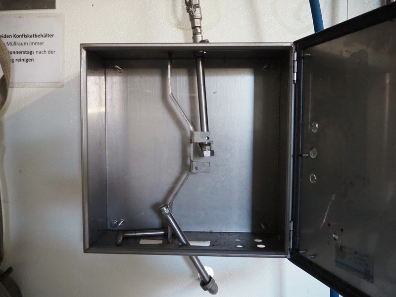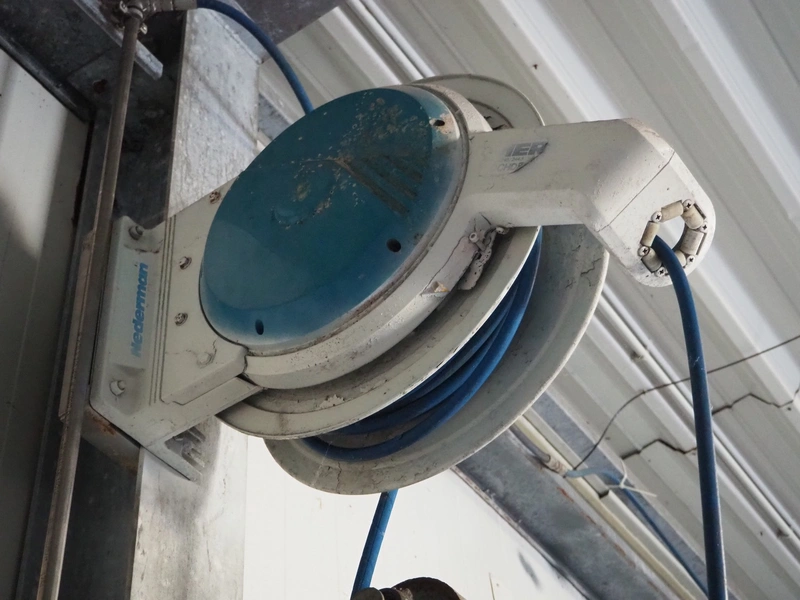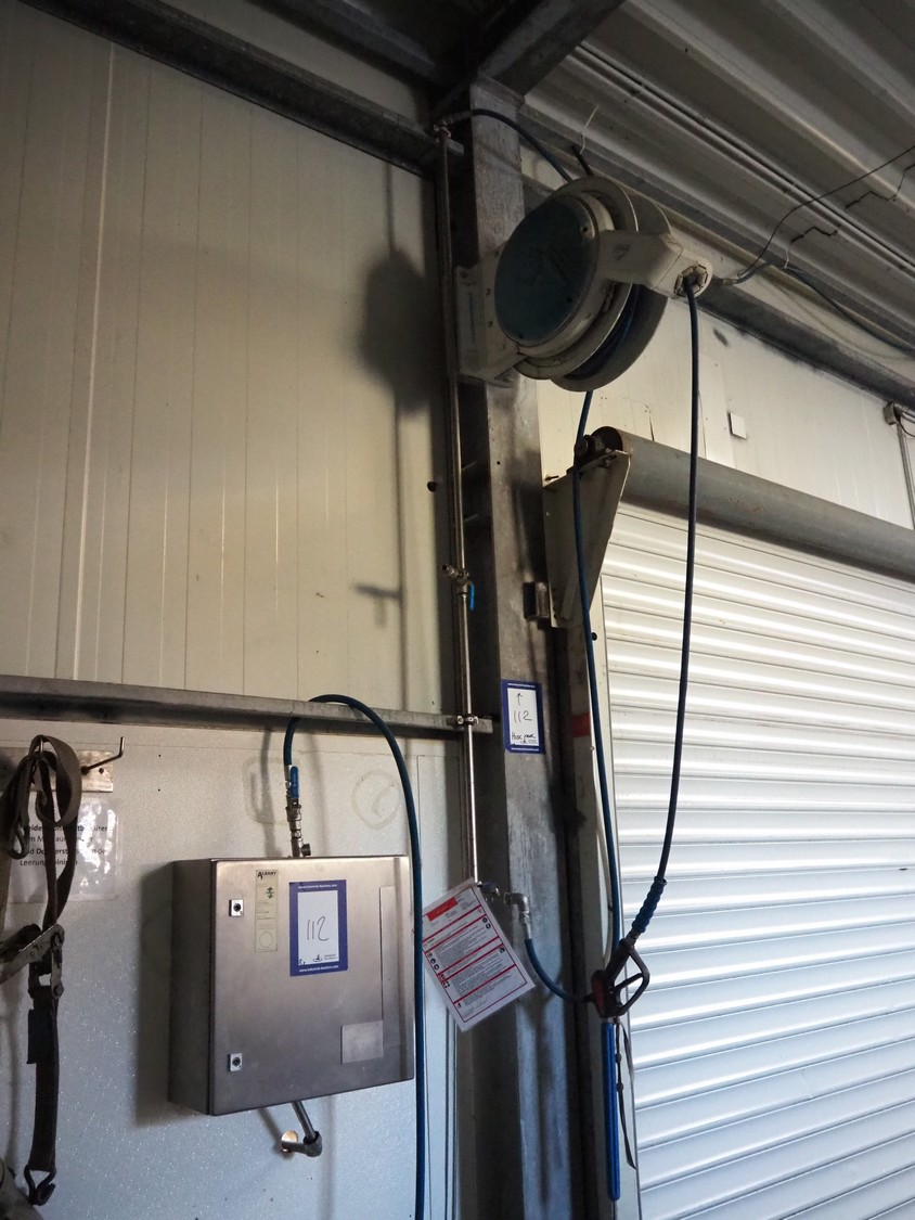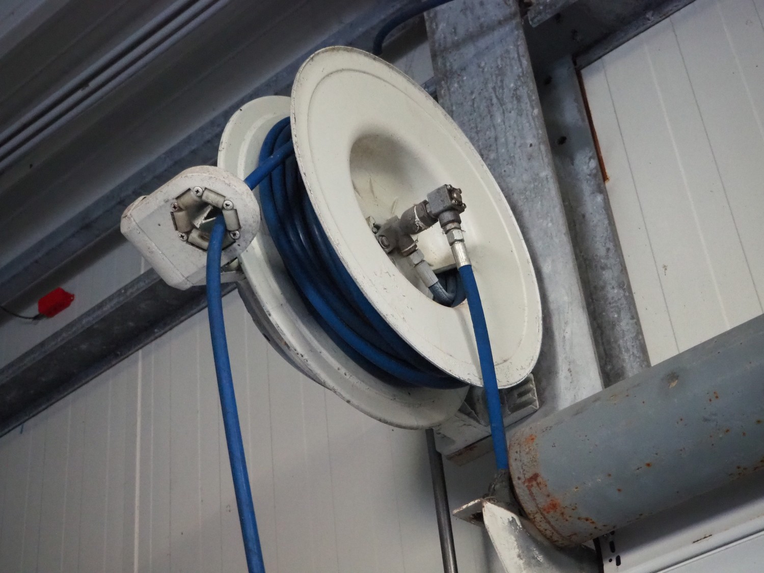 Nederman hose reel with hose and pistol, dimensions: 700 mm x 300 mm x 500 mm, with s/s cabinet, dimensions: 500 mm x 210 mm x 500 mm.