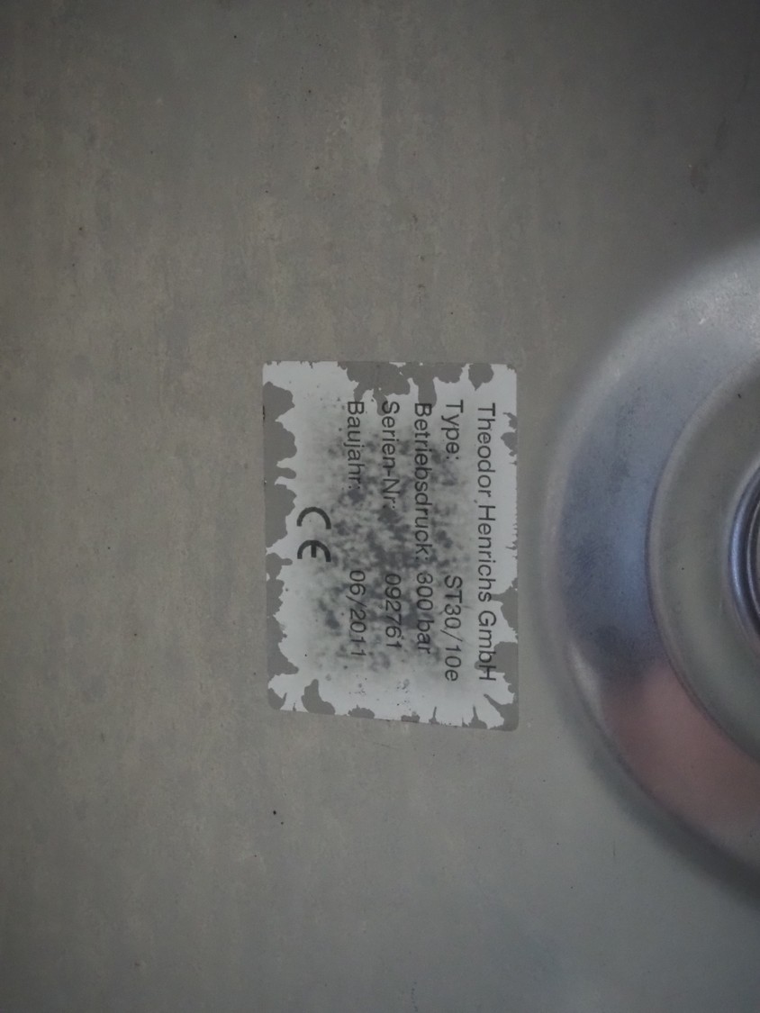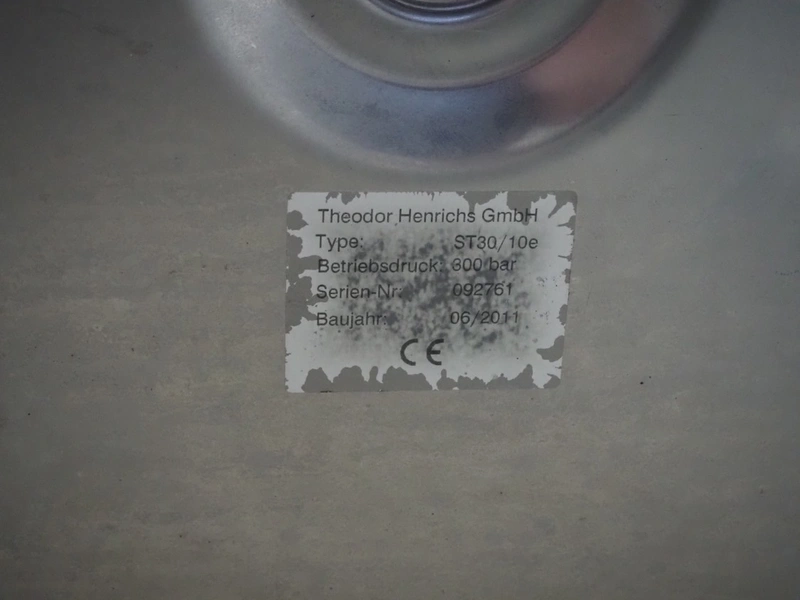 Theodor Henrichs GmbH hose reel with hose and pistol, type: ST30/10e, serial number: 092761, year of construction: 06/2011, dimensions: 460 mm x 250 mm x 400 mm.