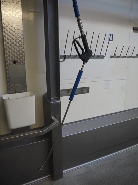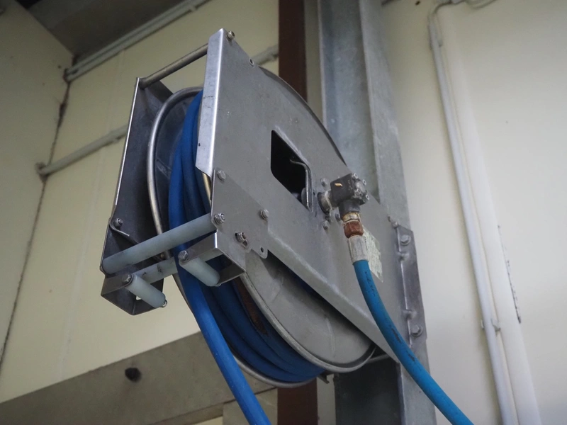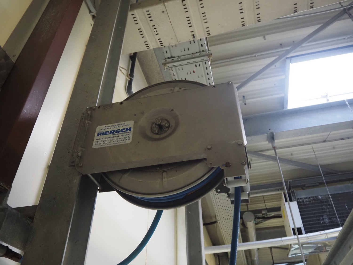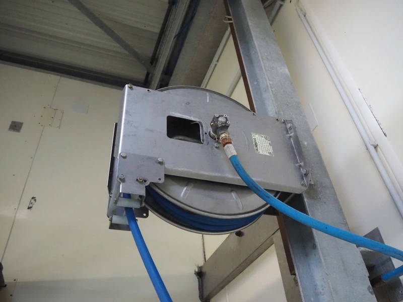 Theodor Henrichs GmbH hose reel with hose and pistol, type: ST30/10e, dimensions: 460 mm x 250 mm x 400 mm.