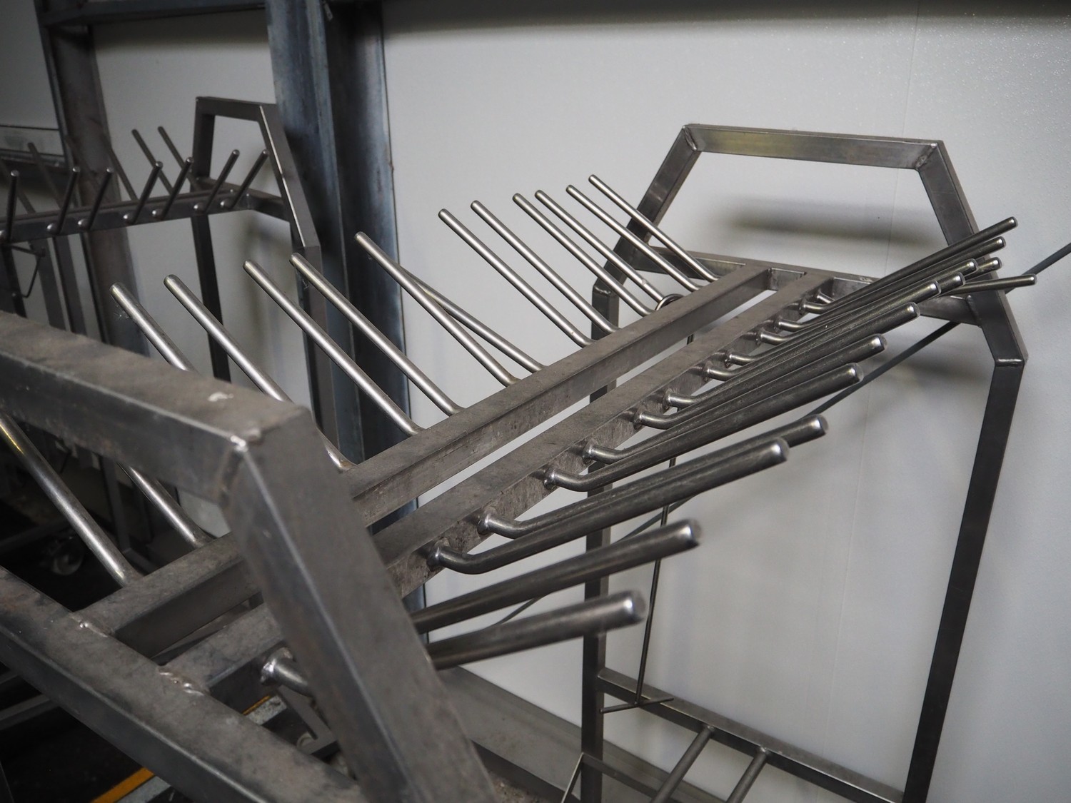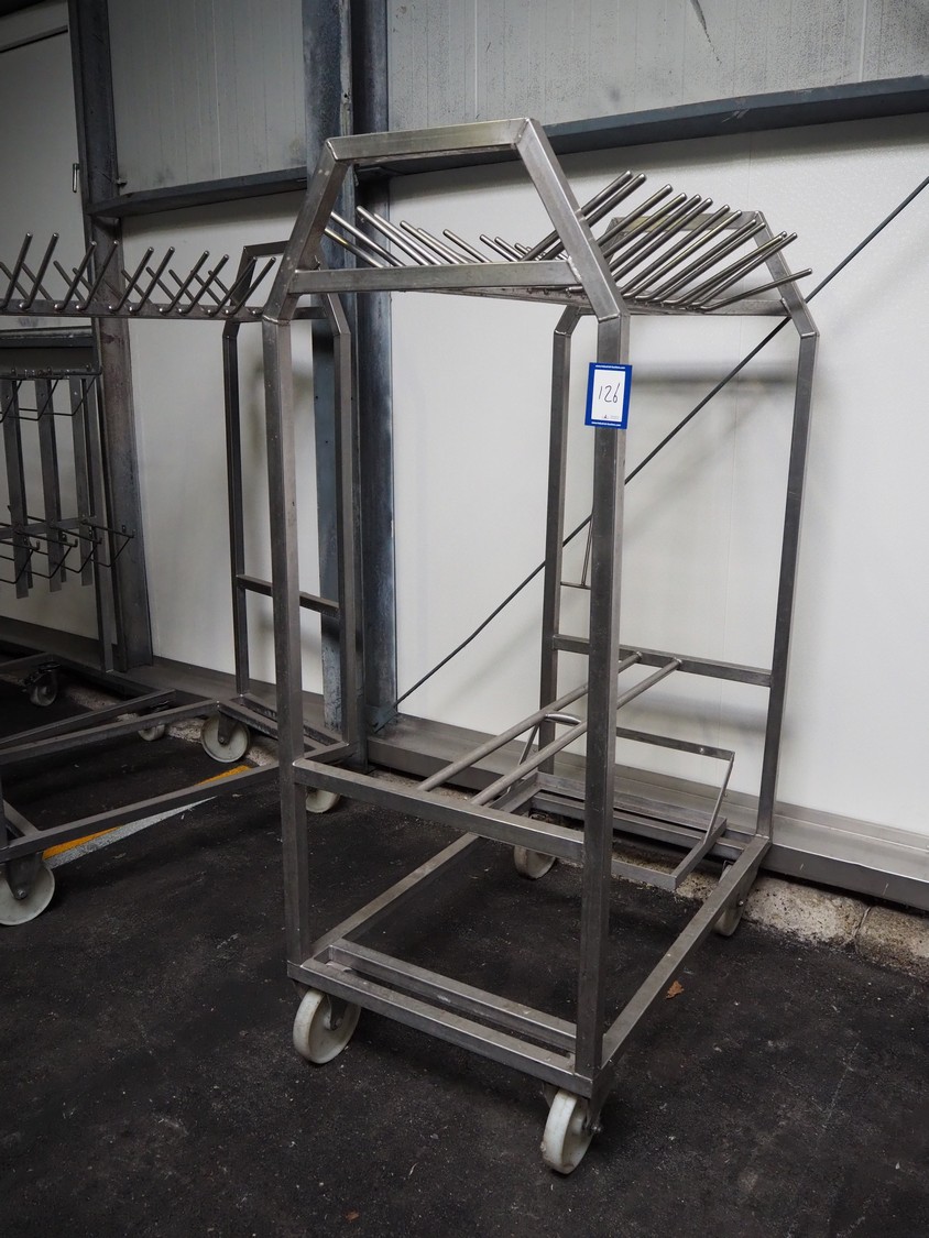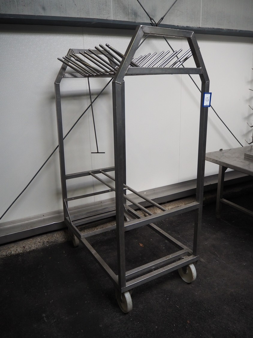 S/s trolley for hooks, dimensions: 1250 mm x 740 mm x 1950 mm.