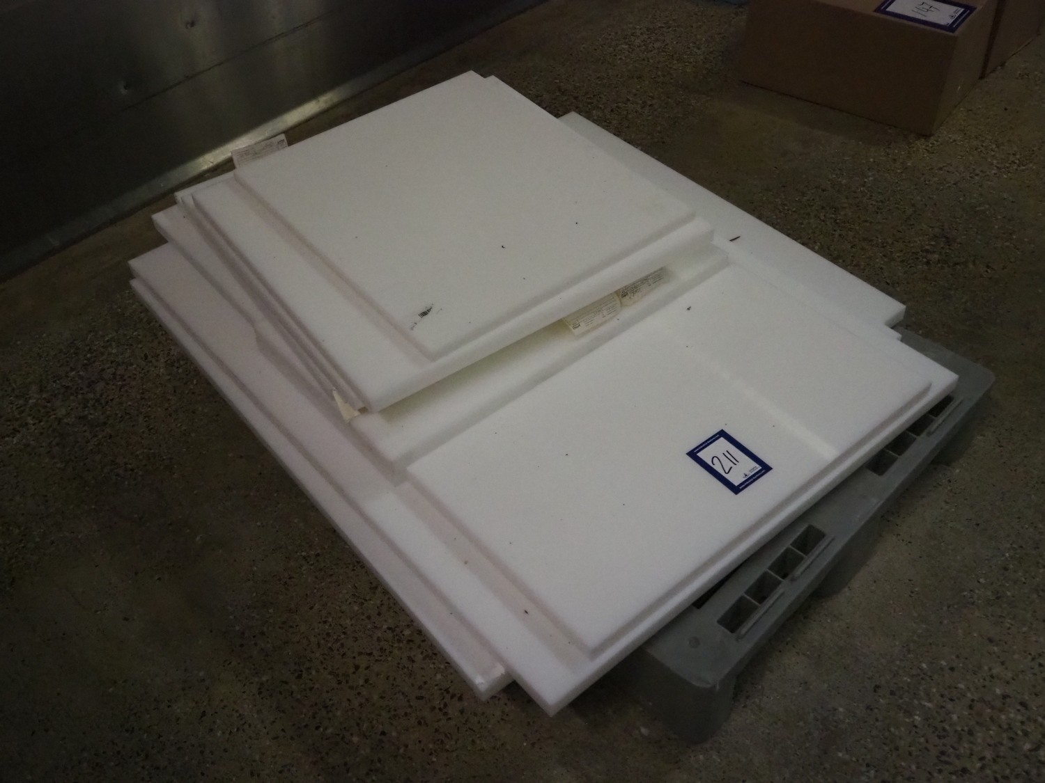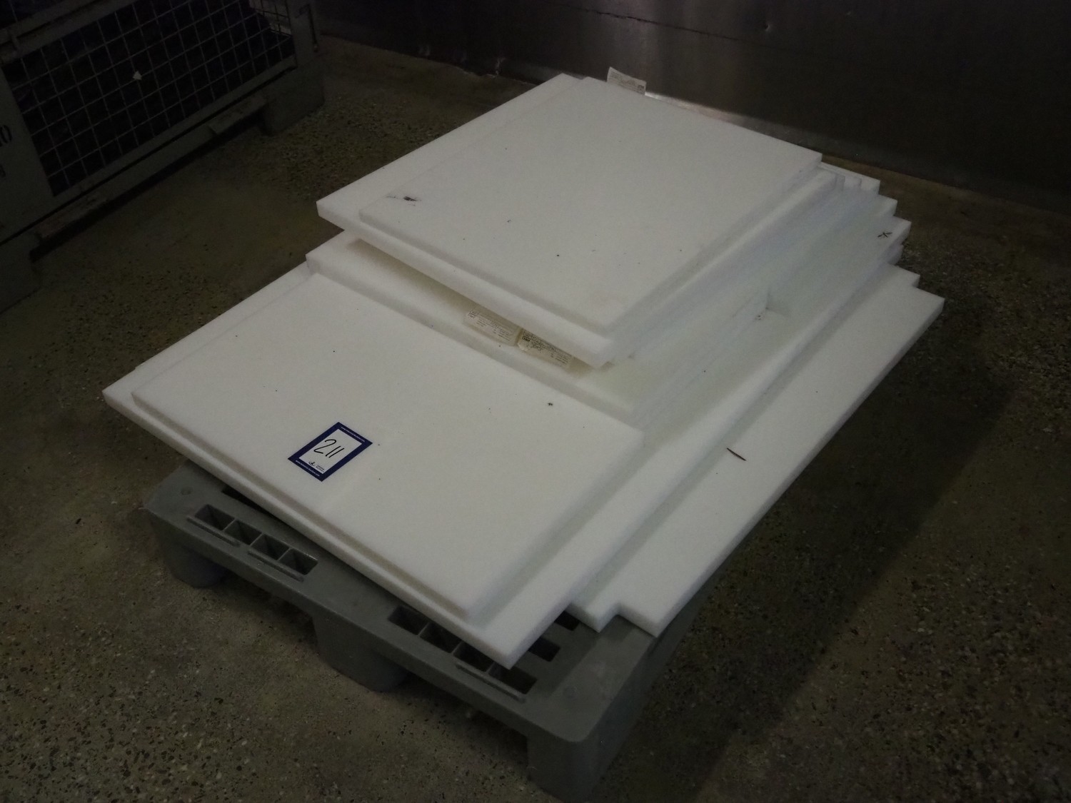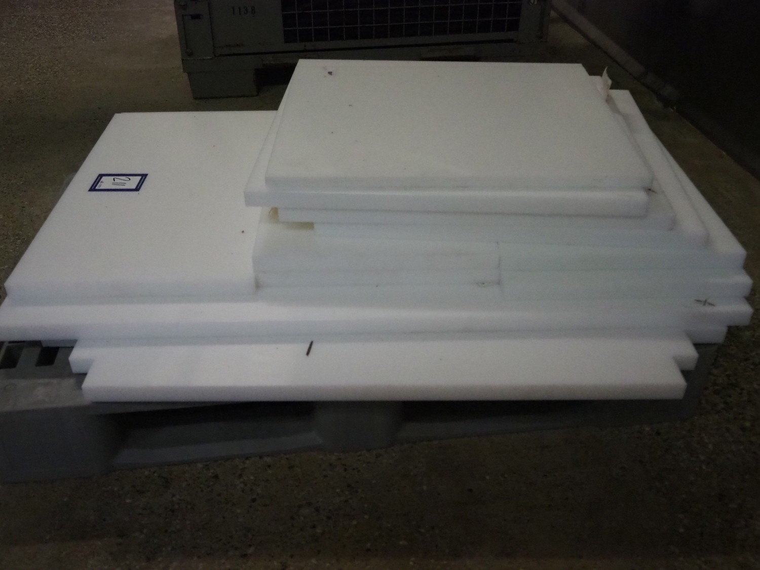 Plastic pallet with various plastic cutting plates, dimensions among others: 520 mm x 600 mm, 650 mm x 650 mm and 700 mm x 1150 mm.
