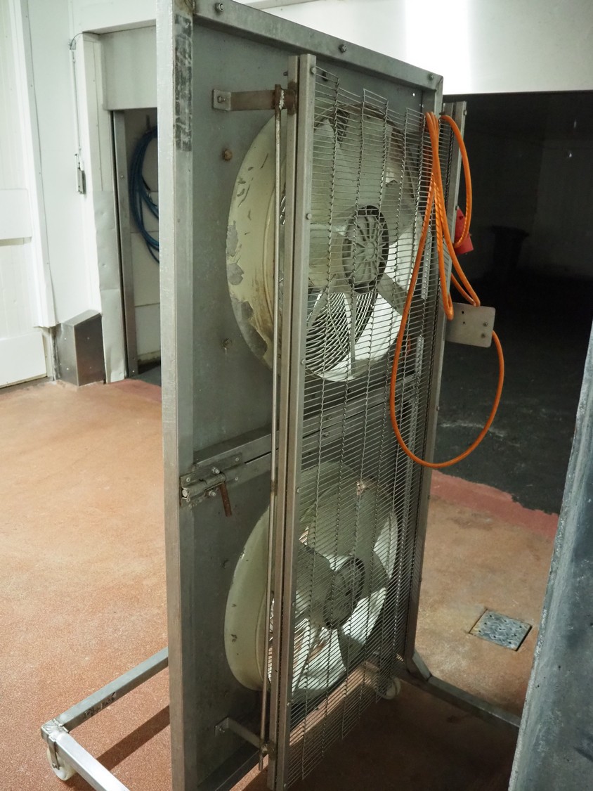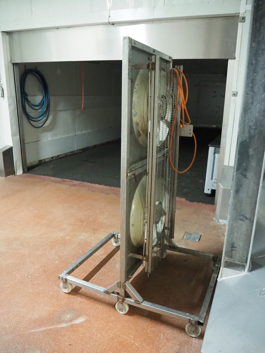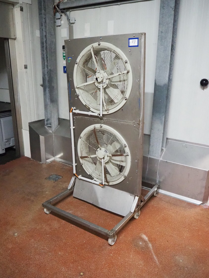 S/s trolley with 2 fans, dimensions: 1200 mm x 920 mm x 1900 mm.
