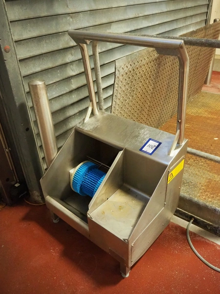 Itec / Attec sole cleaner, type: 23820, serial number: 0130, year of construction: 07/00, 400 V, 3 Ph, 50 Hz, 0.25 kW, brush dimensions: 240 mm x 200 mm, total dimensions: 660 mm x 260 mm x 1140 mm.