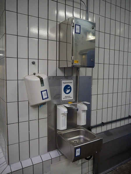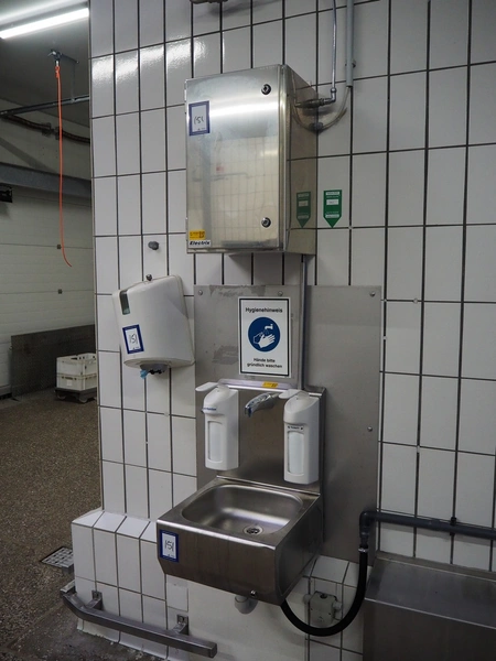 Hygiene equipment consisting of: s/s sink, dimensions: 430 mm x 430 mm x 600 mm, paper dispenser, dimensions: 300 mm x 250 mm x 400 mm, s/s cabinet with boiler, dimensions: 340 mm x 340 mm x 560 mm.