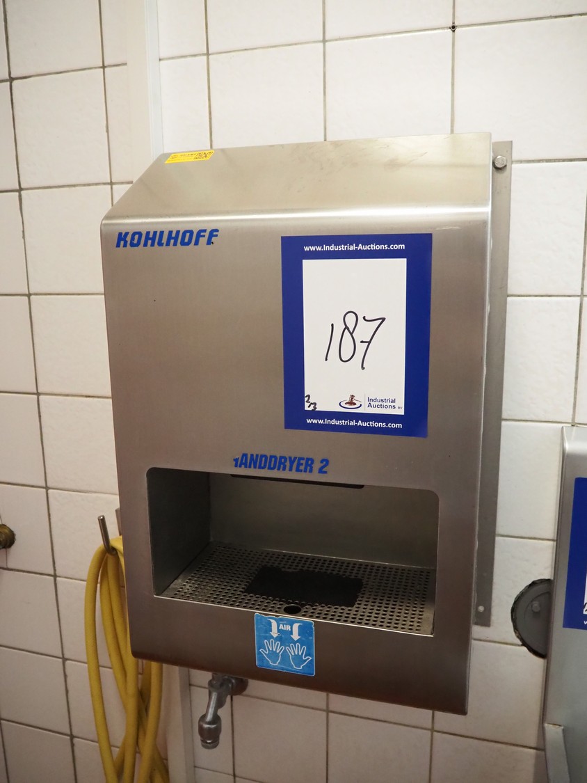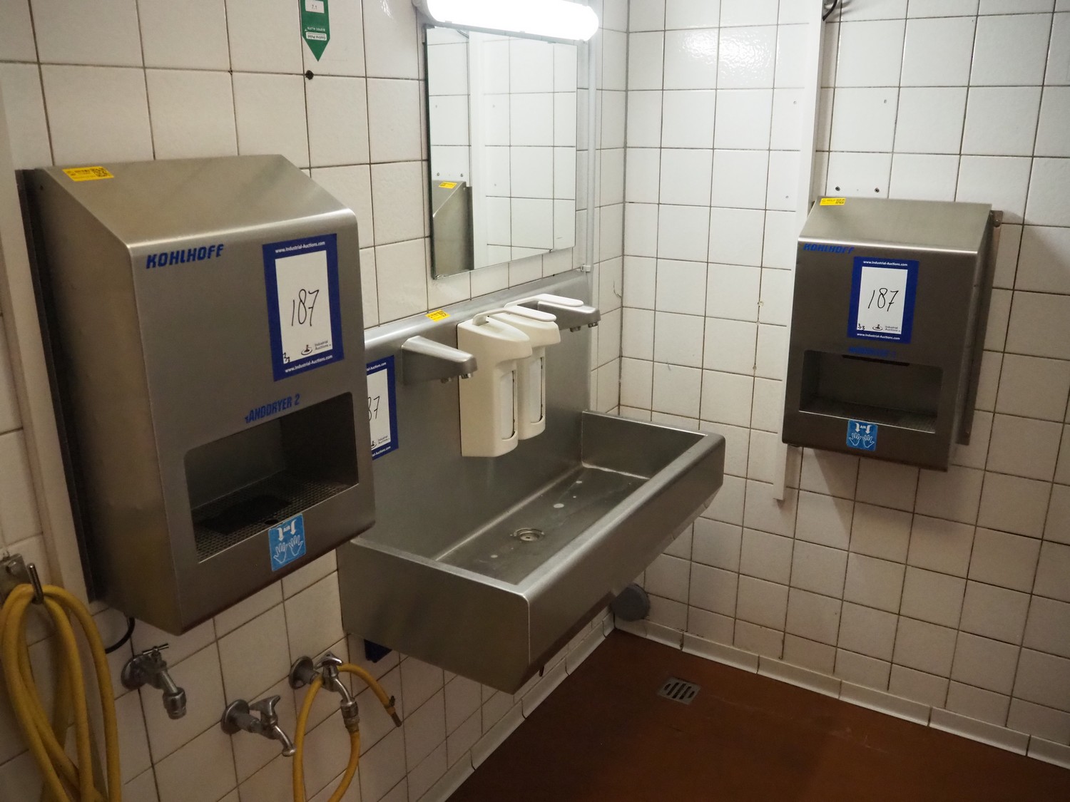 hygiene equipment consisting of: Itec s/s sink, dimensions: 950 mm x 4510 mm x 600 mm, 2 Kohlhoff air dryers, dimensions: (2x) 400 mm x 200 mm x 650 mm.