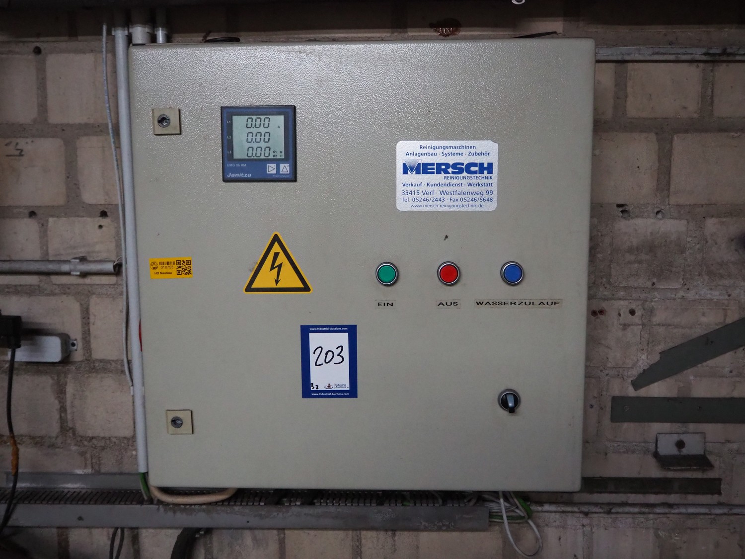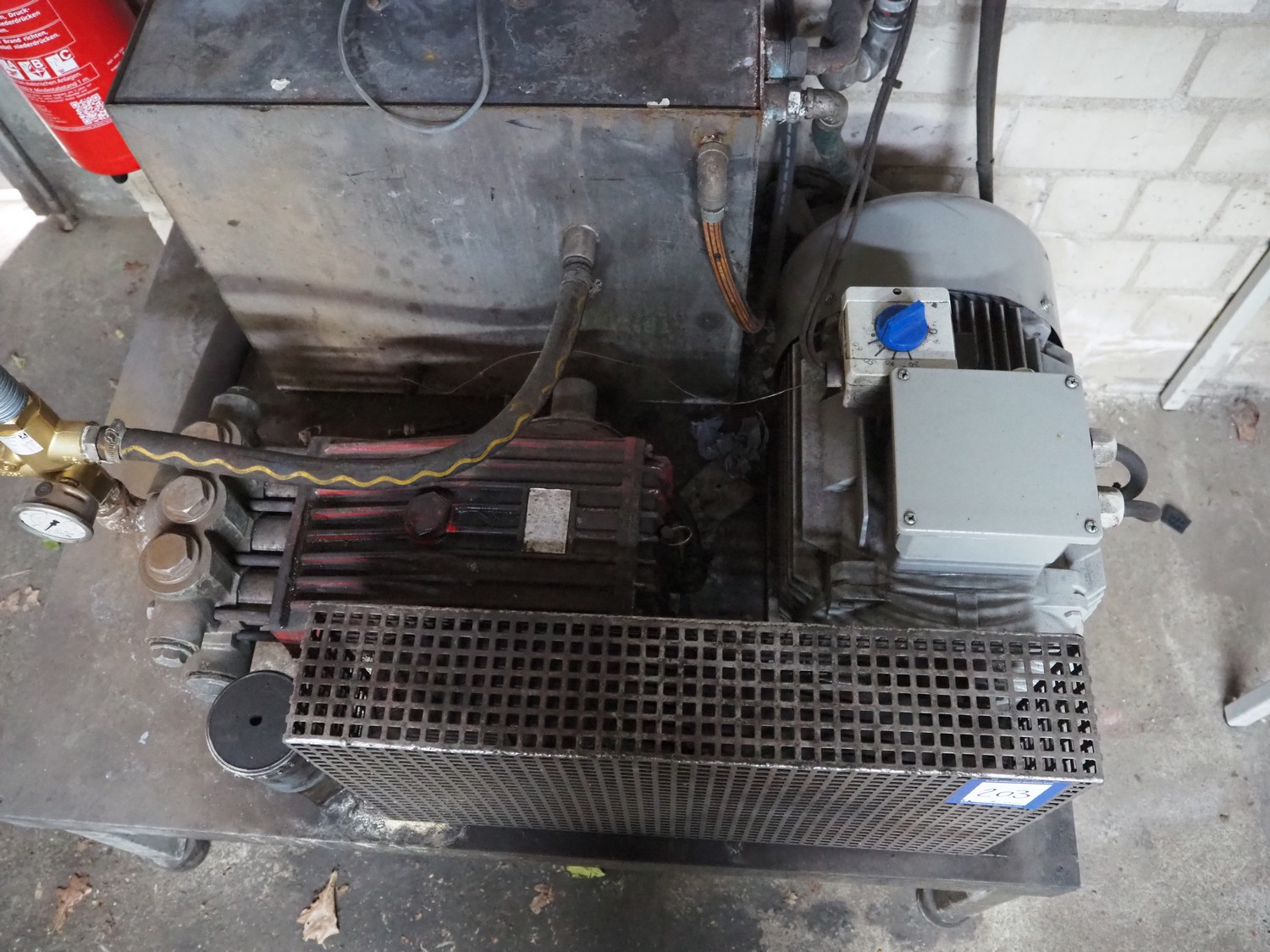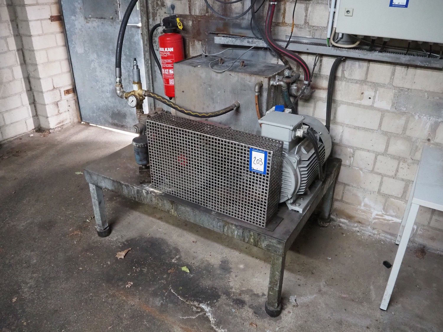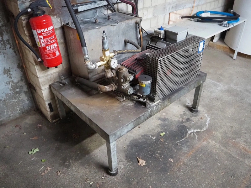 Mersch high pressure system, dimensions: 1200 mm x 900 mm x 1000 mm, with switch cabinet, dimensions: 600 mm x 200 mm x 600 mm.
