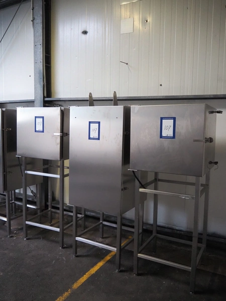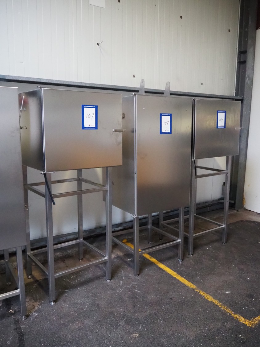 3 s/s computer cabinets, dimensions: (2x) 700 mm x 700 mm x 1780 mm, (1x) 700 mm x 700 mm x 1800 mm.