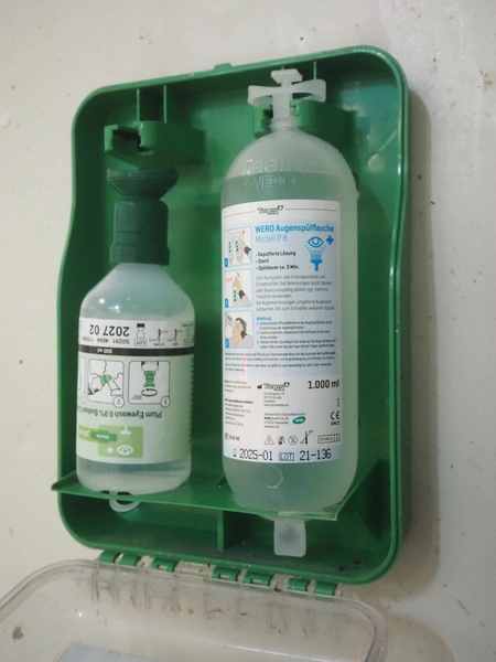 Wero eye shower, dimensions: 280 mm x 100 mm x 340 mm.