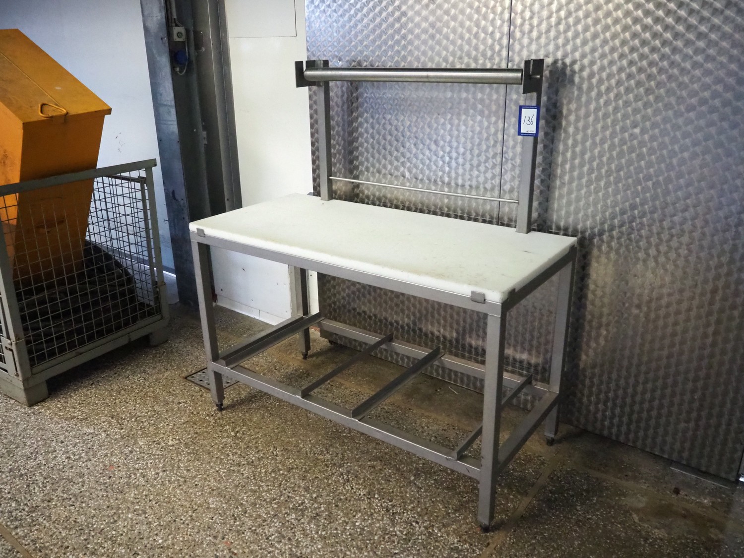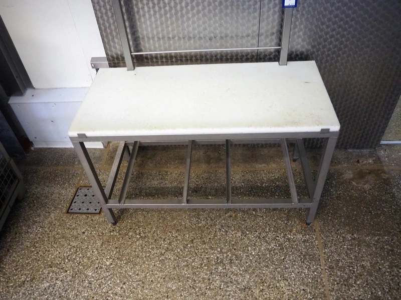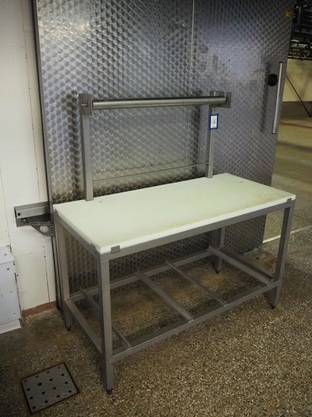 S/s packing table, plastic top, dimensions: 1300 mm x 600 mm x 1400 mm.