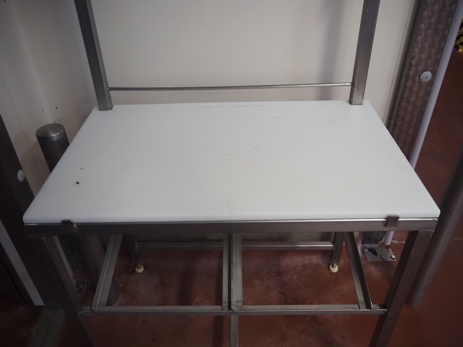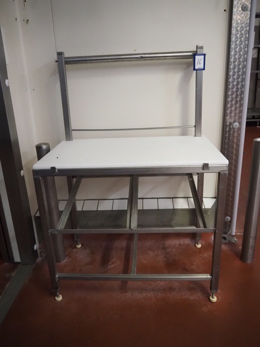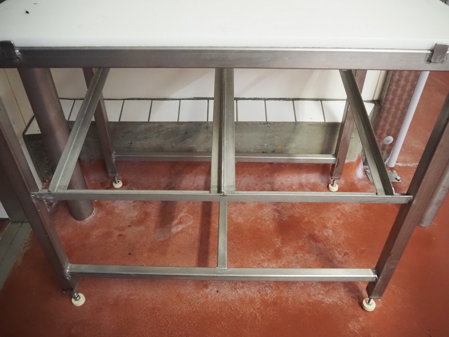 S/s packing table, plastic top, dimensions: 1000 mm x 620 mm x 1460 mm.