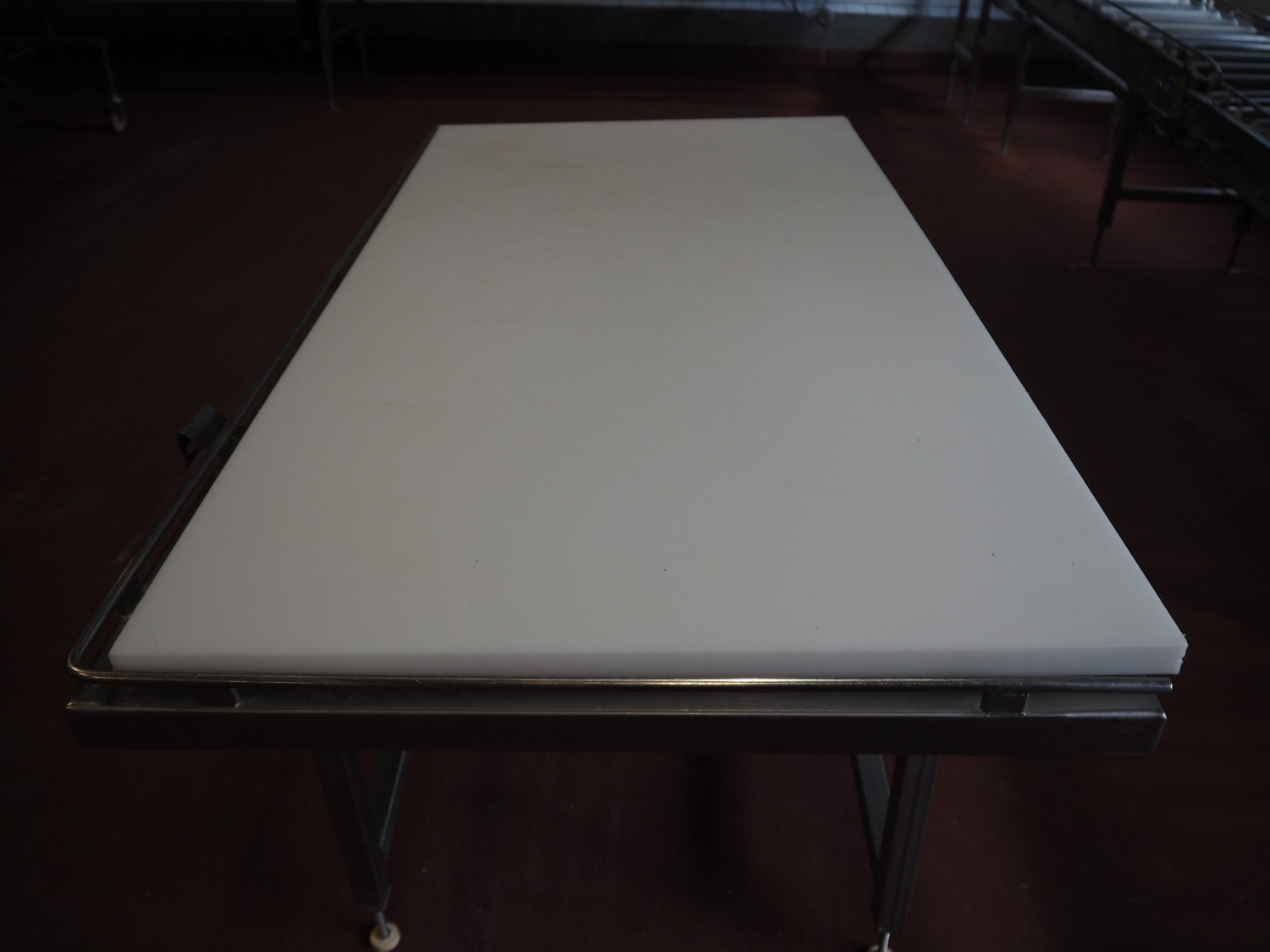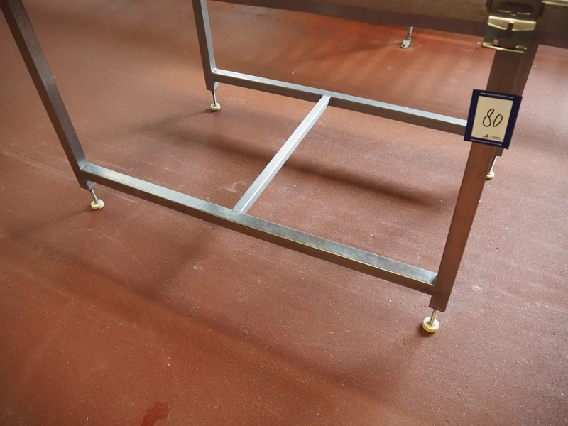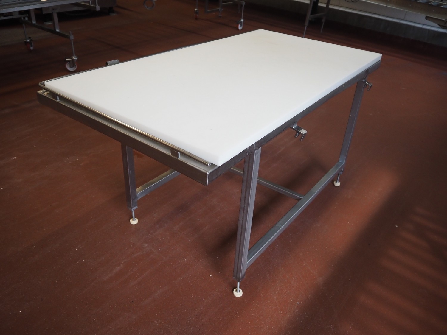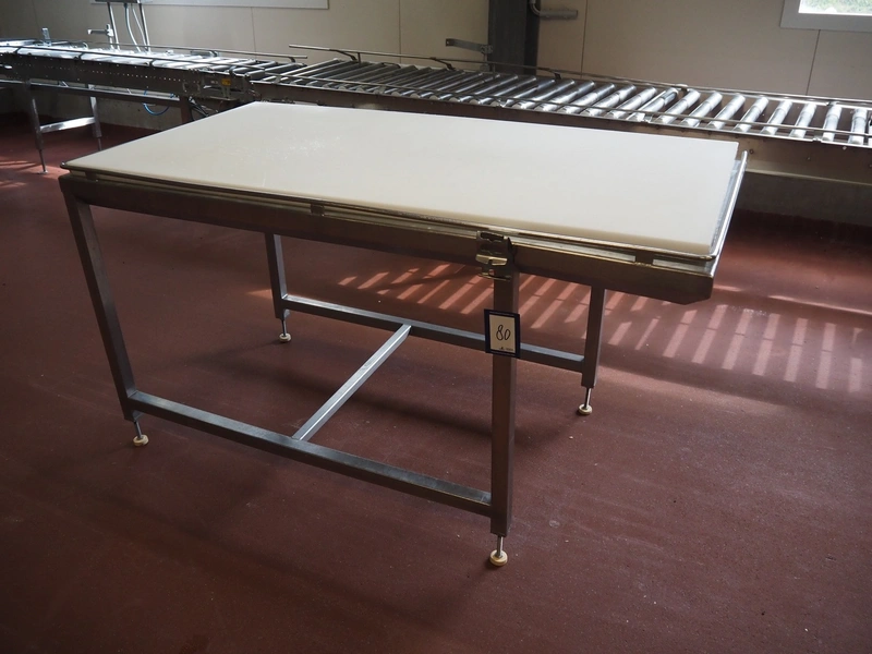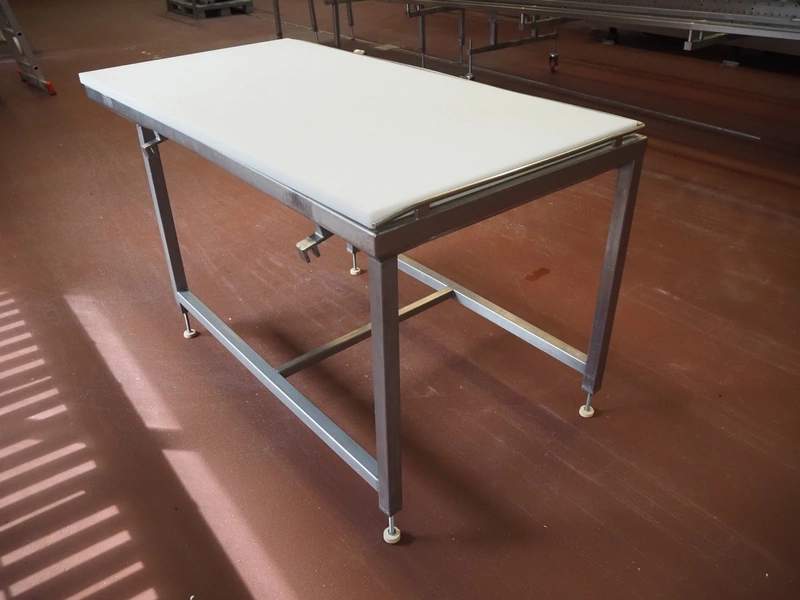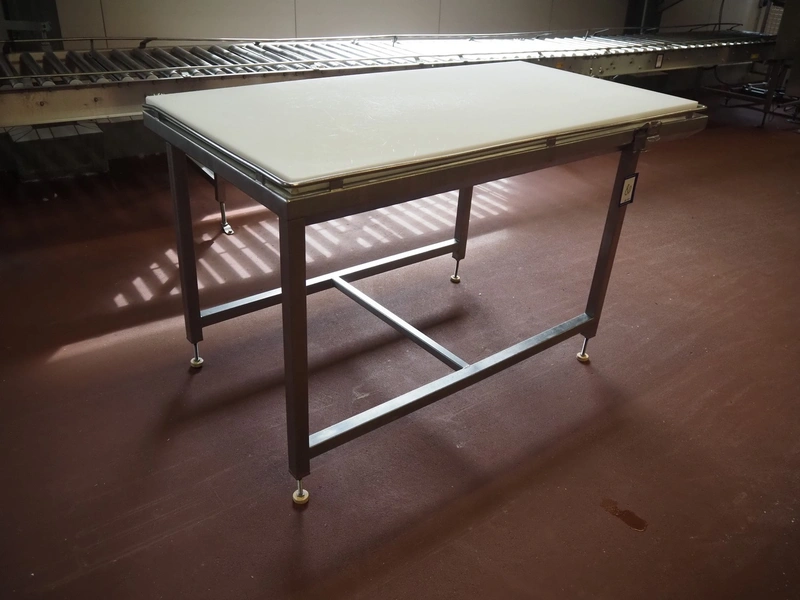 S/s table with plastic top, dimensions: 1500 mm x 780 mm x 900 mm.