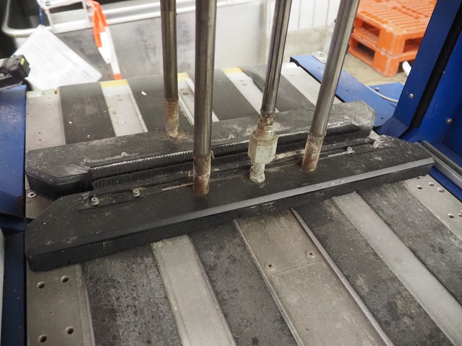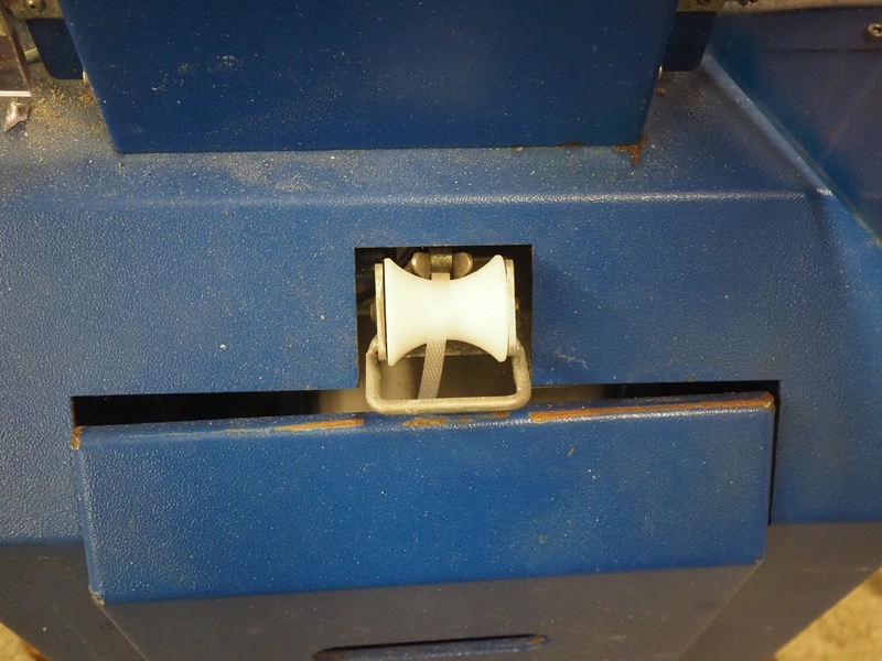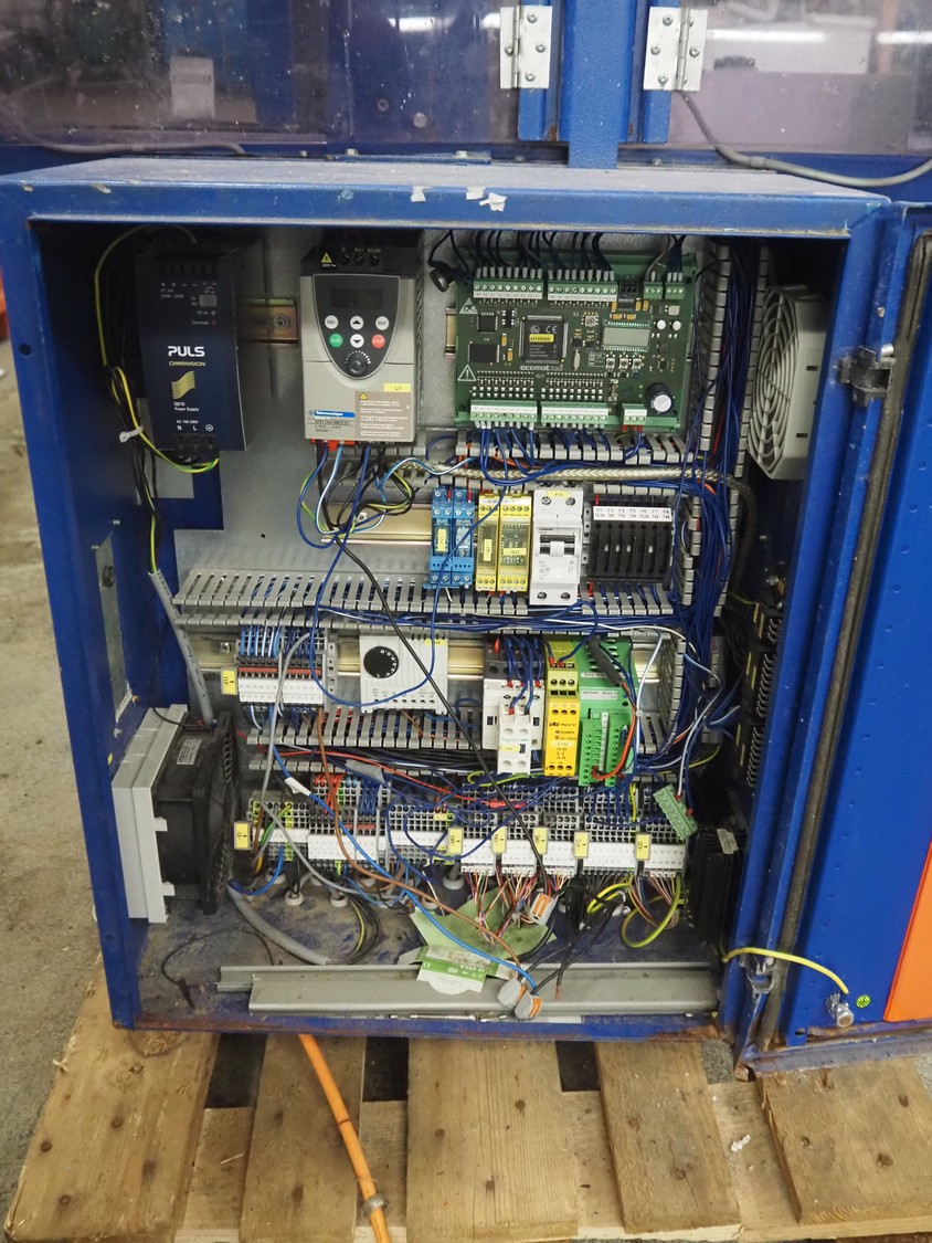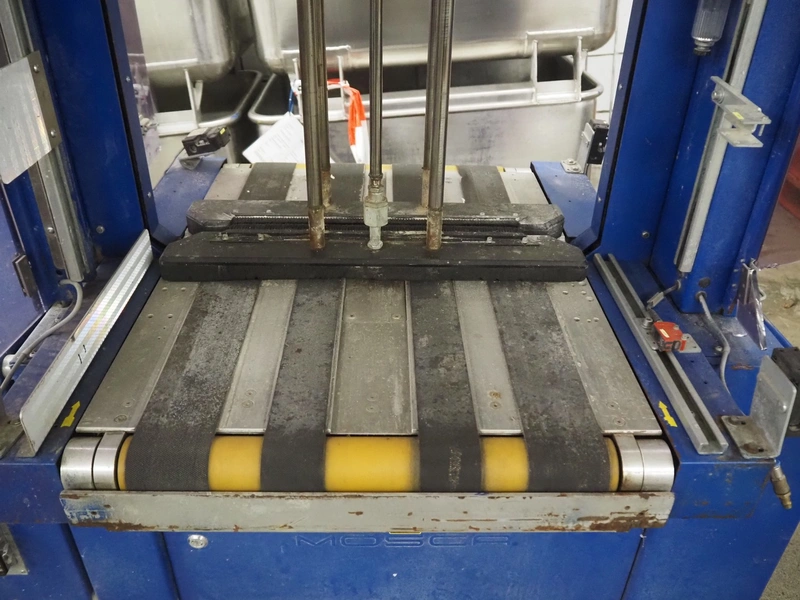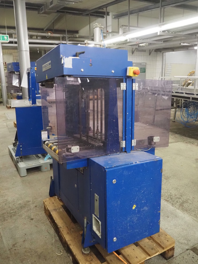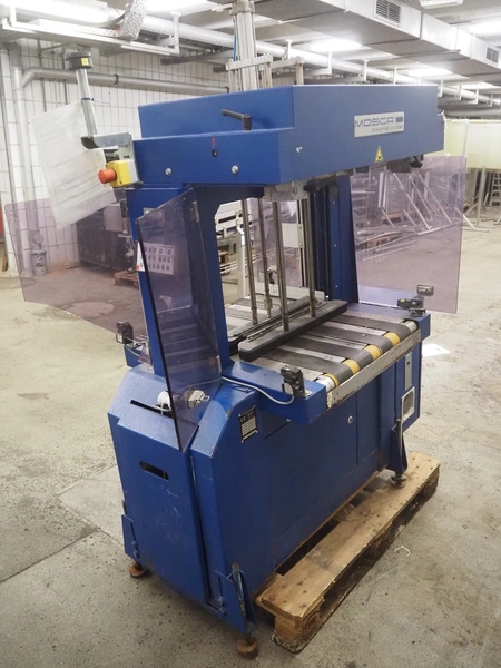 Mosca strapping machine, type: RO-TRP-5, number: 95540, year of construction: 2009, 400 V, 3 Ph, 50 Hz, 2.5 A, 1.5 kW, clearance: 660 mm x 500 mm, total dimensions: 1000 mm x 1000 mm x 1800 mm. Damaged.