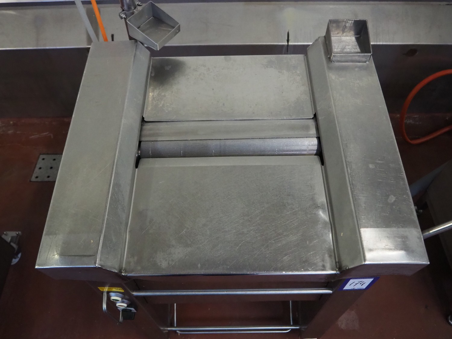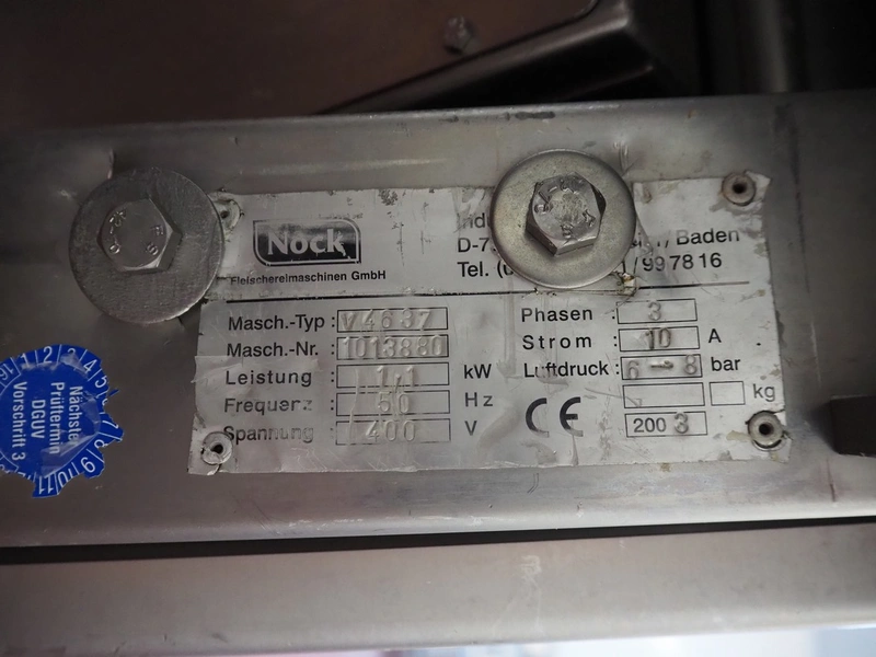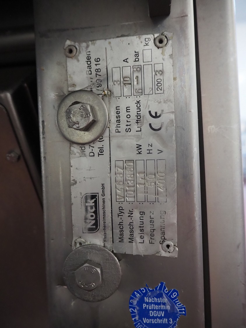 Nock mobile skinning machine, type: V4637, machine number: 1013880, year of construction: 2003, 400 V, 3 Ph, 50 Hz, 10 A, 1.1 kW, working width: 420 mm, total dimensions: 700 mm x 750 mm x 1600 mm.