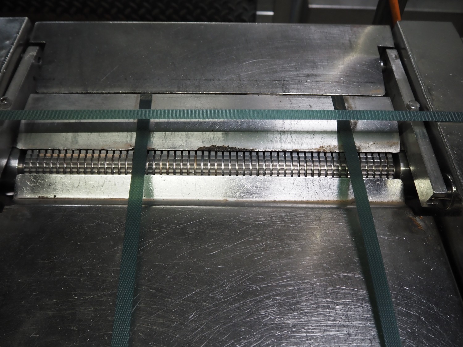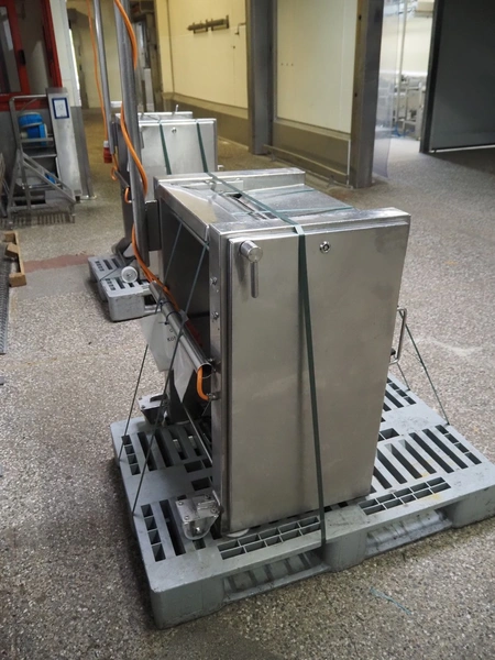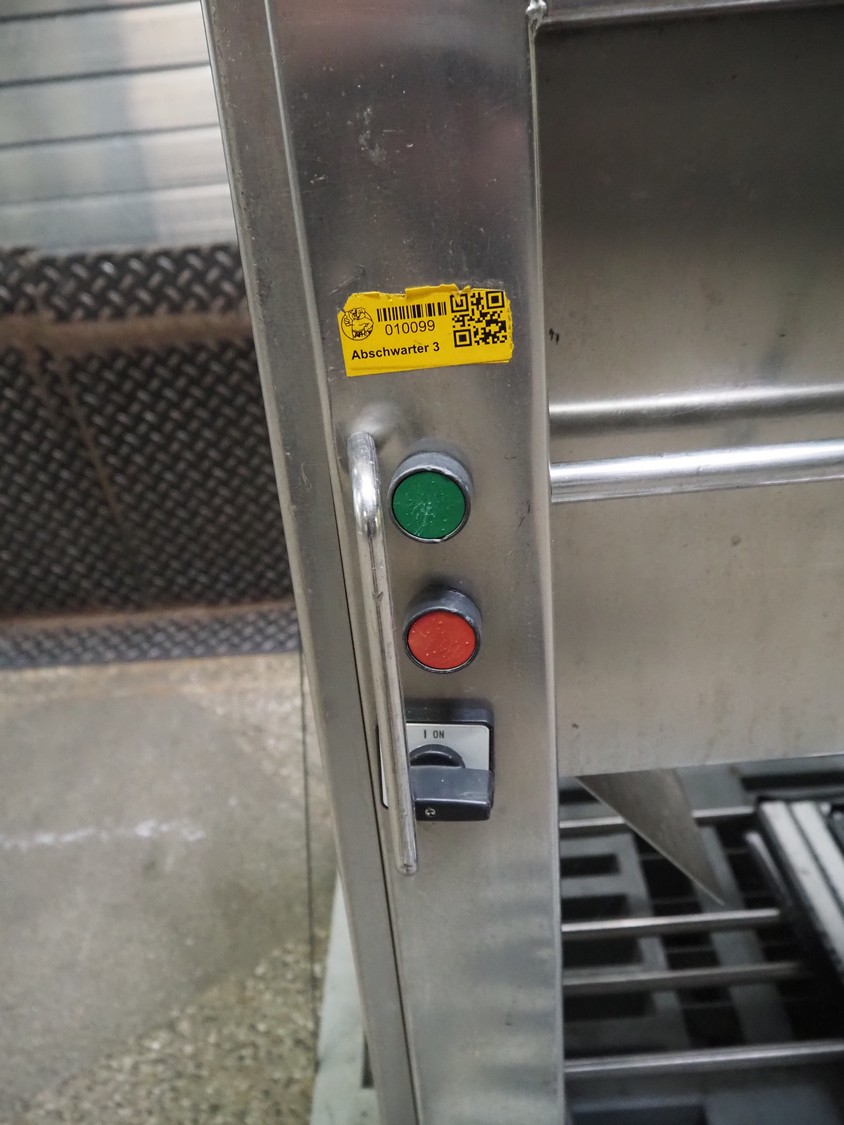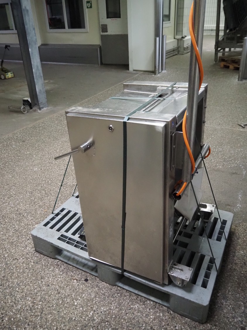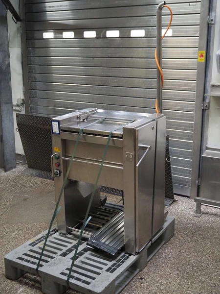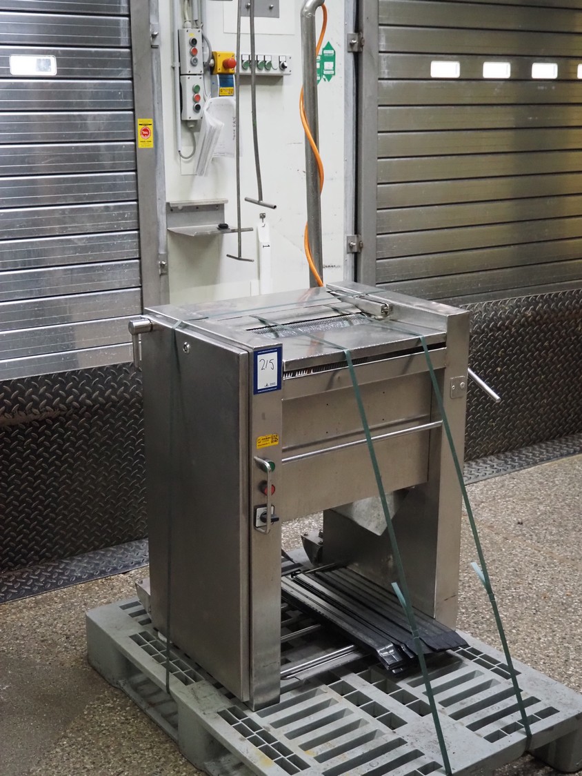 Mobile skinning machine, working width: 440 mm, total dimensions: 500 mm x 700 mm x 900 mm.