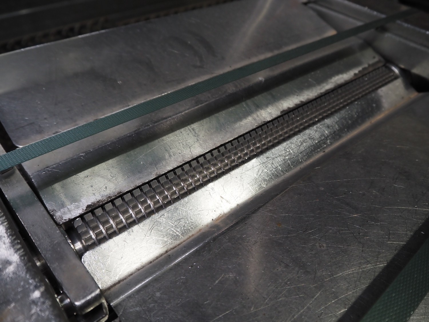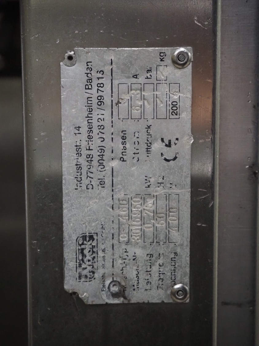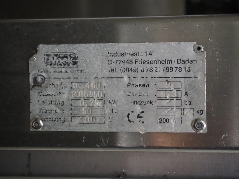 Nock mobile skinning machine, type: C 400, machine number: 3016950, year of construction: 2004, 400 V, 3 Ph, 50 Hz, 0.75 kW, working width: 440 mm, total dimensions: 560 mm x 700 mm x 900 mm.