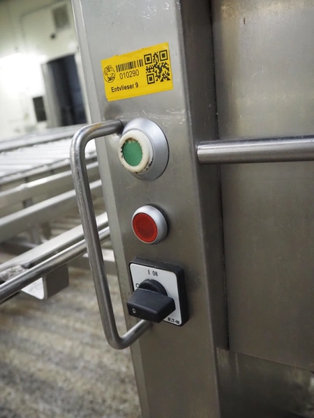 Nock mobile skinning machine, type: V4644, machine number: 0525390, year of construction: 2008, 400 V, 3 Ph, 50 Hz, 1.1 kW, working width: 430 mm, total dimensions: 830 mm x 650 mm x 1750 mm.