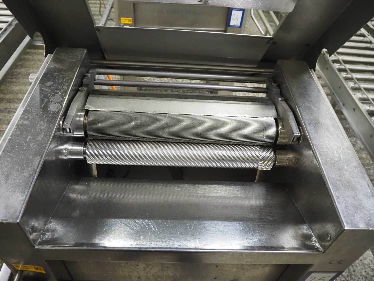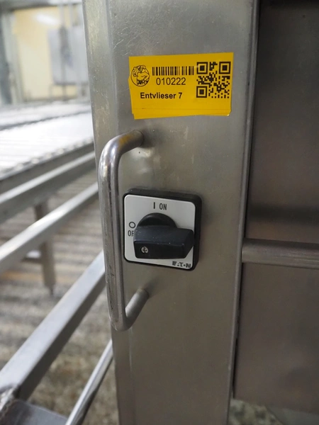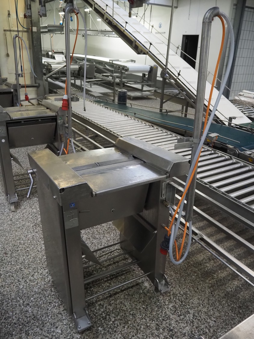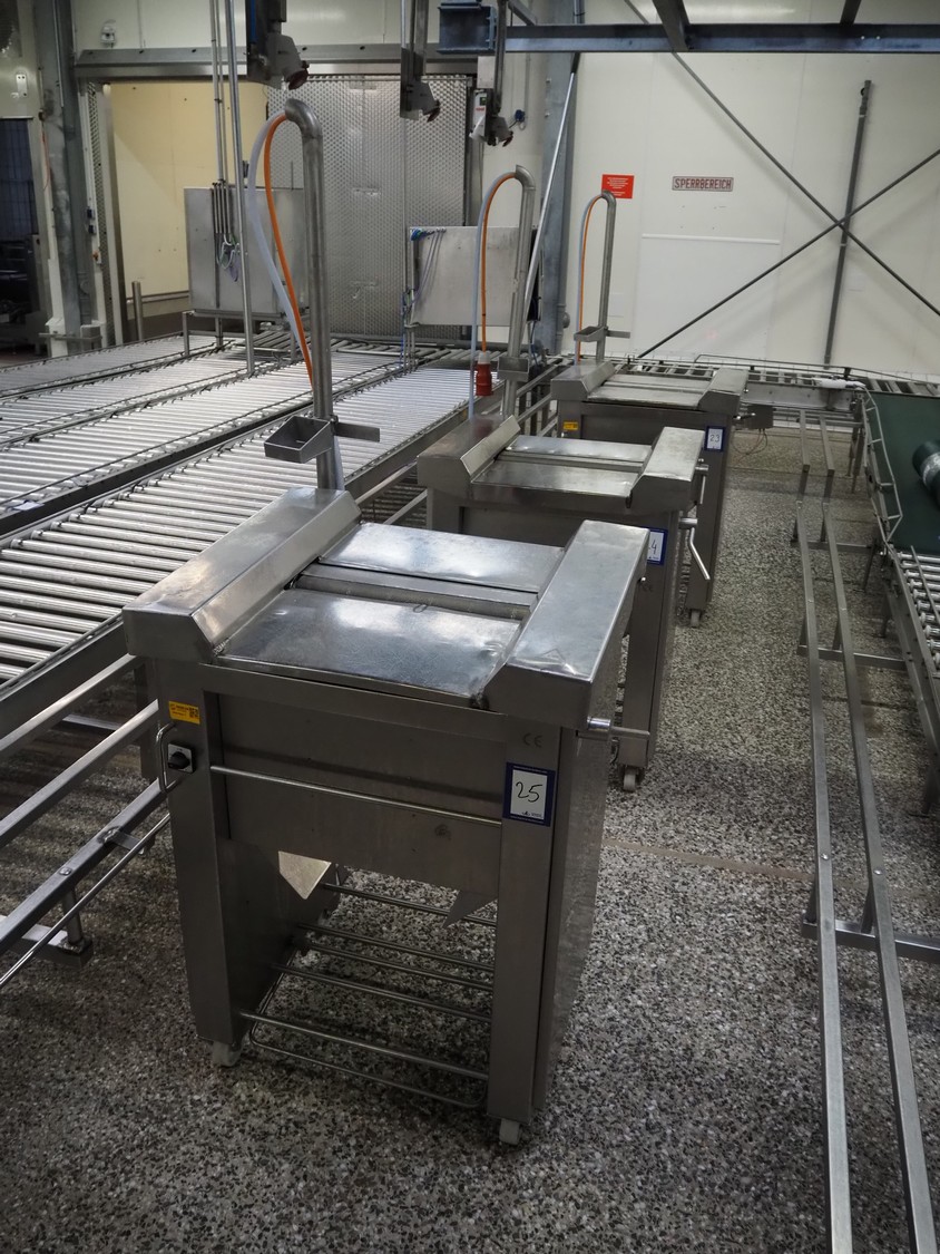 Nock mobile skinning machine, type: V4644, 400 V, 3 Ph, 50 Hz, 1.1 kW, working width: 430 mm, total dimensions: 830 mm x 650 mm x 1750 mm.