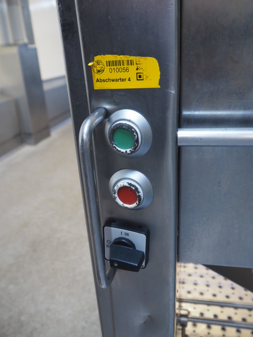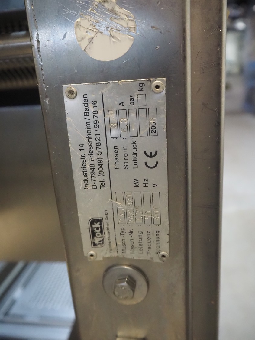 Nock mobile skinning machine, type: C460, machine number: 2420920, year of construction: 2006, 400 V, 3 Ph, 50 Hz, 6.3 A, 0.75 kW, working width: 450 mm, total dimensions: 800 mm x 600 mm x 1700 mm.