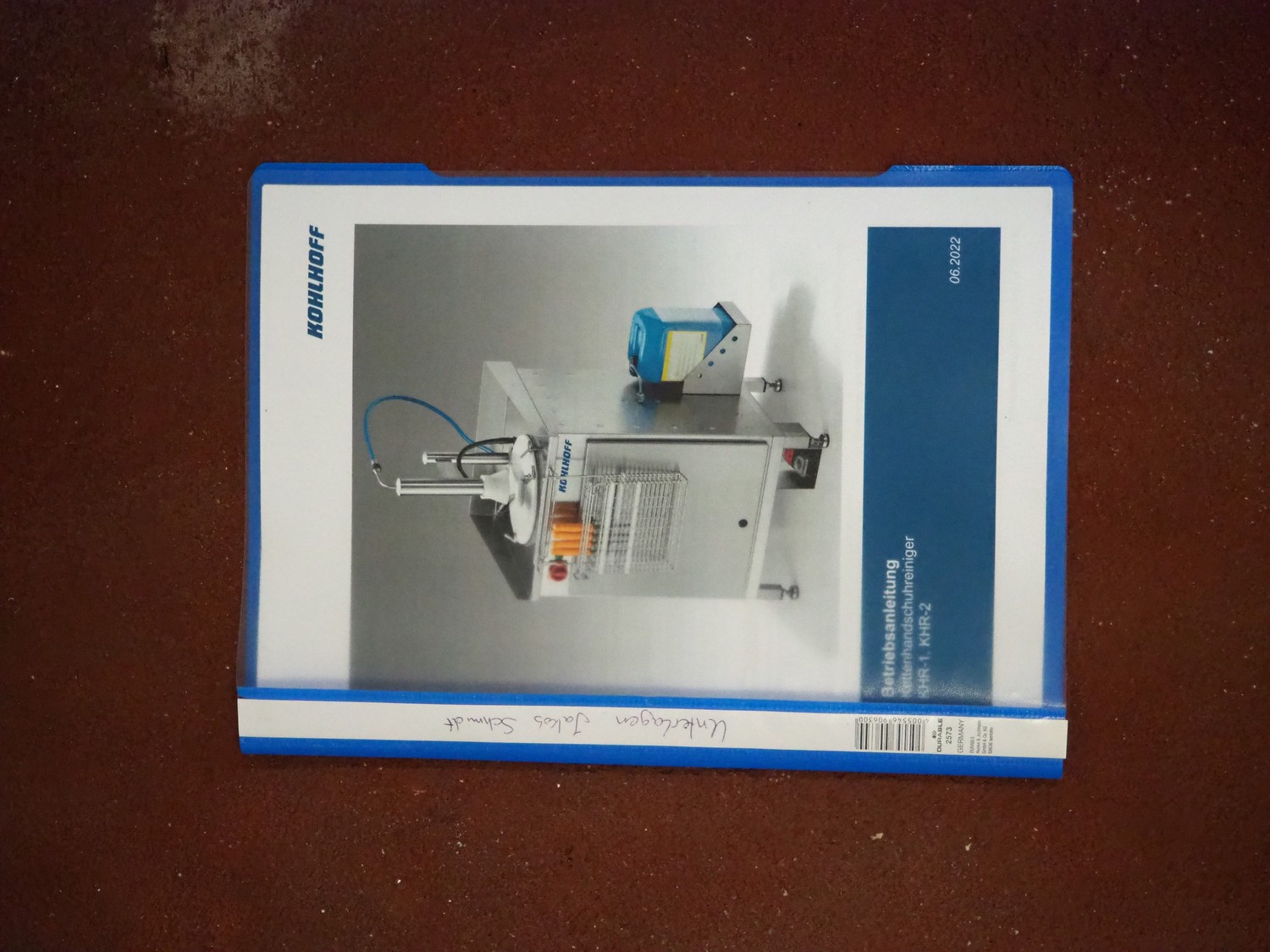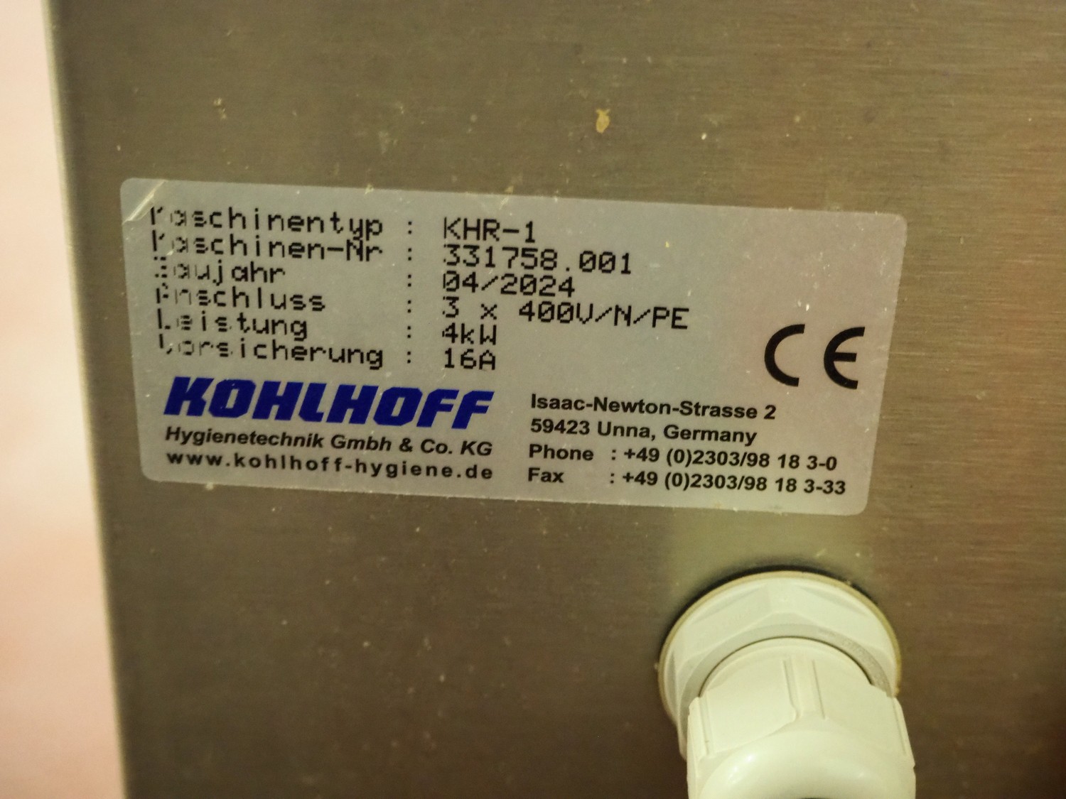 Kohlhoff chain glove cleaner, type: KHR-1, machine number: 331758.001, year of construction: 04/2024, 400 V, 3 Ph, 16 A, 4 kW, dimensions: 700 mm x 700 mm x 1600 mm.