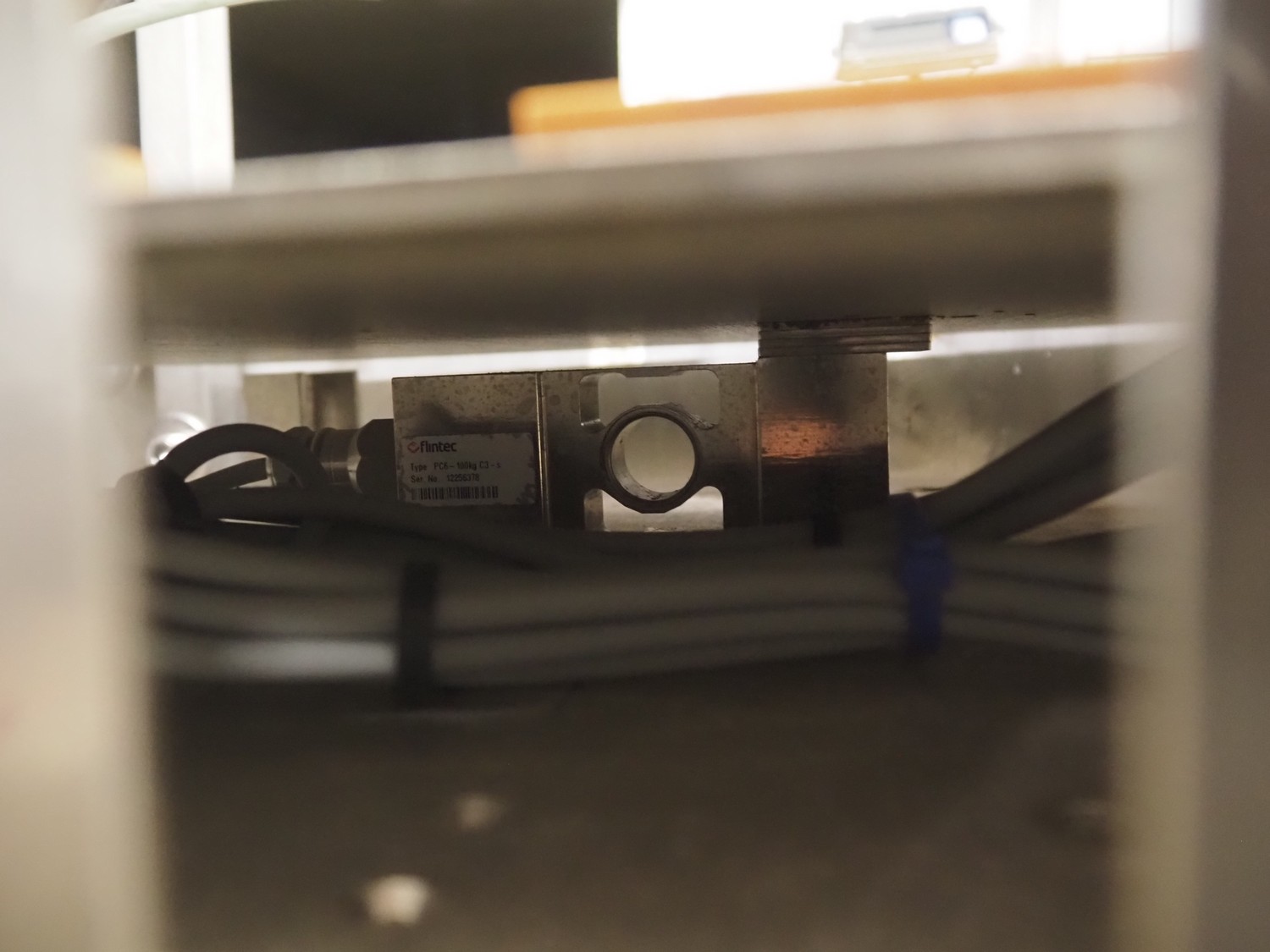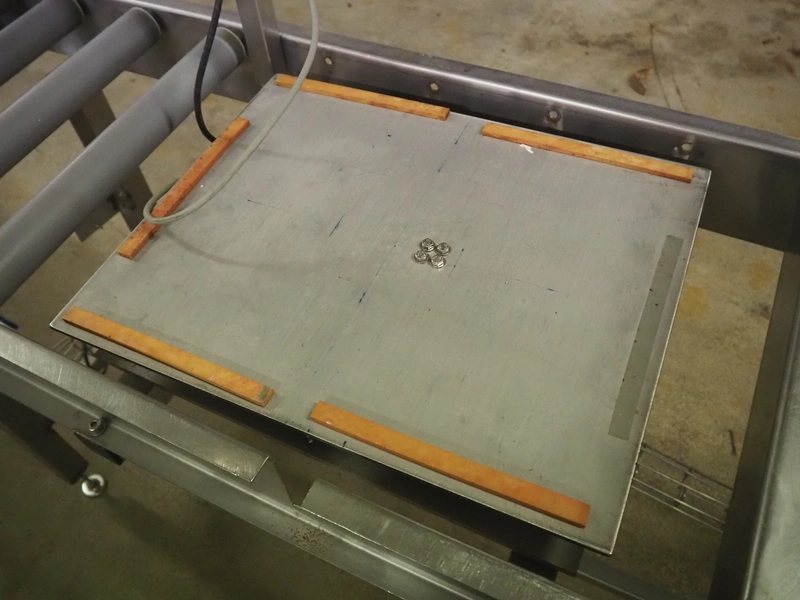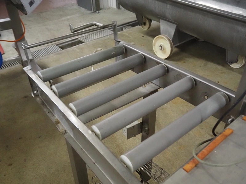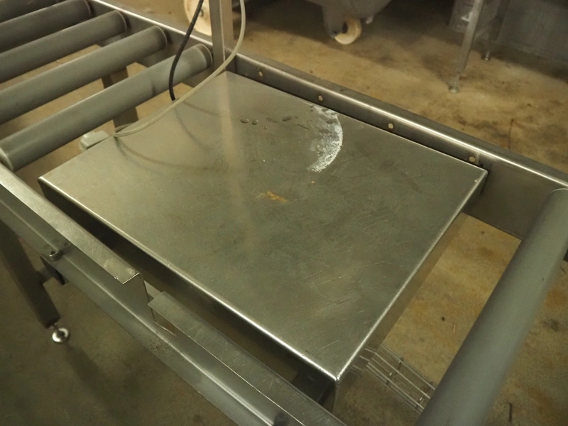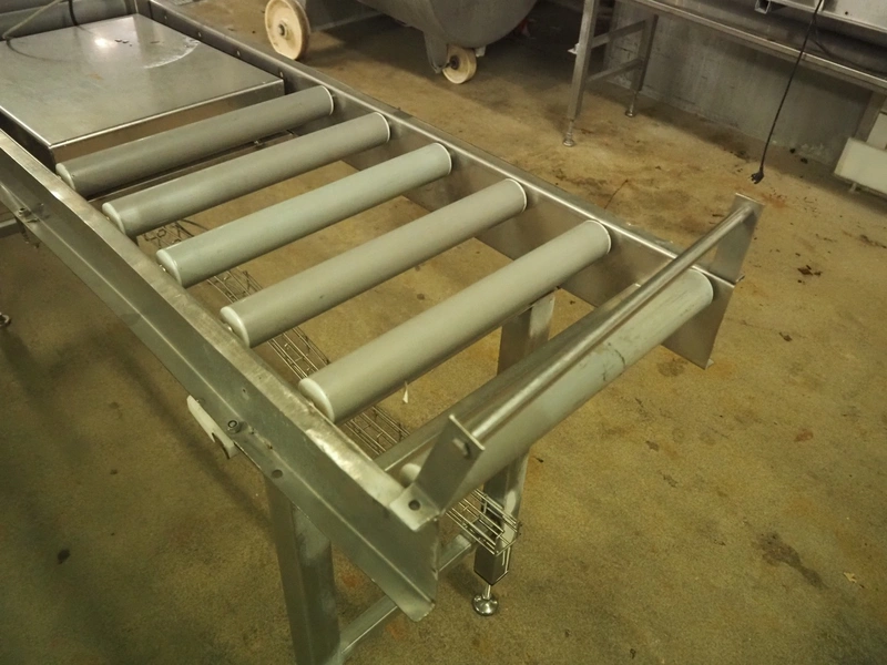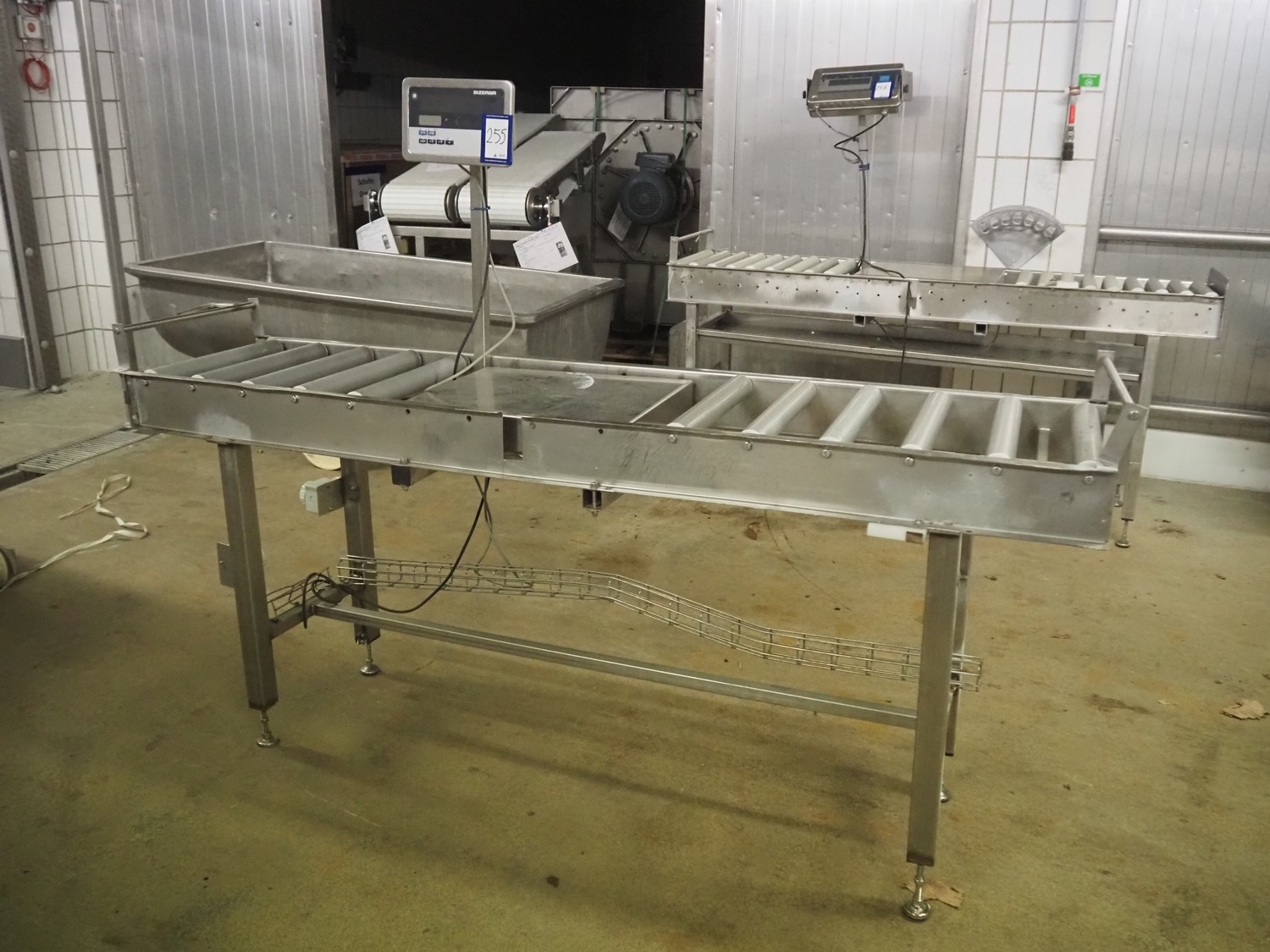 Bizerba weighing scale with indicator and roller conveyor, serial number: 10835757, scale dimensions: 500 mm x 400 mm, roller width: 430 mm, total dimensions: 2150 mm x 500 mm x 1540 mm.