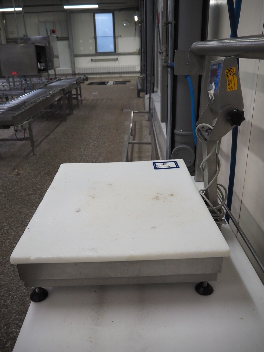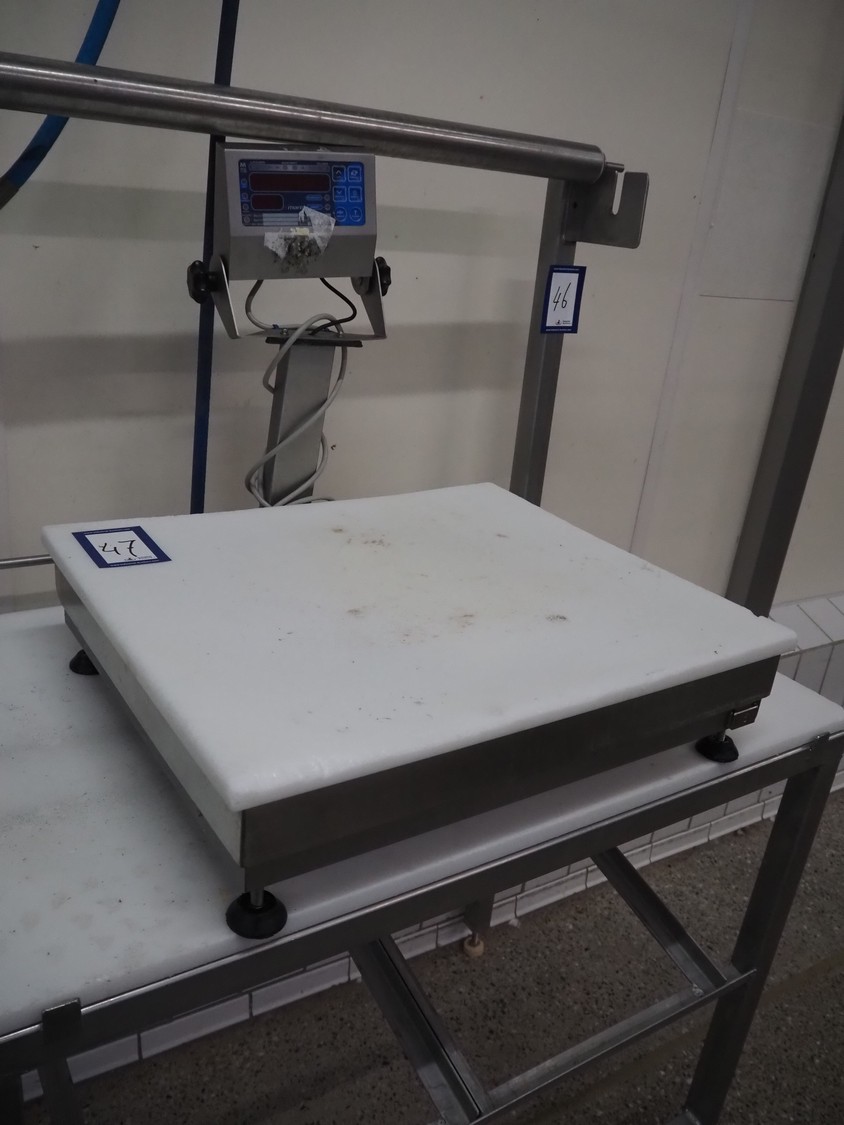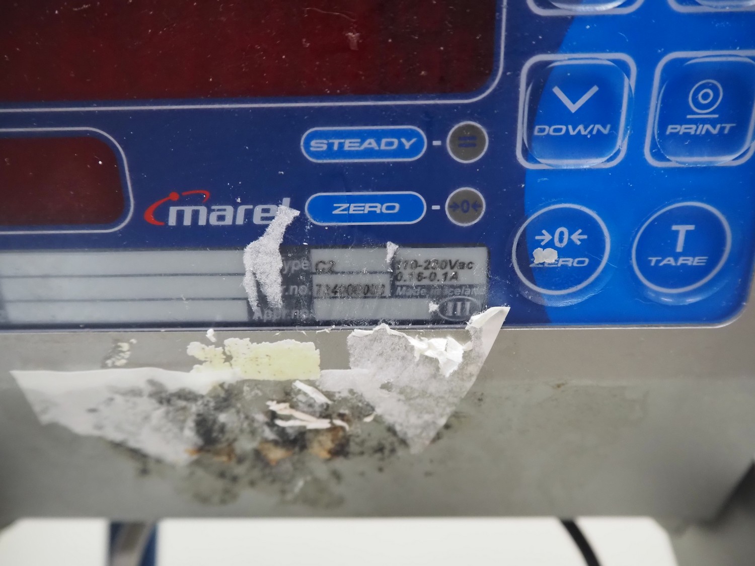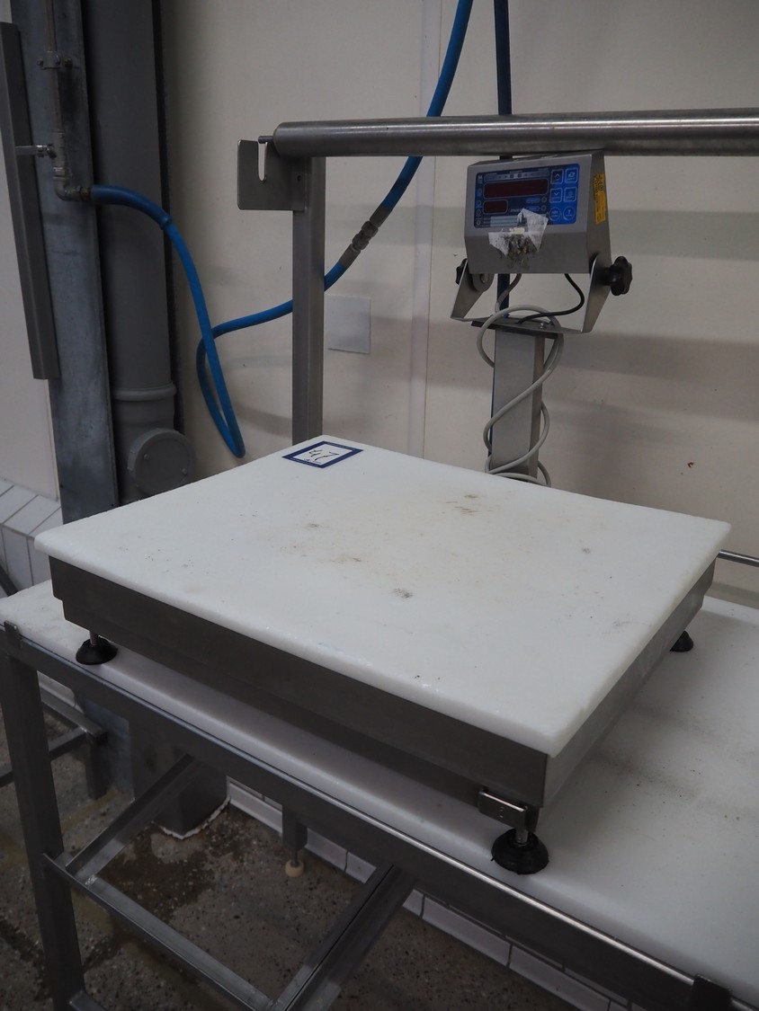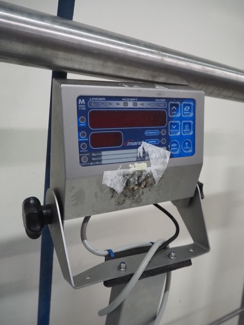Marel weighing scale, type: C2, serial number: 724000008, 110-230 V, 0.16-0.1 A, dimensions: 620 mm x 520 mm x 580 mm.