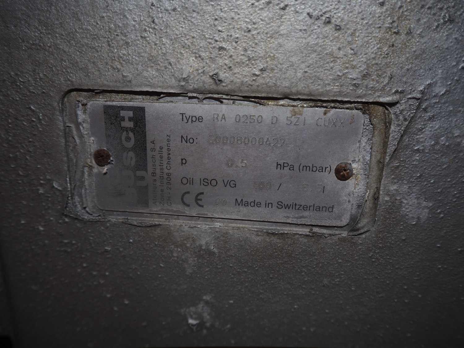 Busch vacuum pump, type: RA 0250 D 5ZI CUXX, number: C0006000427, dimensions: 1000 mm x 550 mm x 430 mm.