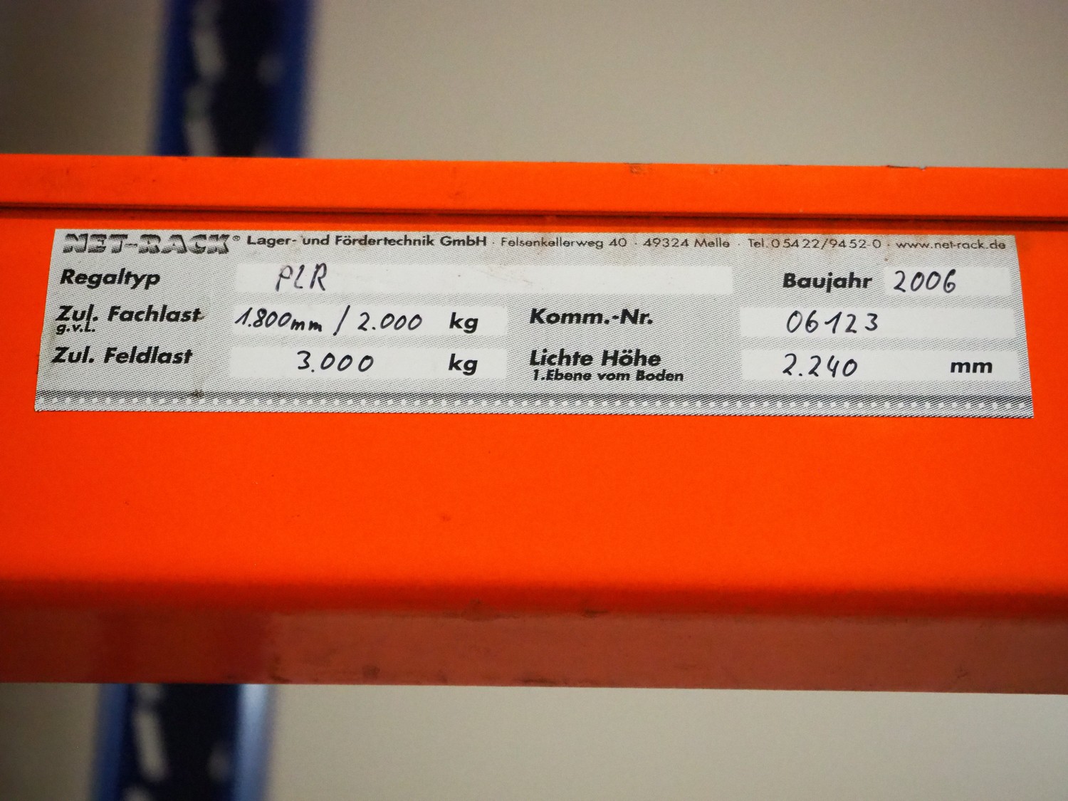Net-Rack steel pallet rack, type: PLR, year of construction: 2006, consisting of: 2 uprights, dimensions: (2x) 1100 mm x 100 mm x 3400 mm, 2 beams, length: 1800 mm.