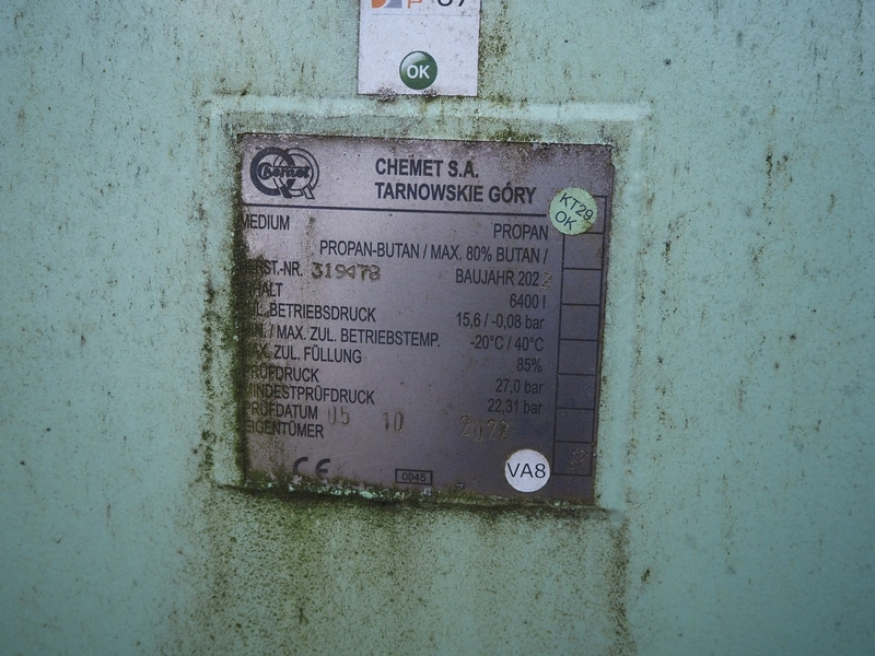 Chemet S.A. steel propan/butan tank, year of construction: 2022, volume: 6400 liter, 15.6/-0.08 bar, -20/40°C, dimensions: 1300 mm x 5500 mm x 1600 mm.