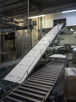 Elevating belt, s/s frame, plastic belt with dividers, belt width: 570 mm, divider height: 100 mm, distance between dividers: 820 m…€ 750,000 bids20/05/2026 14:40