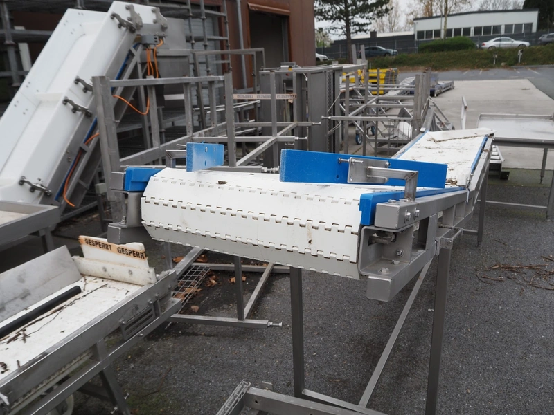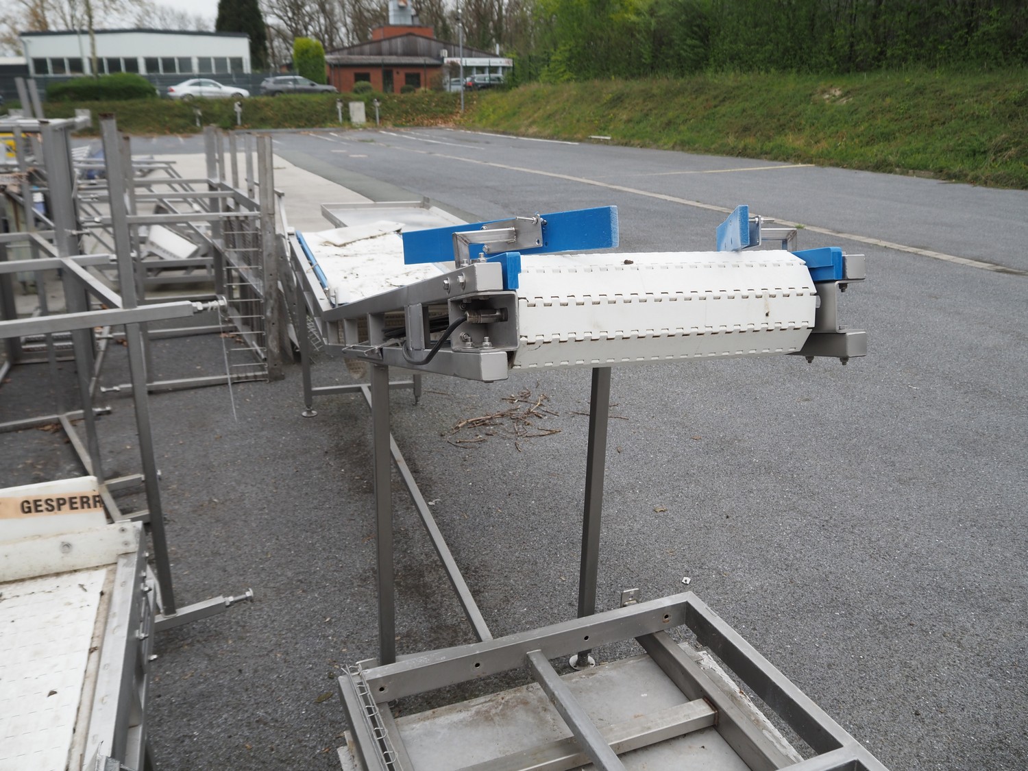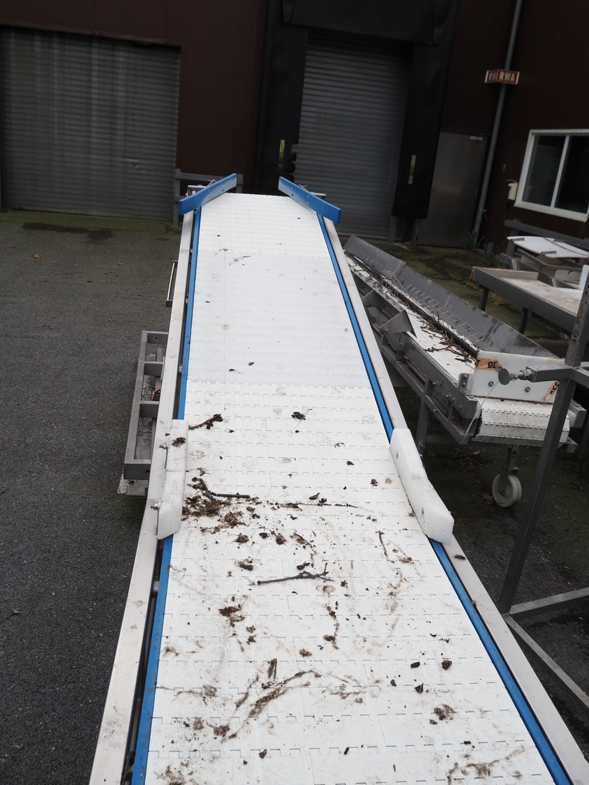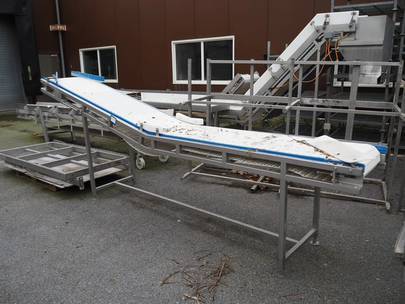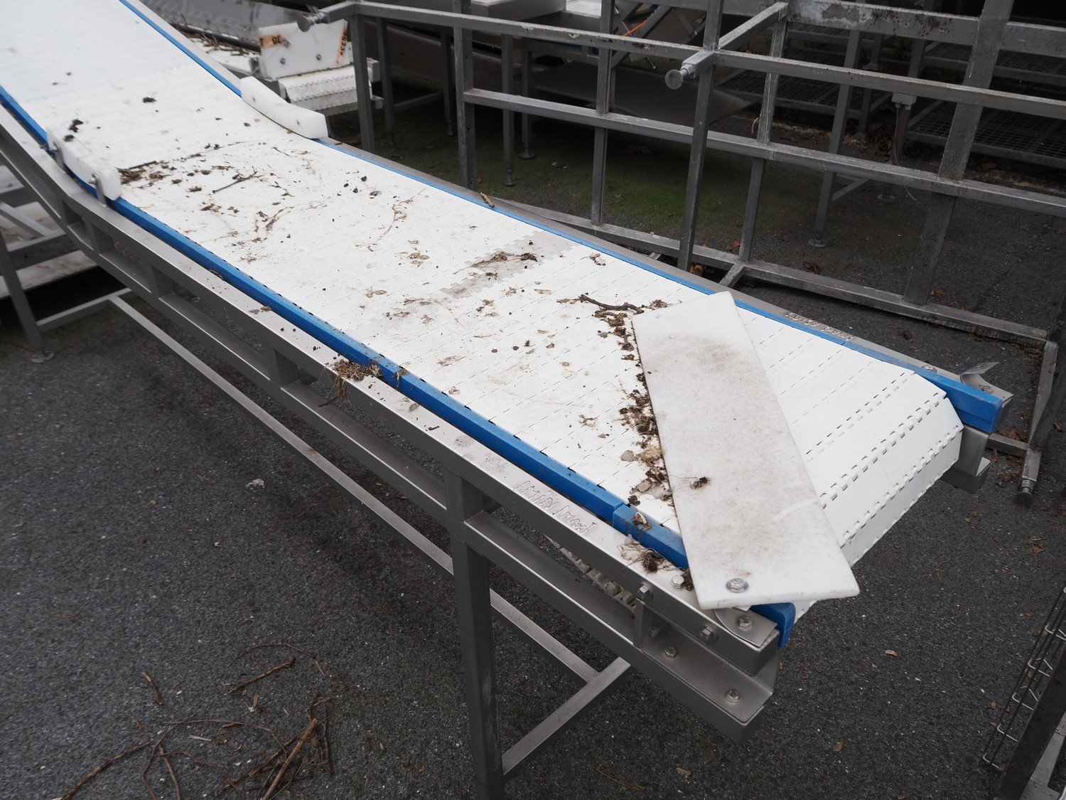 Elevating belt, s/s frame, plastic belt, belt width: 500 mm, elevating height: 1400 mm, total dimensions: 3800 mm x 660 mm x 1500 mm.