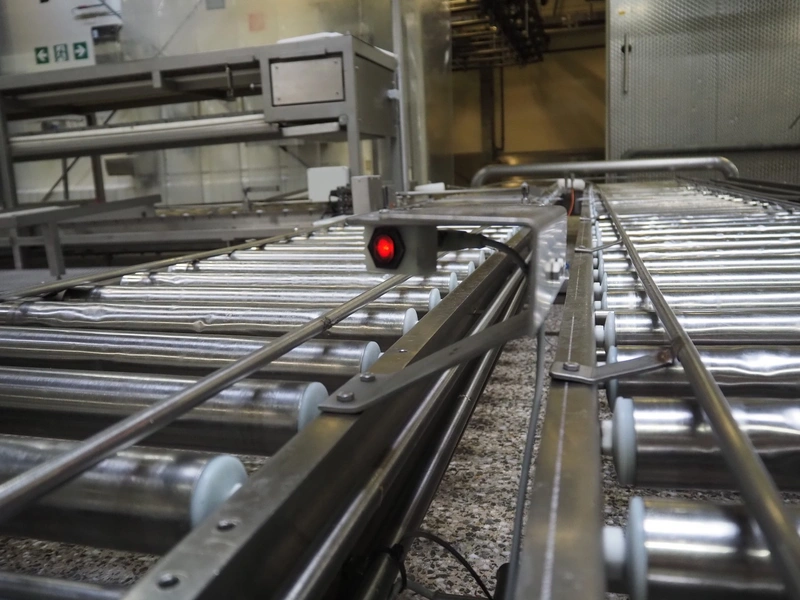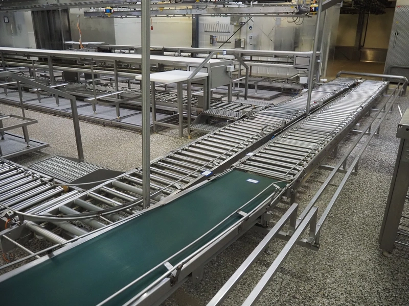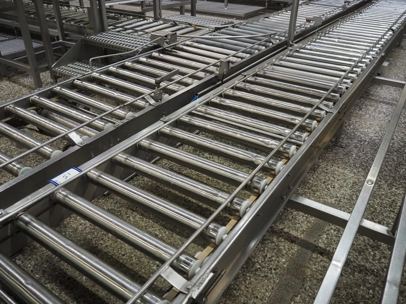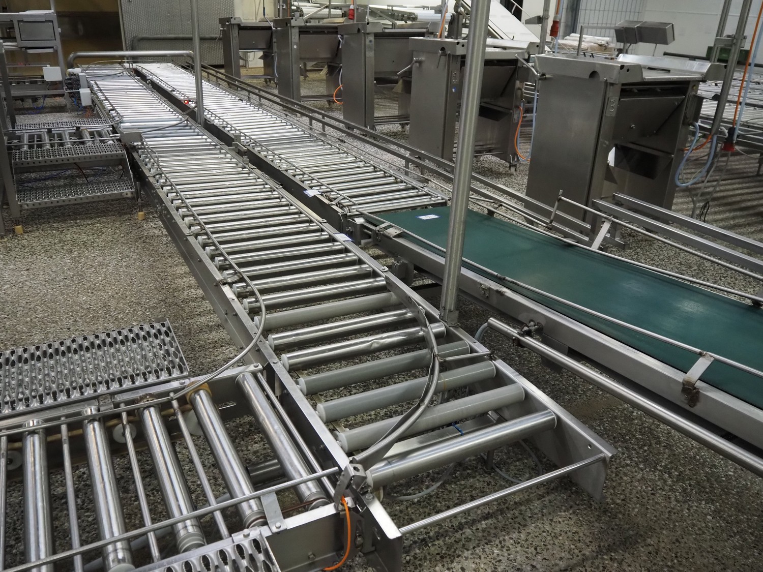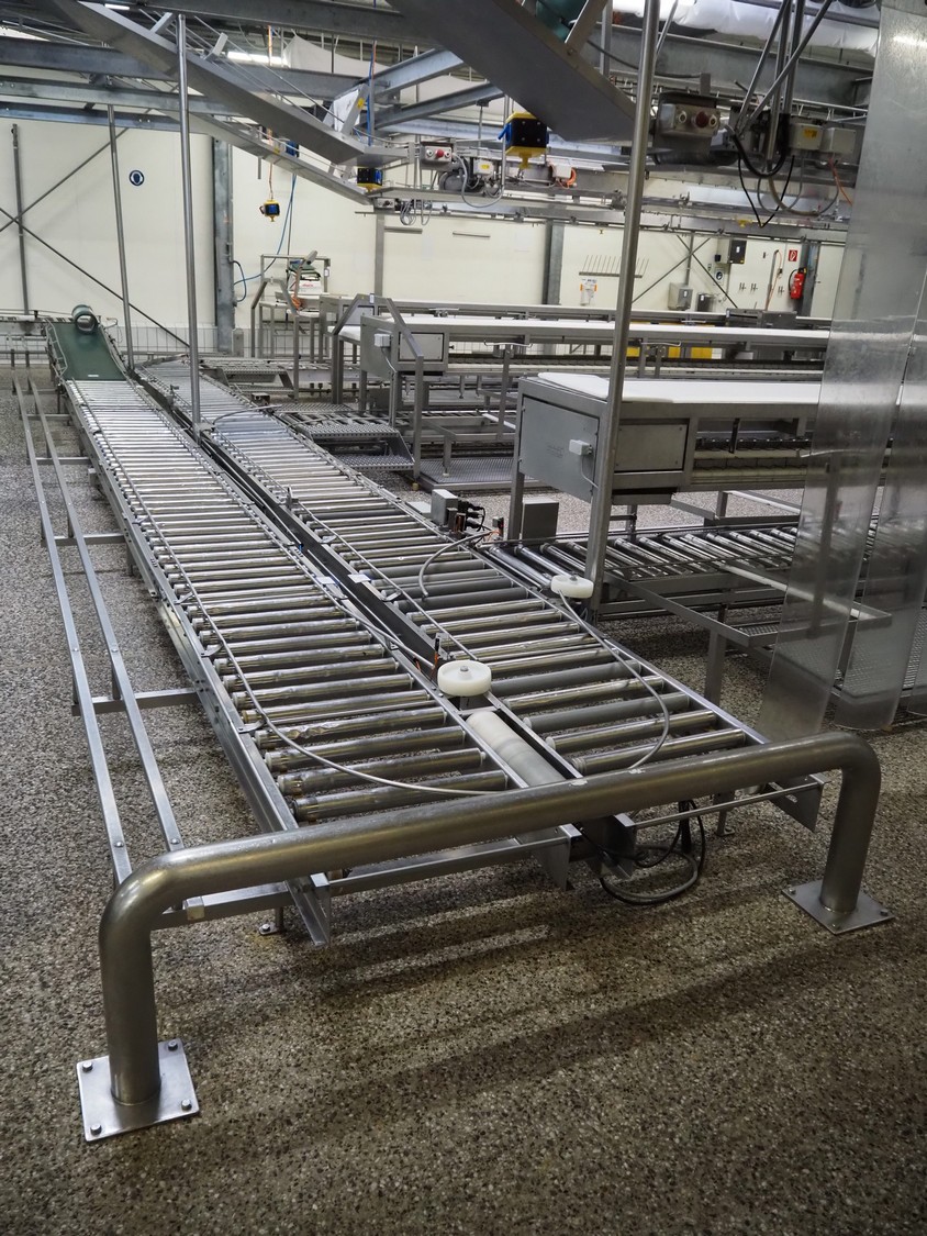 Itec / Attec two-lane roller conveyor, s/s rollers, rollers width: (2x) 500 mm, total dimensions: 17000 mm x 1700 mm x 400 mm.