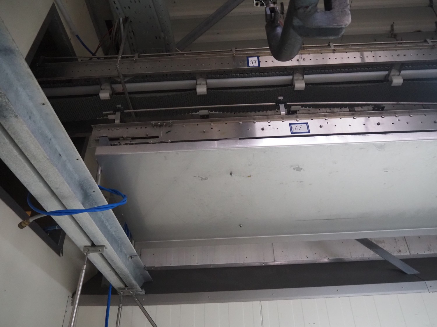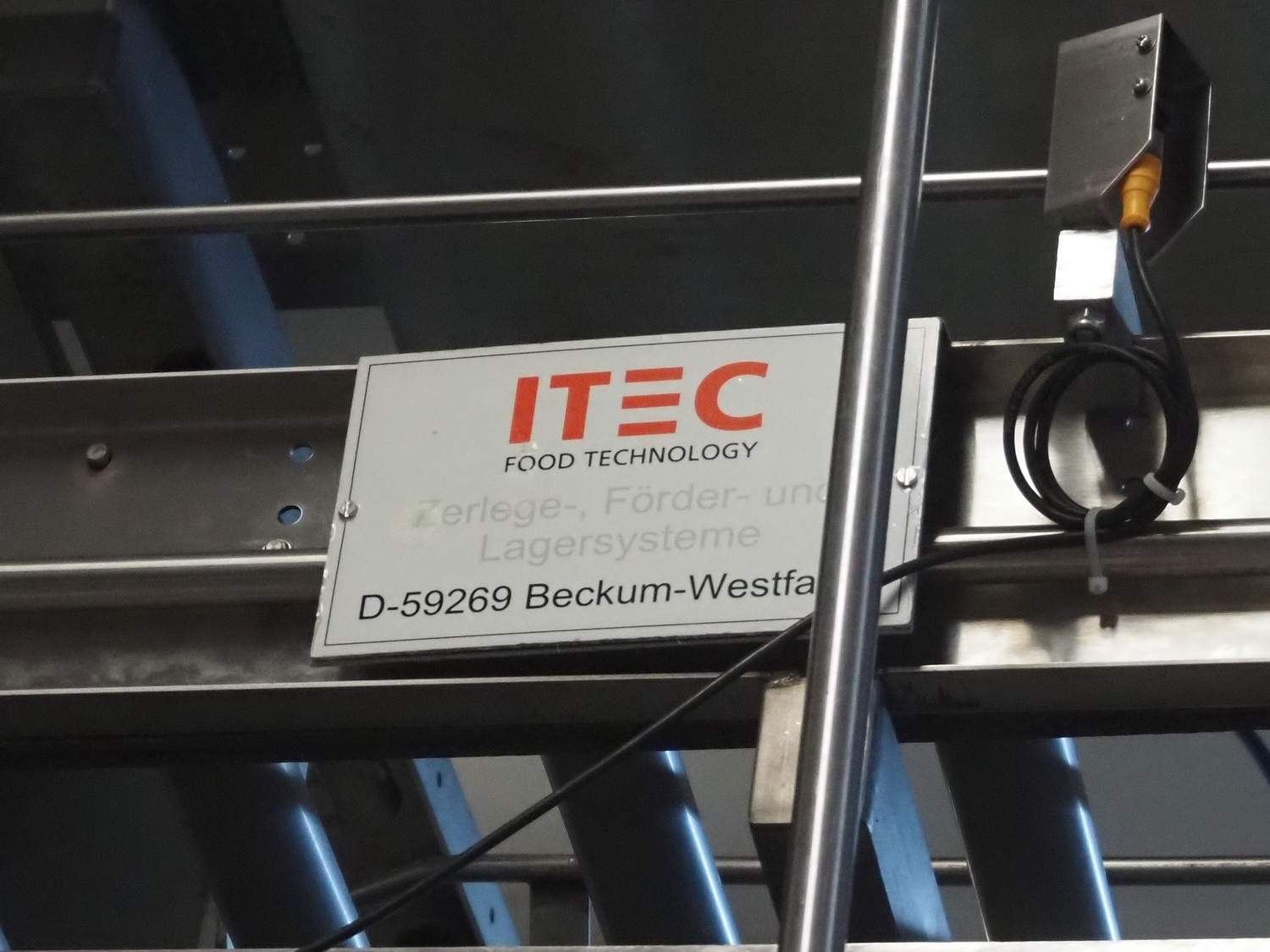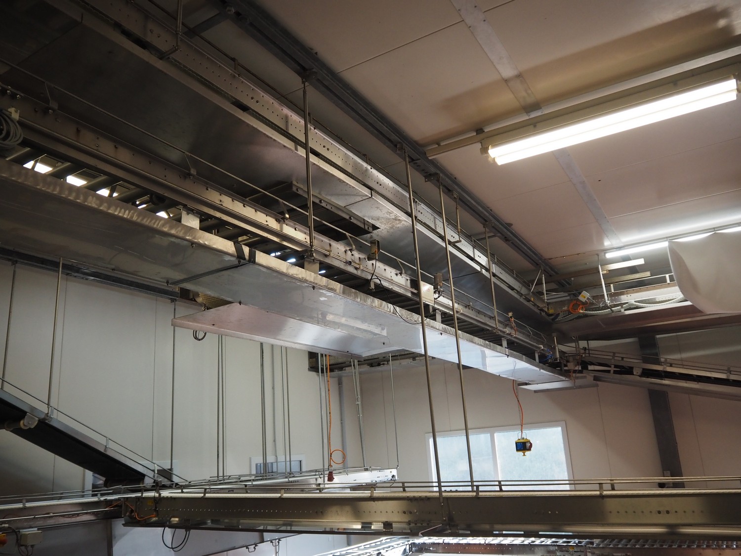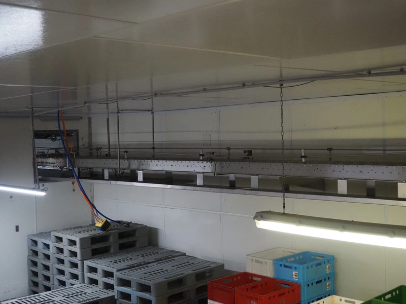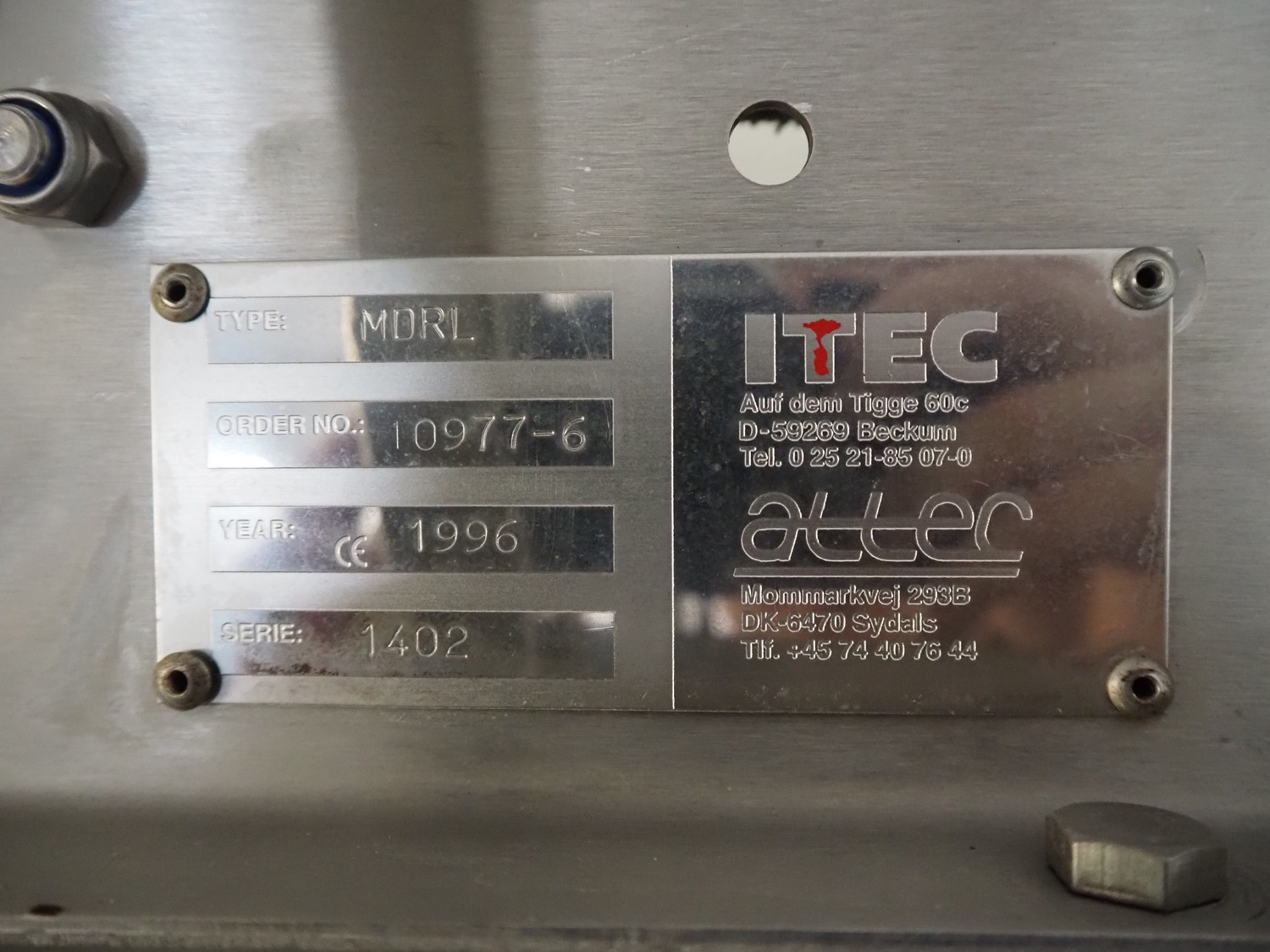 Itec / Attec roller conveyor, type: MDRI, serial number: 1402, year of construction: 1996, plastic rollers, roller width: 420 mm, total length: approximately 45 meters.