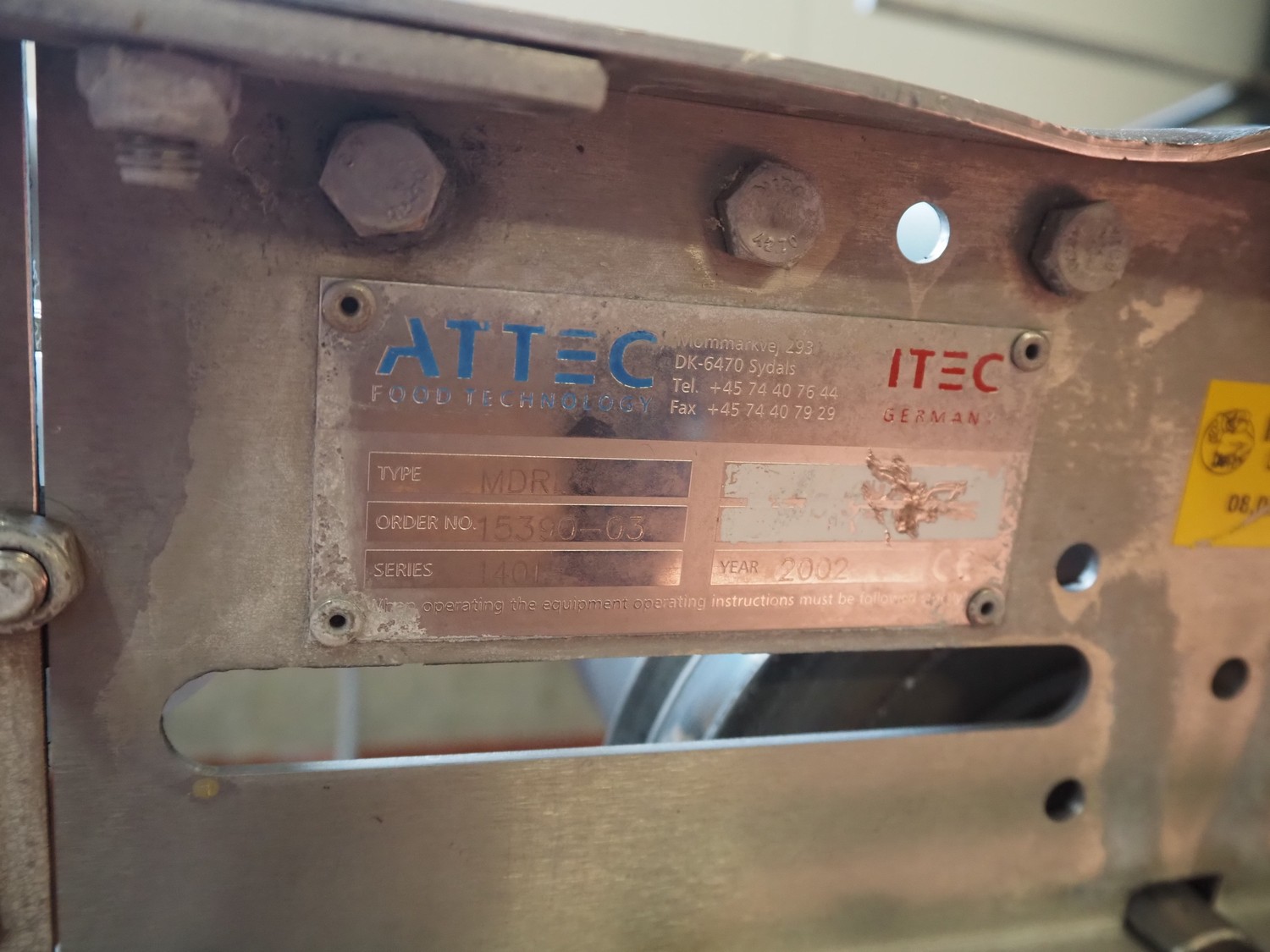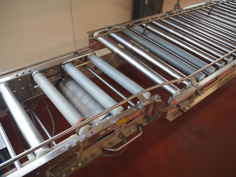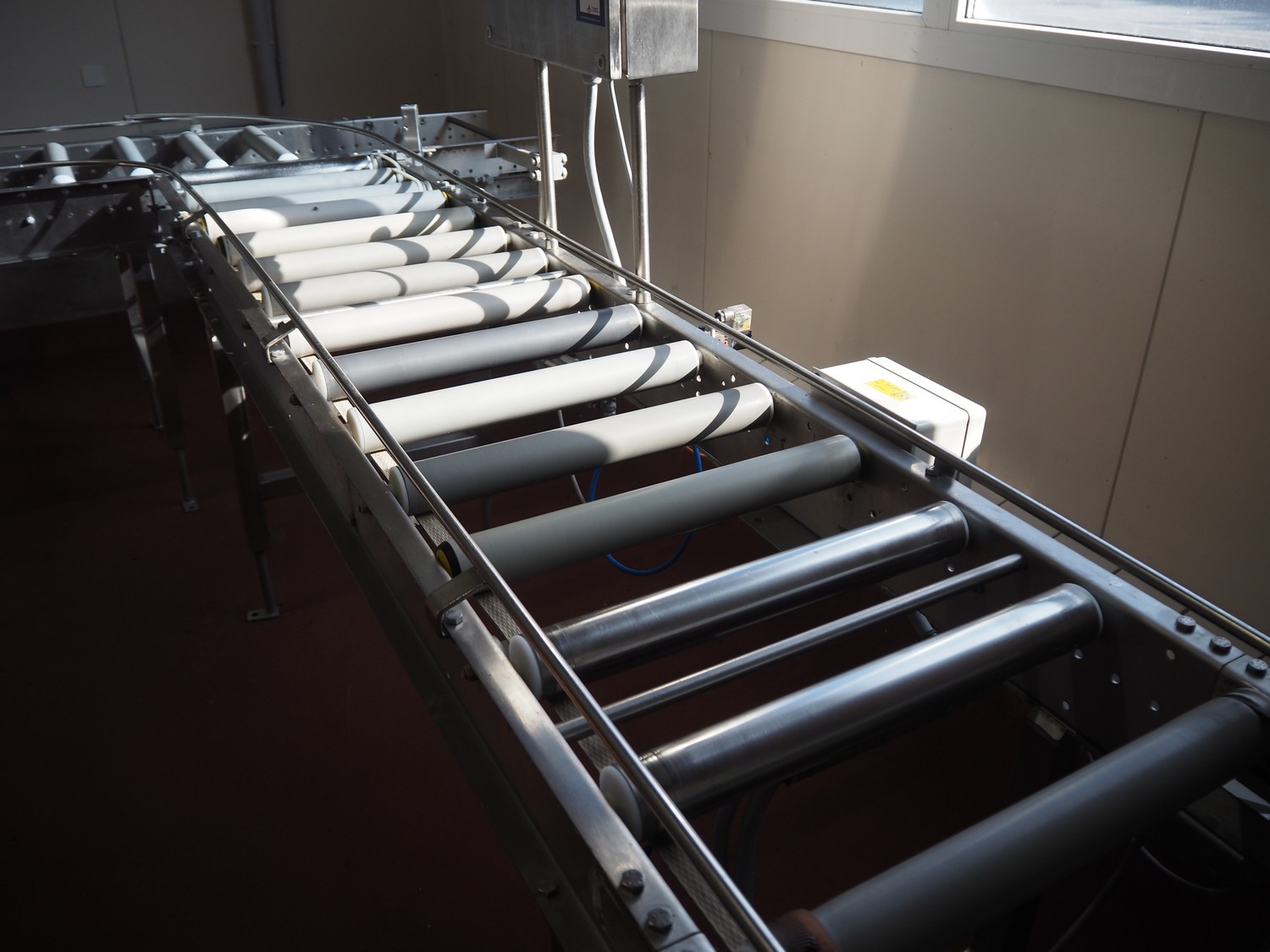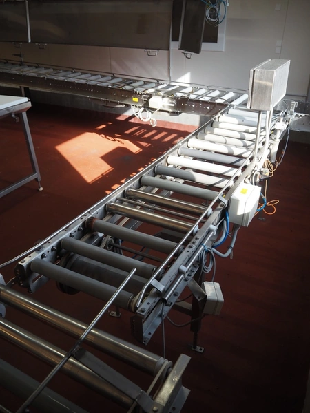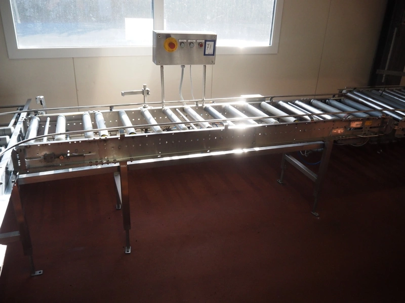 Itec / Attec roller conveyor, type: MDRL, serial number: 1401, year of construction: 2002, s/s and plastic rollers, roller width: 430 mm, total dimensions: 2500 mm x 600 mm x 1270 mm.