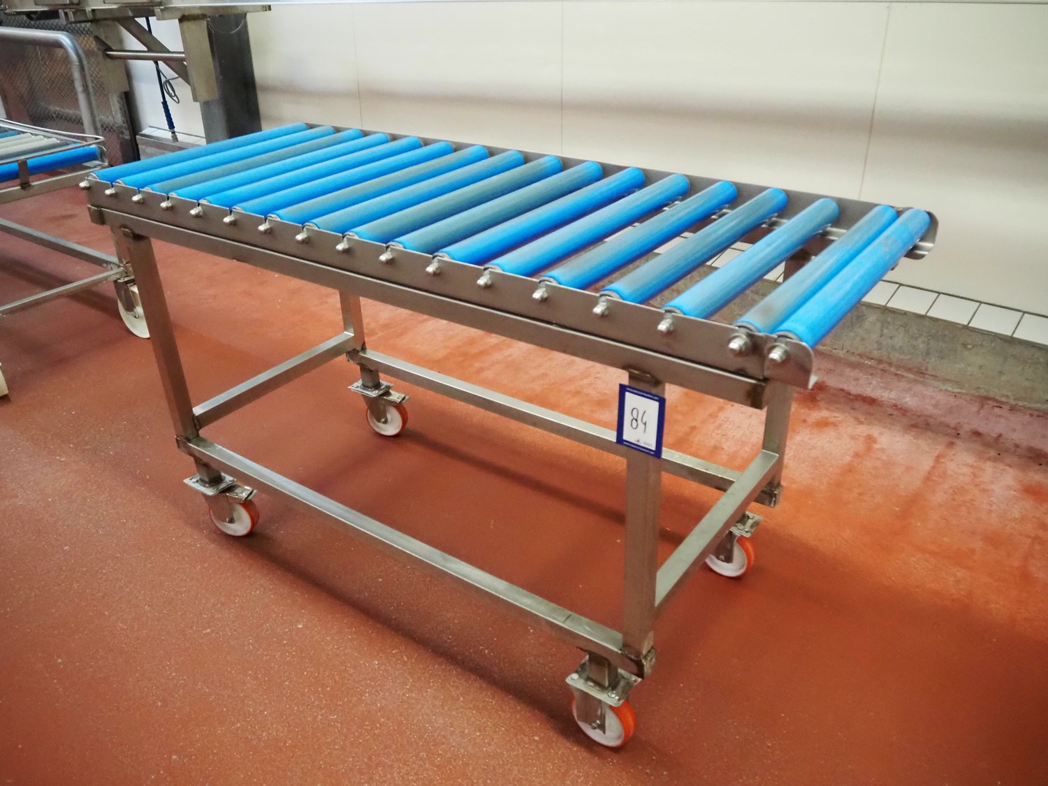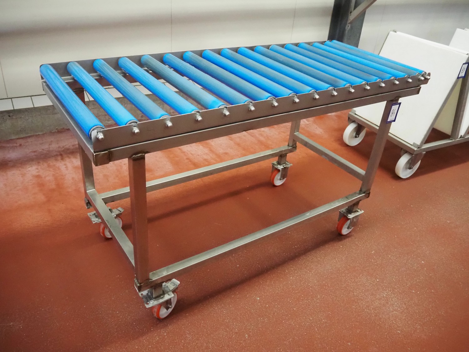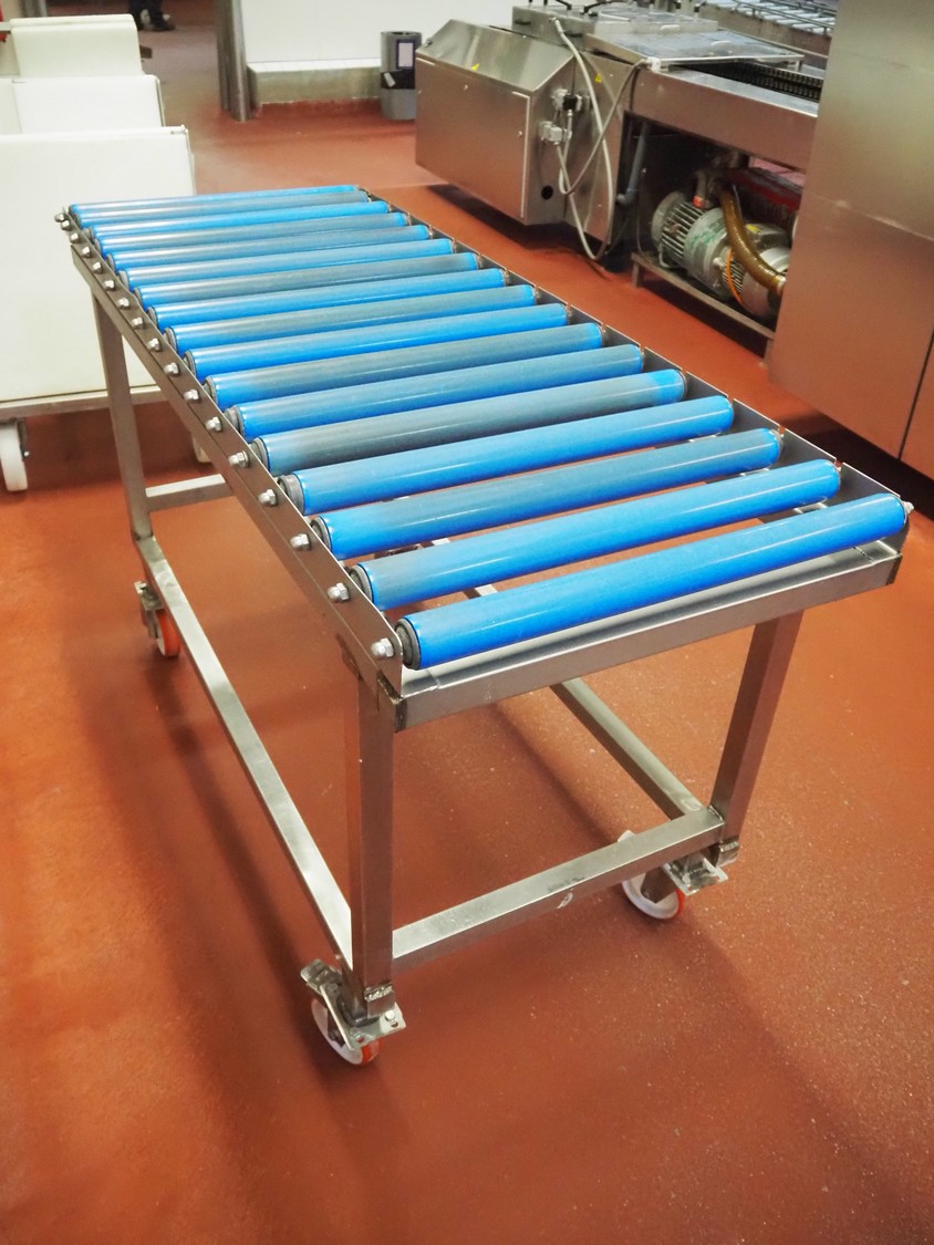Itec / Attec mobile roller conveyor, plastic rollers, roller width: 600 mm, total dimensions: 1600 mm x 650 mm x 900 mm.