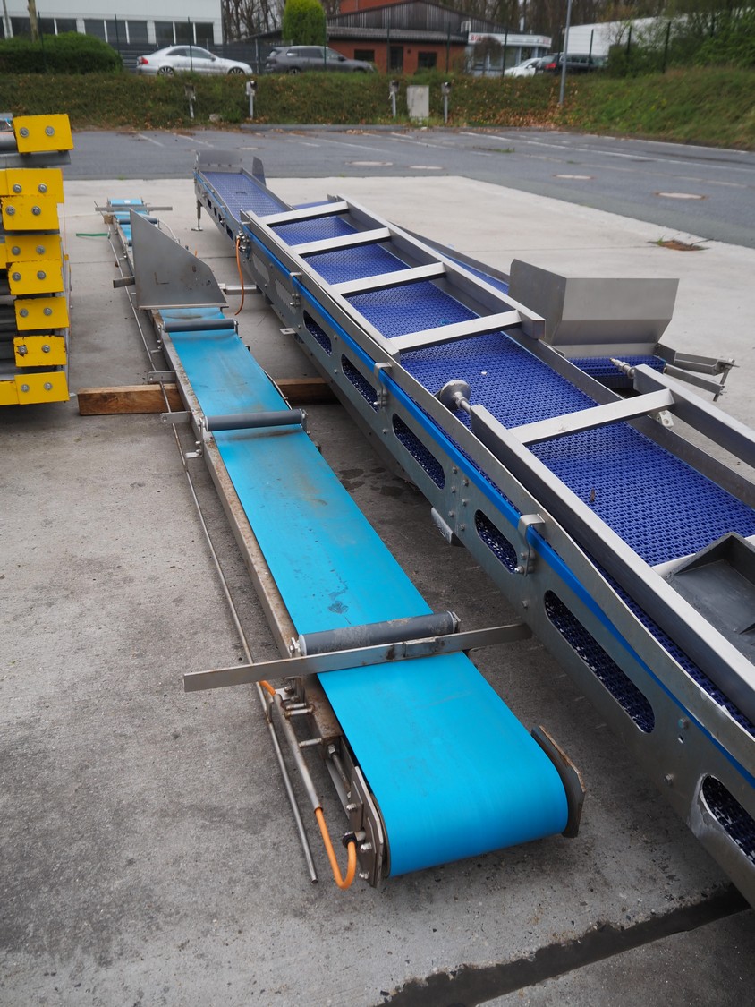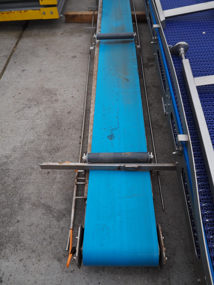 Transport belt, plastic belt, belt width: 300 mm, total dimensions: 7000 mm x 700 mm x 800 mm.